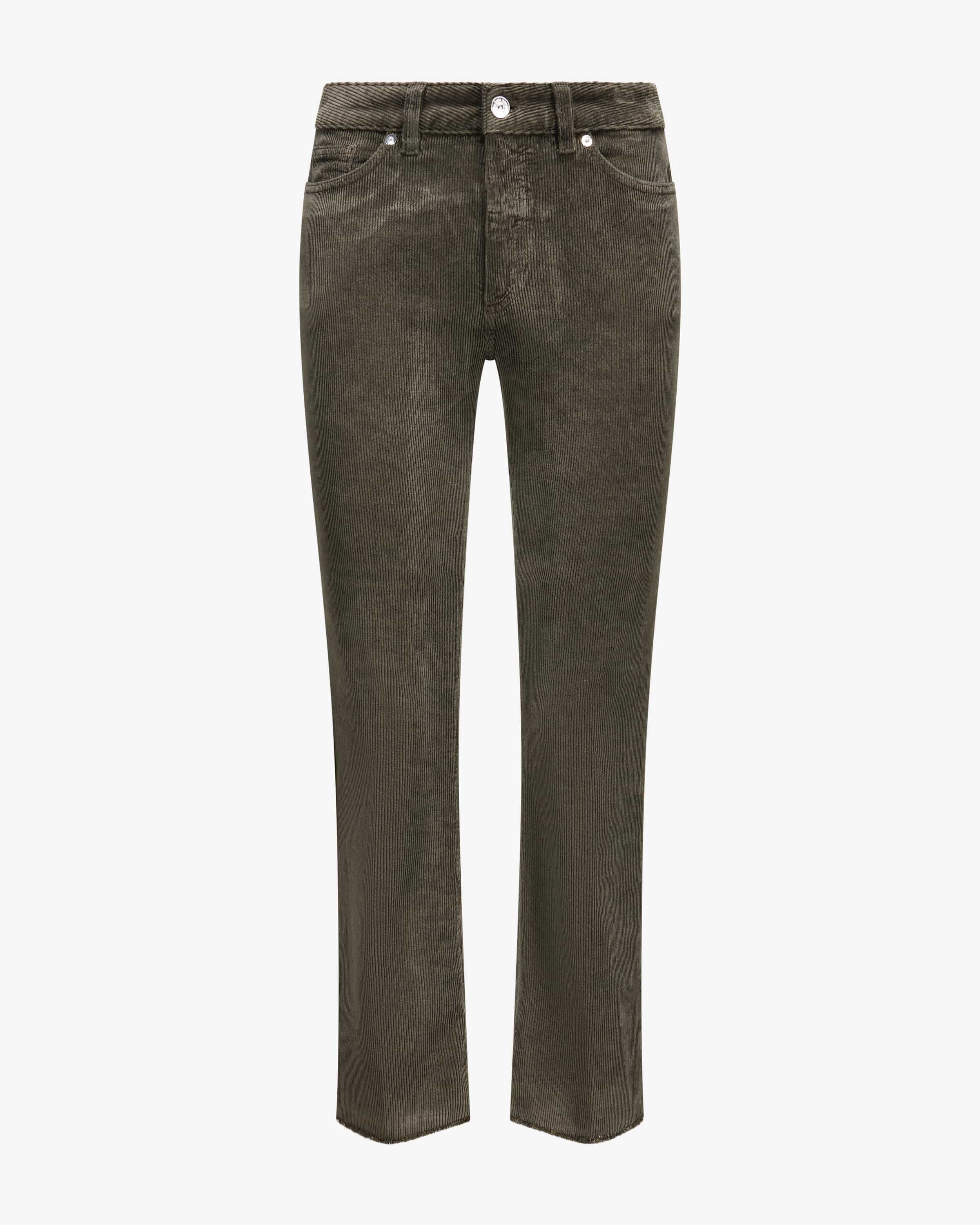 7/8-Cordhose für Damen von nine:inthe:morning in Oliv. Das Modell in feiner Cord-Aufmachung überzeugt mit angenehmen Material-Mix, während das cleane Dessin und klassischen Details einen zeitlosen Begleiter für vielseitige Styles kreieren.