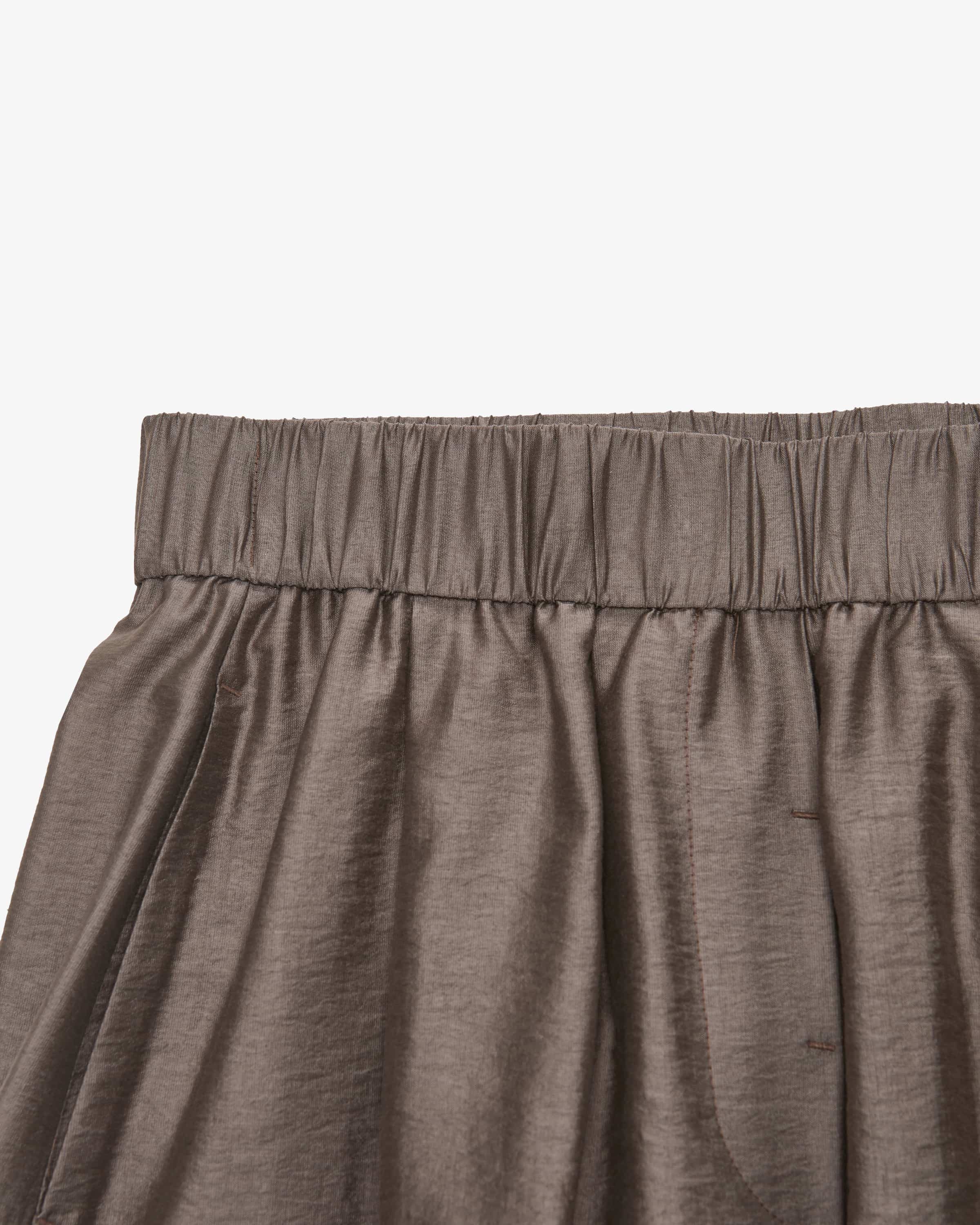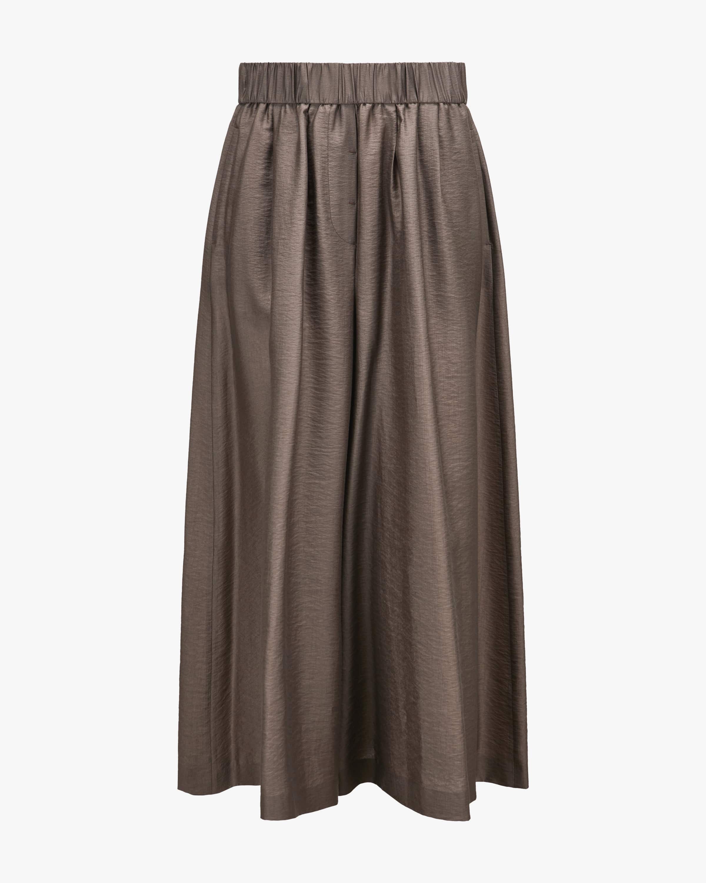 7/8-Hose für Damen von Peserico in Braun. Die italienische Marke steht für feine Damenmode mit Fokus auf Materialien, Passform und Handwerkskunst. Auch dieses weite Modell präsentiert sich mit leichtem Material-Mix und elastischem Bund, der angenehmen Tragekomfort garantiert – Ein femininer Look in modischer Culotte-Optik.