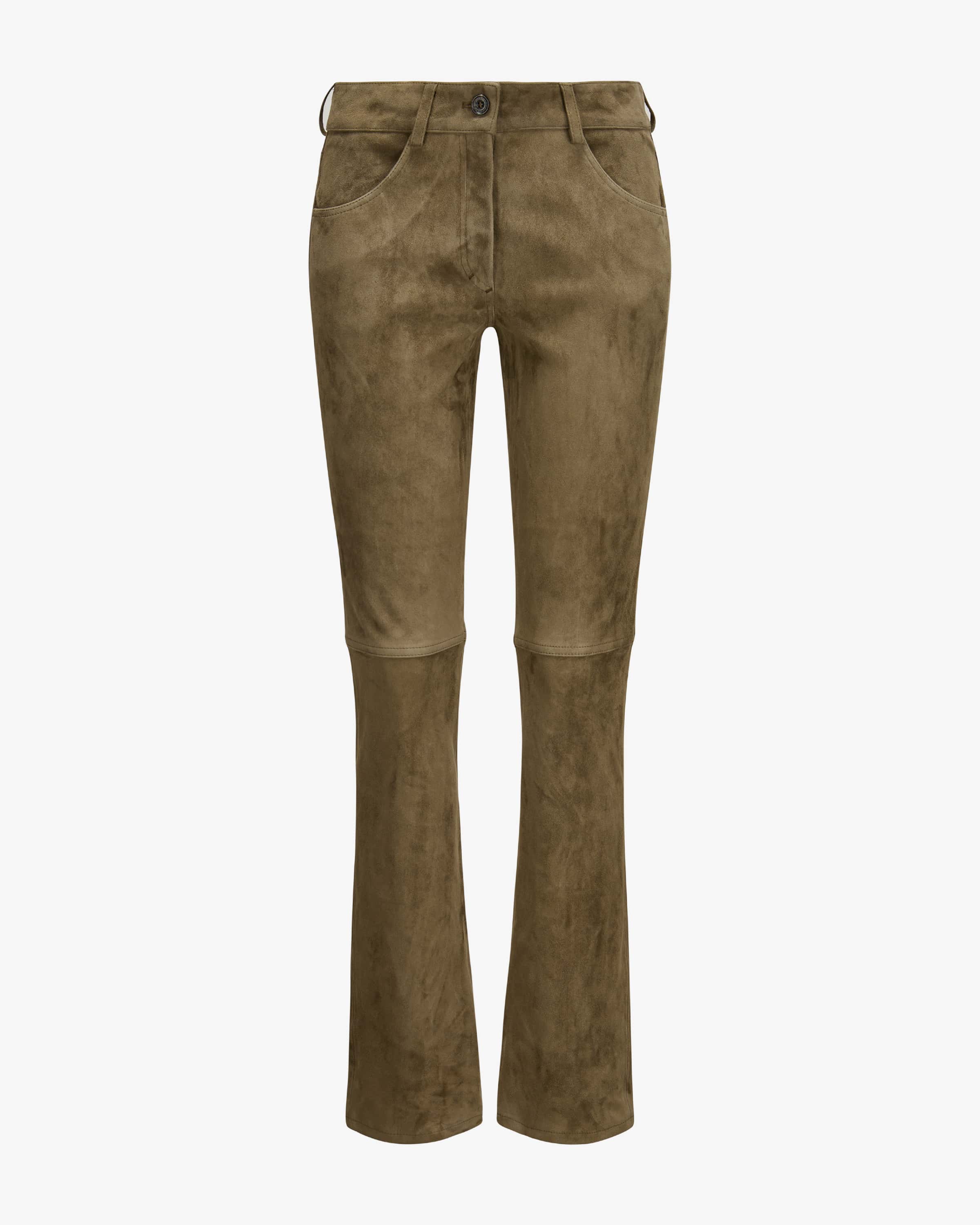 Antau Trachten-Lederhose für Damen von Habsburg in Hellbraun. Das Modell punktet mit hochwertigem Lammleder in weicher Velours-Verarbeitung. Die schmale Passform mit dezenten Teilungsnähten kreiert einen femininen und kombistarken Trachten- Look.