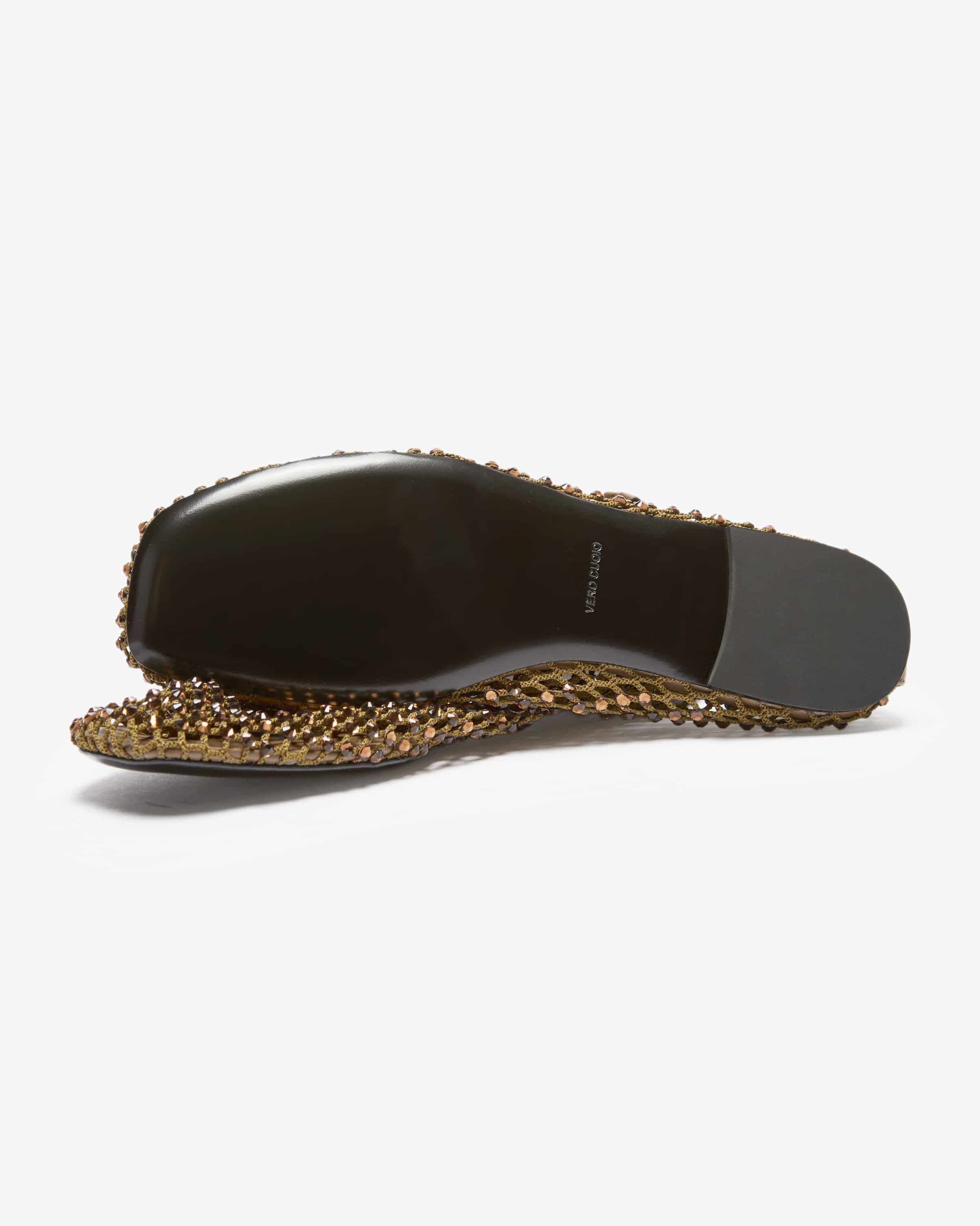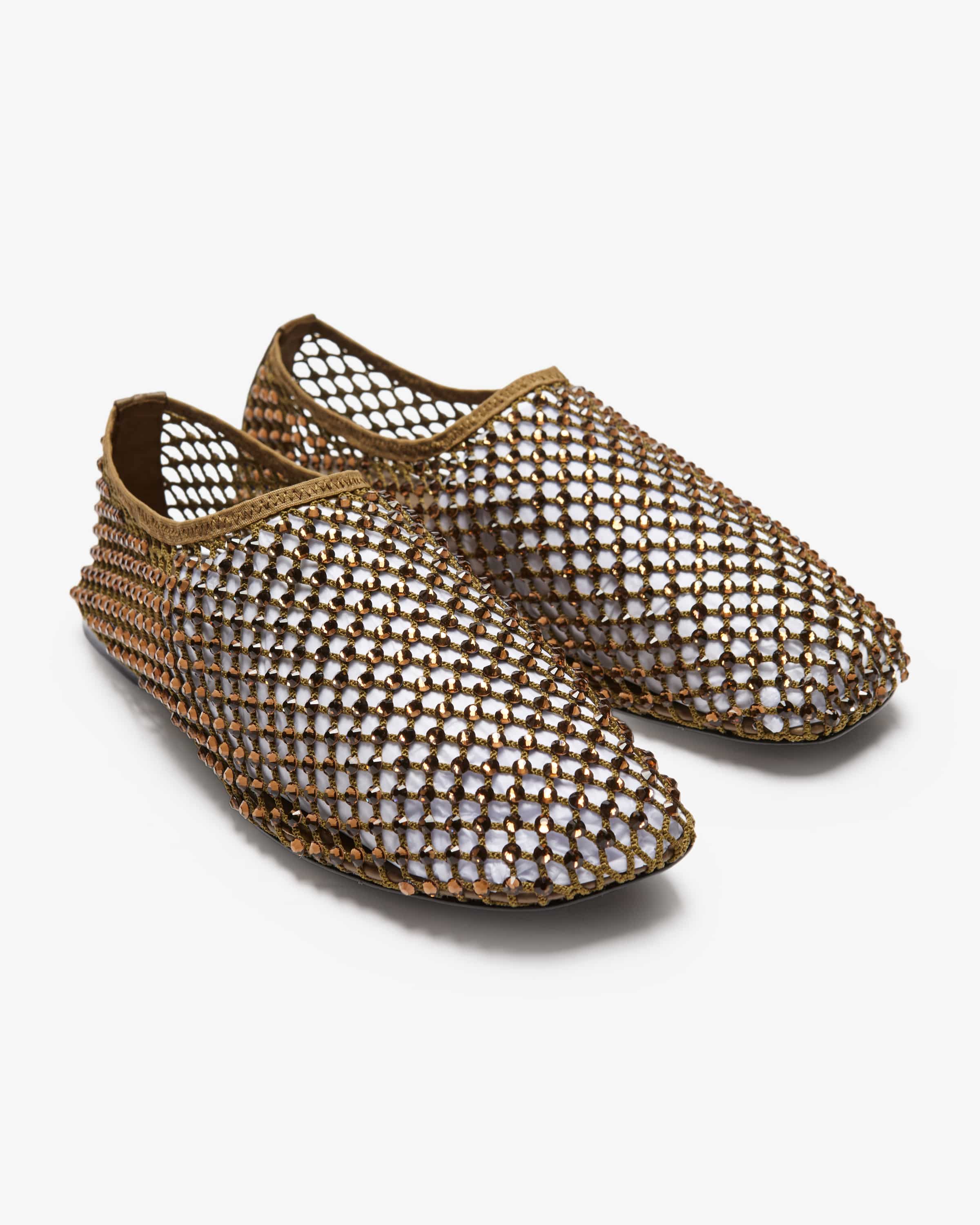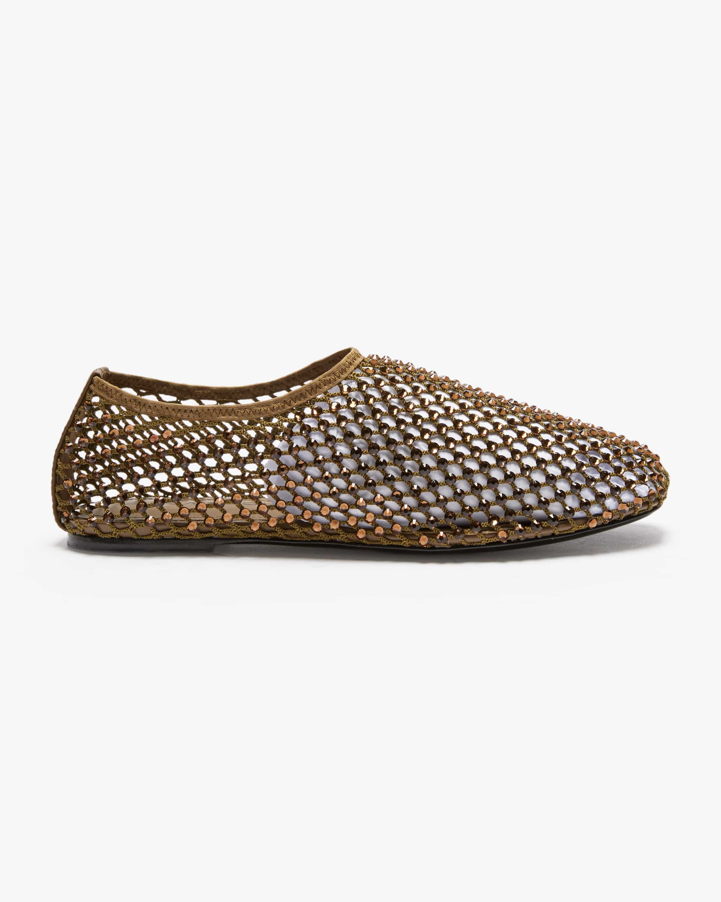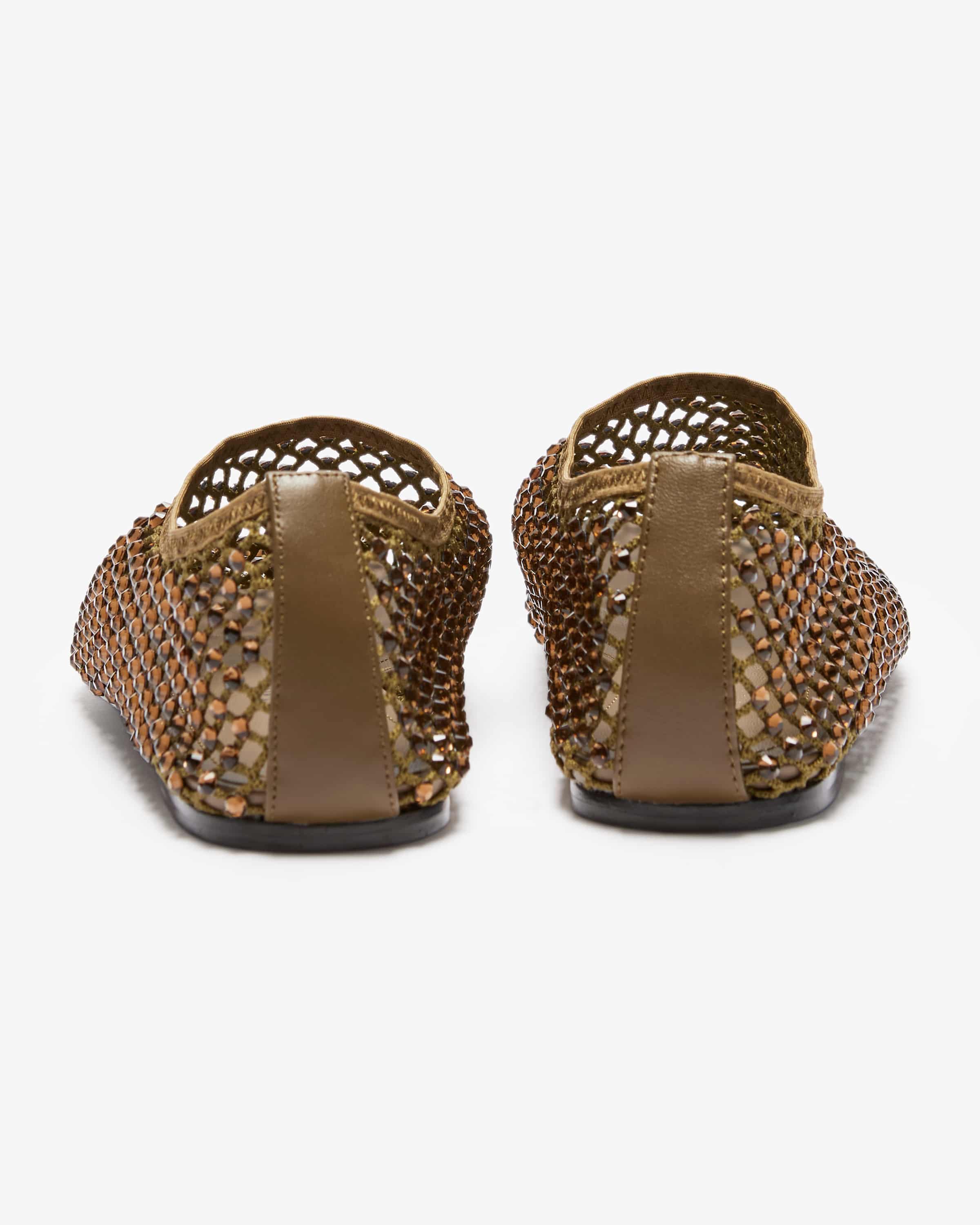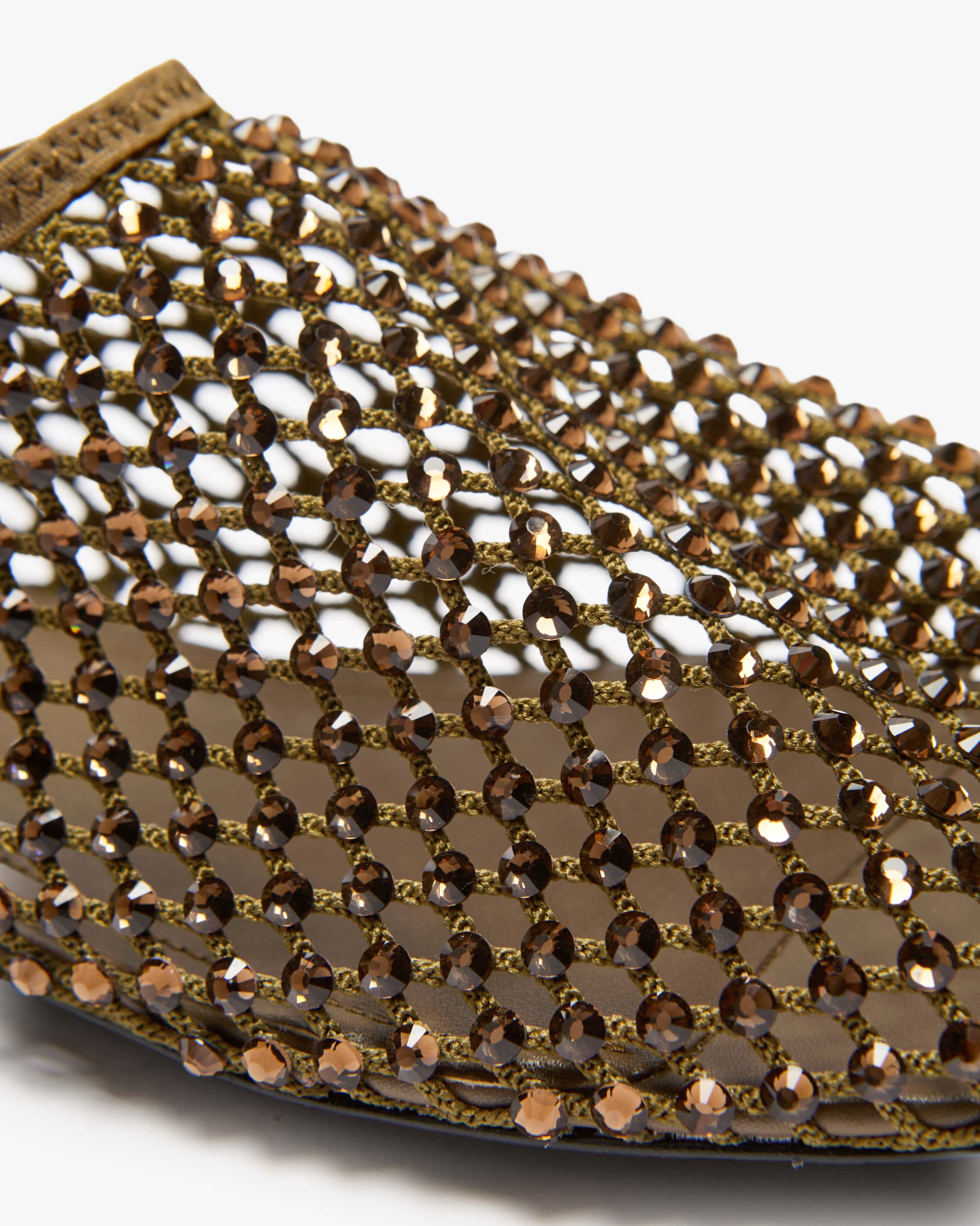 Ballerinas für Damen von Strategia in Oliv. Das Modell avanciert dank der Schmuckstein-Applikationen gepaart mit der Netz-Aufmachung zum modischen Blickfang, während der elastische Bund einen perfekten Sitz garantiert.