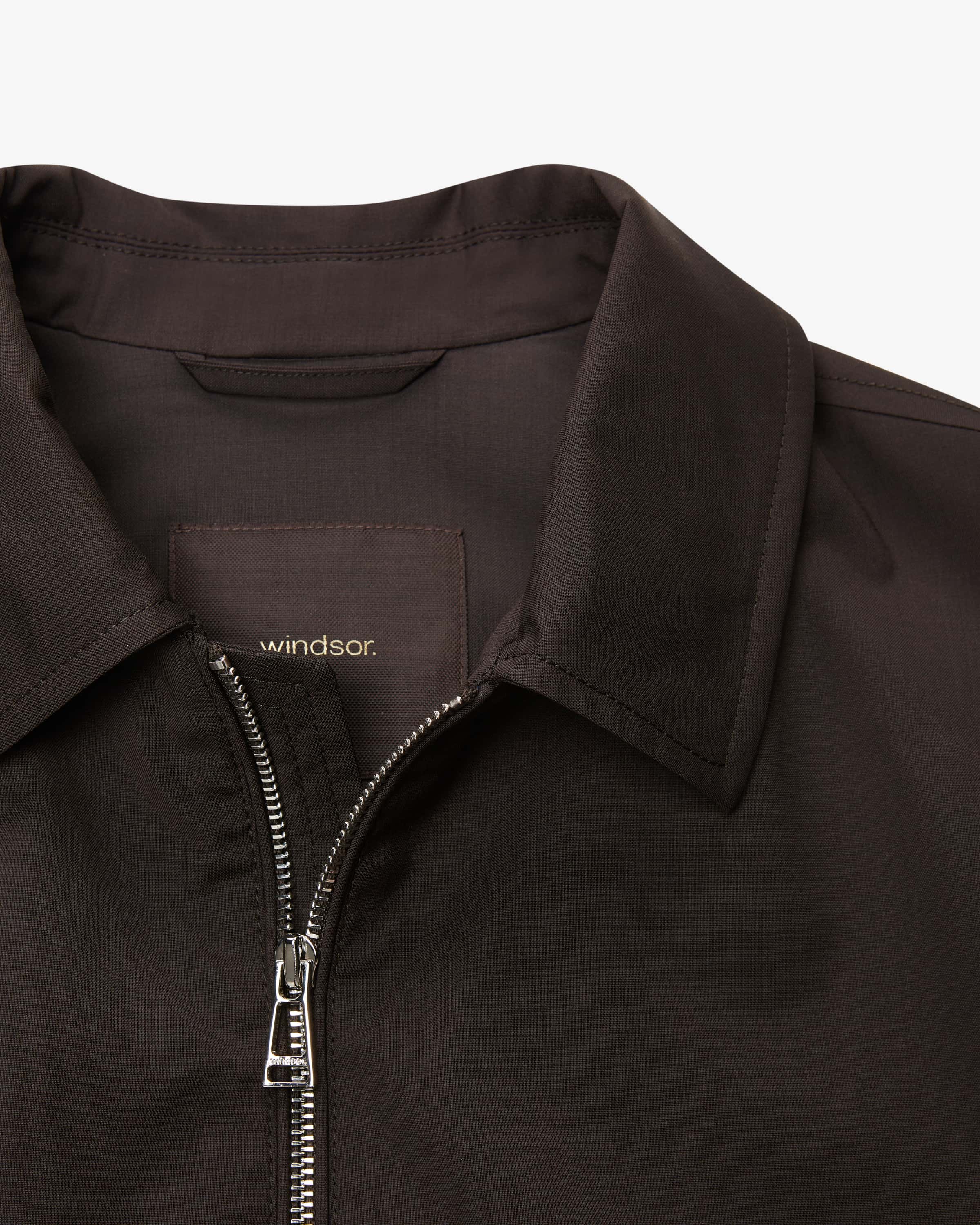 Blouson für Herren von Windsor in Dunkelbraun. Das Schweizer Label steht für elegante Businessmode und urbane Klassiker mit dezentem Luxusanspruch. Dieses leichte Modell in schlichtem Design überzeugt dank hochwertiger Schurwoll- Qualität sowohl haptisch als auch optisch, während die Leder-Details stilvolle Akzente setzen.
