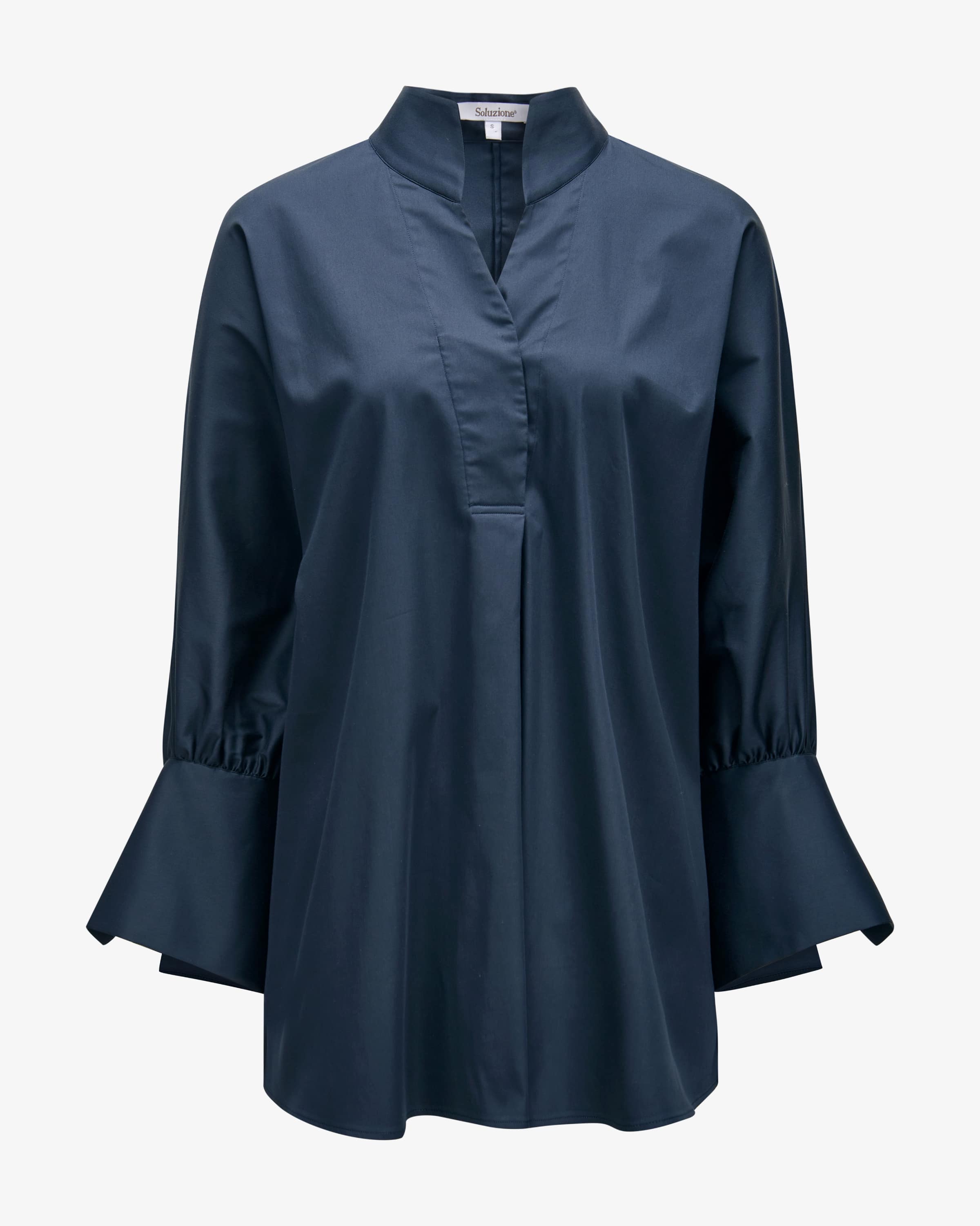 Bluse für Damen von Soluzione in Navy. Dank klassischer Details präsentiert sich das Modell in eleganter Aufmachung, während die Oversize-Passform sowie stilvolle Ballon-Ärmel das Gesamtbild modern akzentuieren.