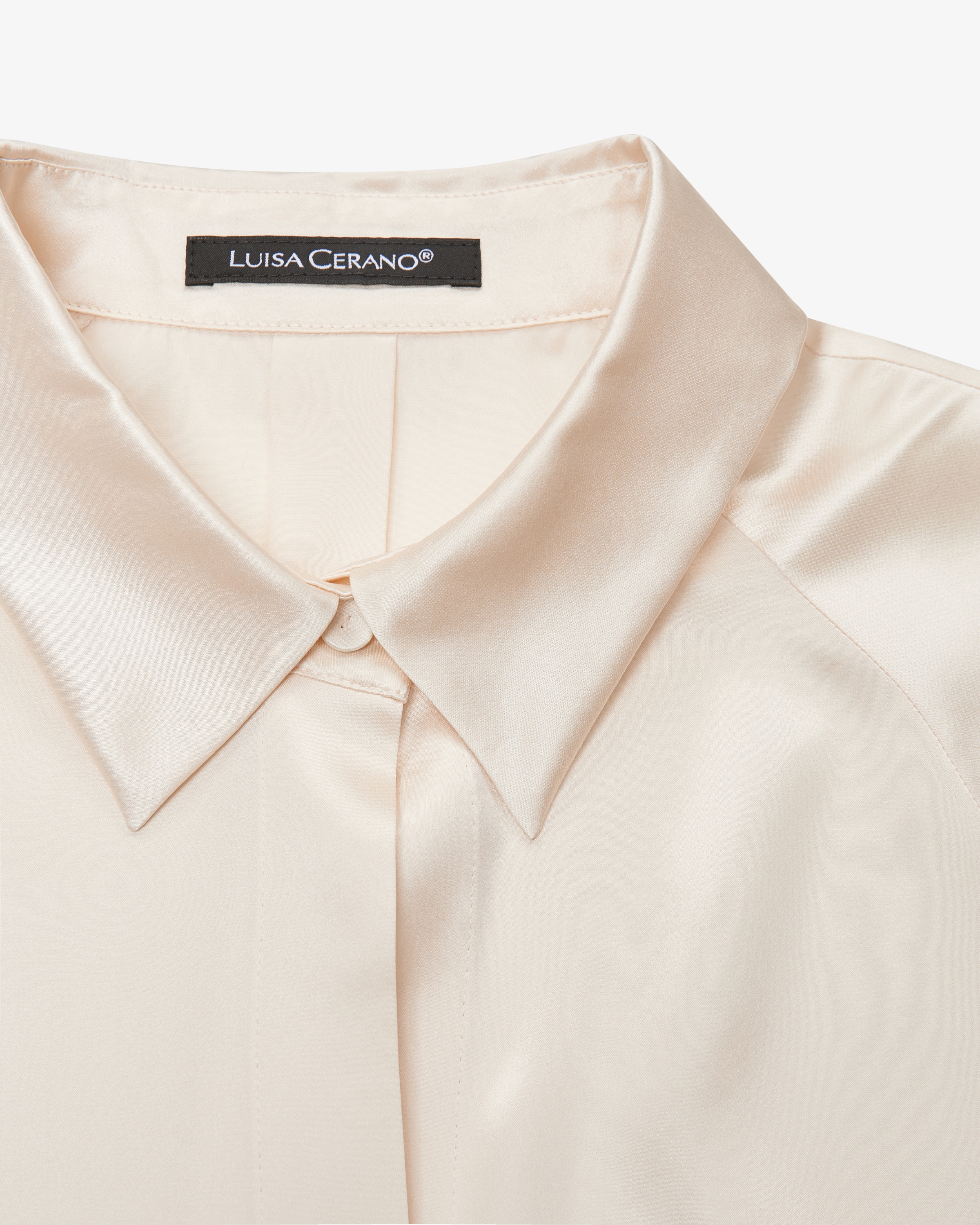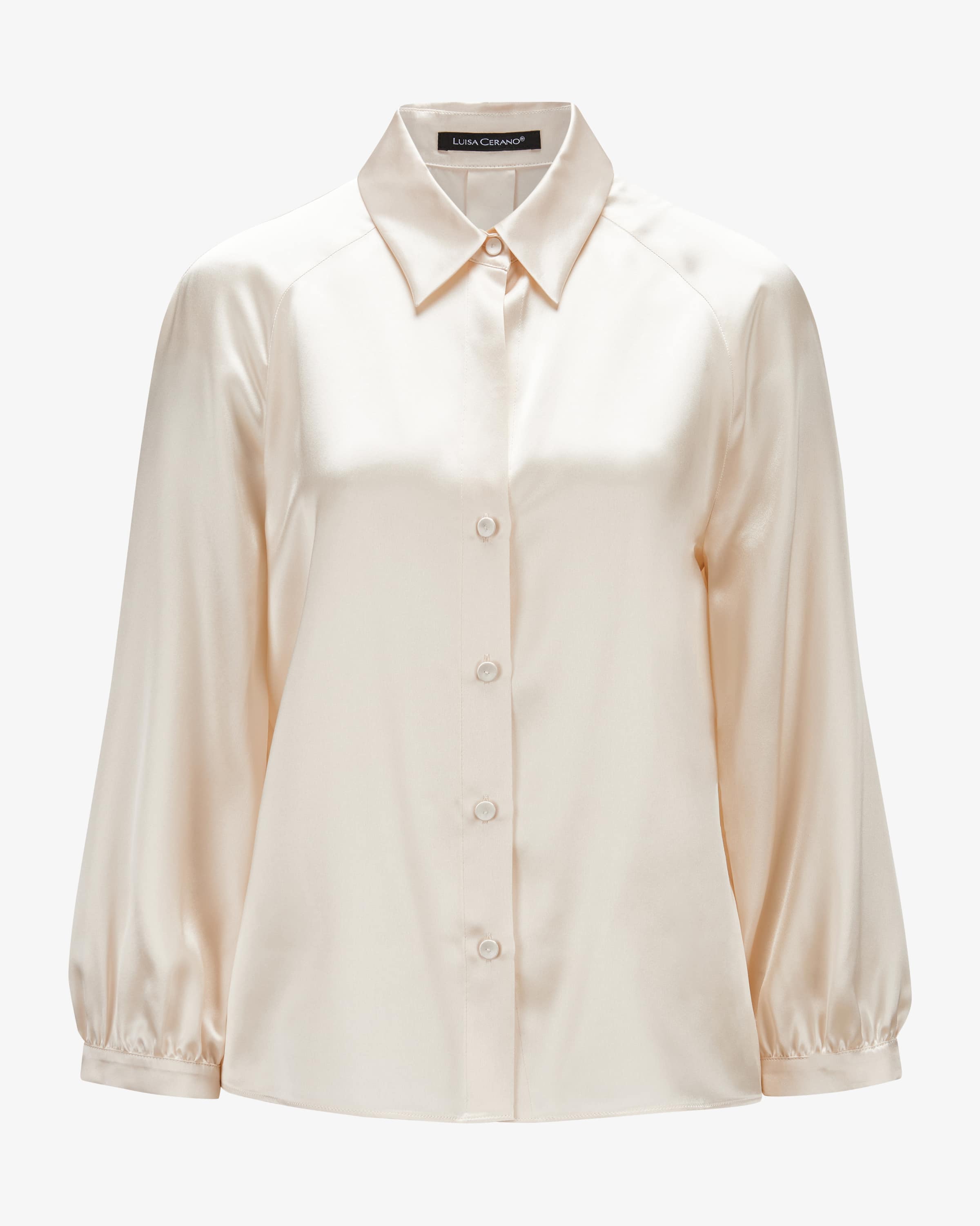 Seidenbluse für Damen von Luisa Cerano in Creme. Das deutsche Label mit Fokus auf elegante Alltagstauglichkeit. Hochwertige Stoffe & lässige Femininität – tragbarer Luxus für jeden Tag. Auch dieses Modell in fließender Seiden-Qualität überzeugt mit angenehmen Tragemomenten, während der klassische Schnitt und die Stoffbezogene Knöpfe den Gesamtlook feminine abrunden. Ein zeitloser Begleiter der sich vielseitig kombinieren lässt.