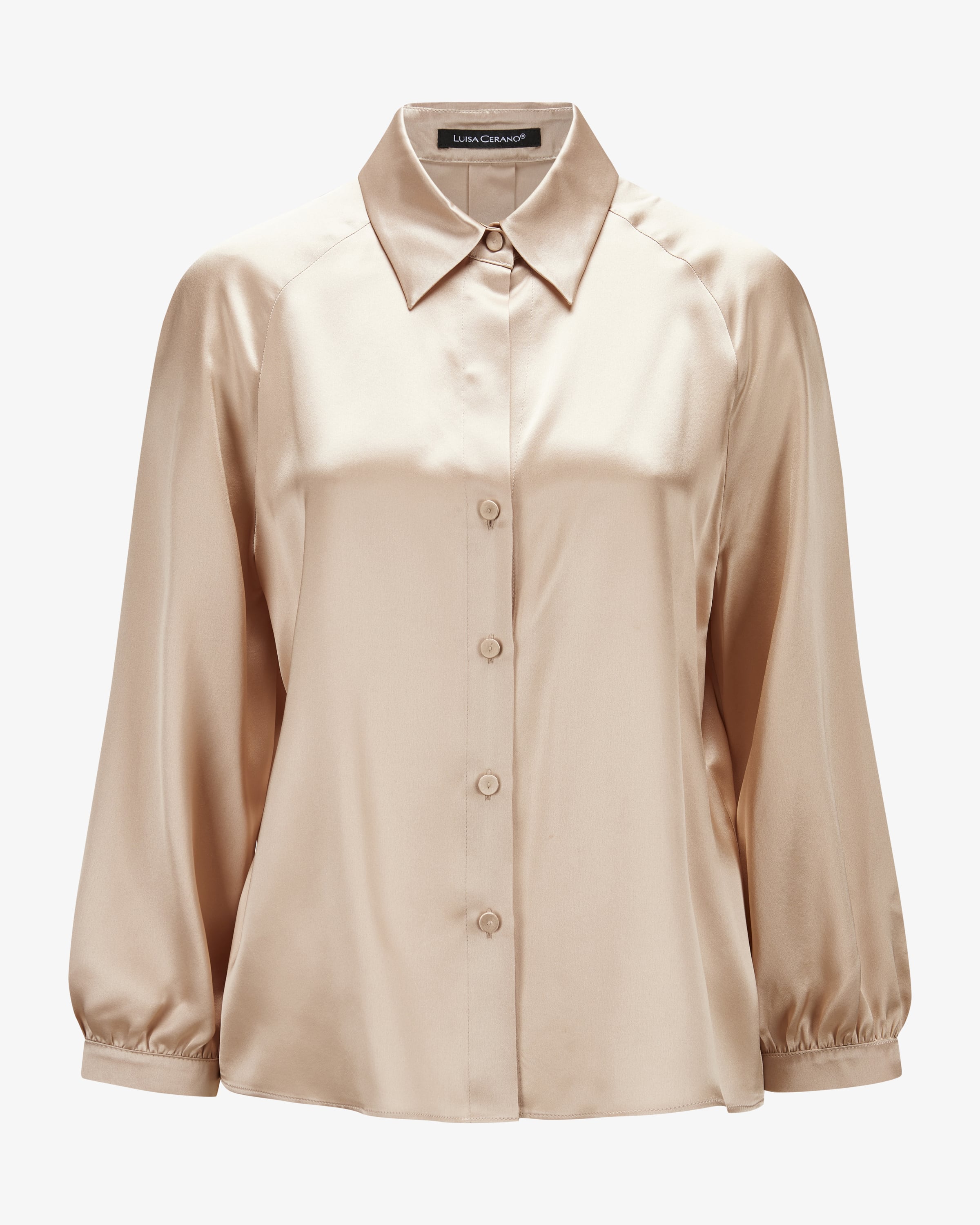 Seidenbluse für Damen von Luisa Cerano in Camel. Das deutsche Label mit Fokus auf elegante Alltagstauglichkeit. Hochwertige Stoffe & lässige Femininität – tragbarer Luxus für jeden Tag. Auch dieses Modell in fließender Seiden-Qualität überzeugt mit angenehmen Tragemomenten, während der klassische Schnitt und die Stoffbezogene Knöpfe den Gesamtlook feminine abrunden. Ein zeitloser Begleiter der sich vielseitig kombinieren lässt.