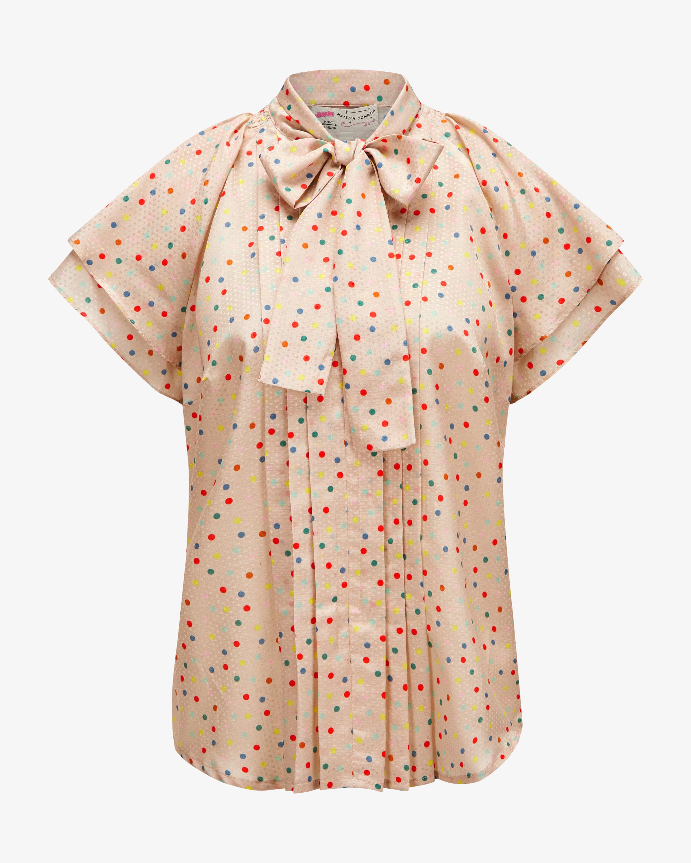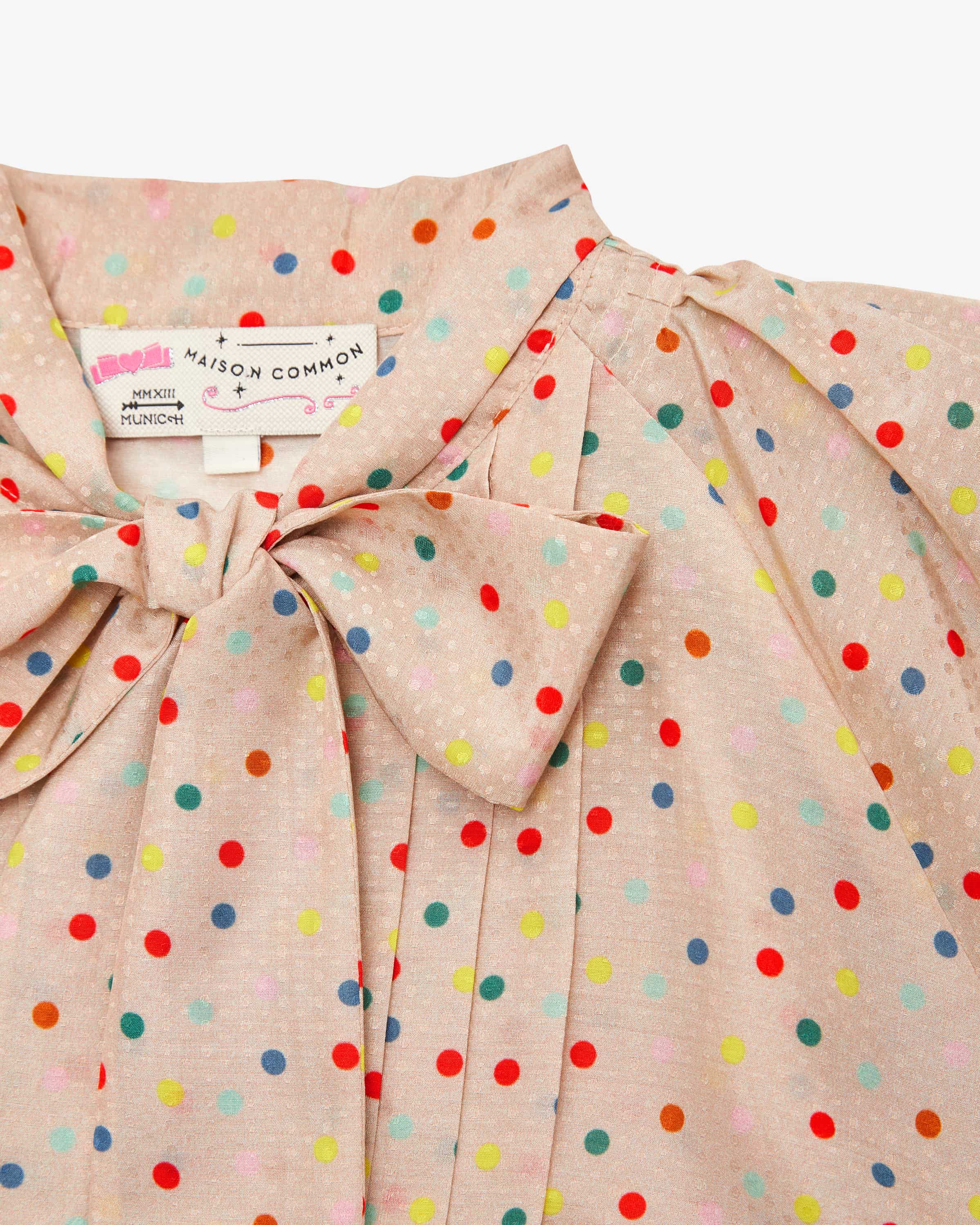 Blusenshirt für Damen von Maison Common in Sand und Bunt. Das Label verkörpert Lebensfreude und Esprit, die sich neben femininem Charme mit farbenfrohen Designs sowie Mustern in den Kollektionen wiederfinden. Dieses Modell besticht mit feiner Haptik, während das Punkte-Design in Kombination mit romantischen Details einen modernen Begleiter kreieren, der sich vielseitig stylen lässt.