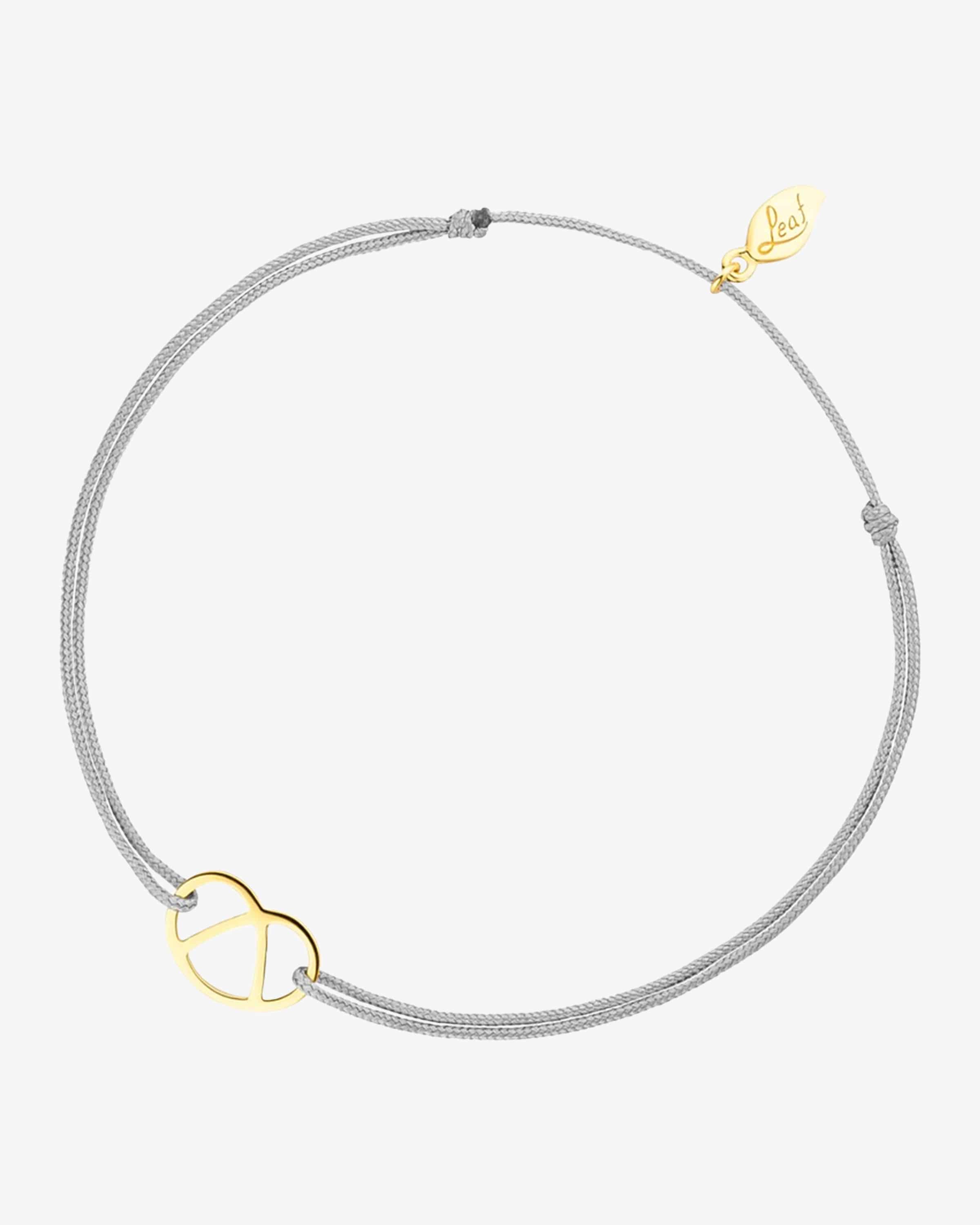 Brezn Glücksbändchen für Damen von Leaf in Grau und Gold. Ein charmantes Geschenk für Ihre Liebste - Das filigrane Schmuckstück besticht dank des minimalistischen Brezen-Anhängers aus 925 Sterlingsilber und 18 Karat vergoldet als besonderes Highlight, das sich perfekt für stilvolle Lagen-Looks eignet.