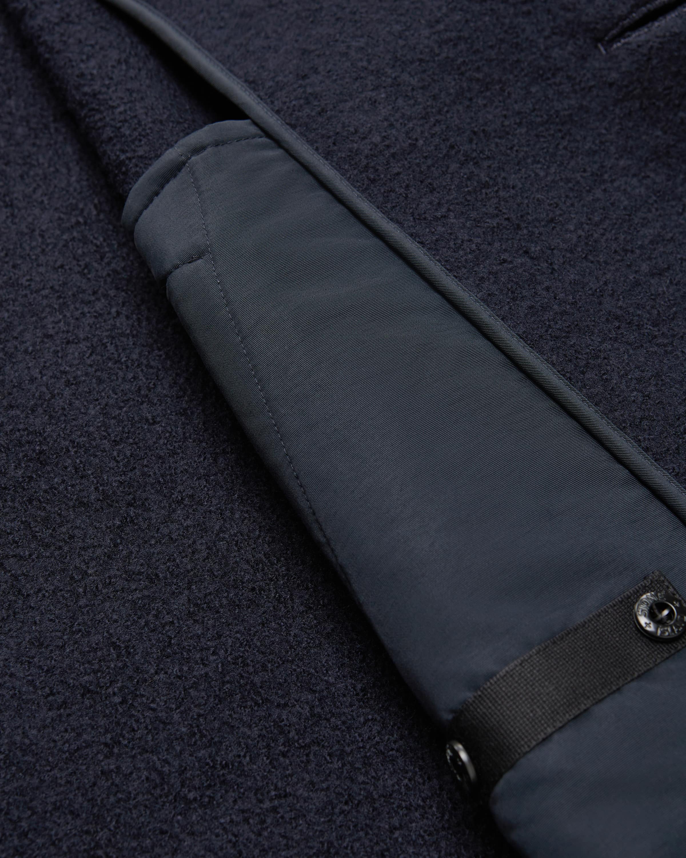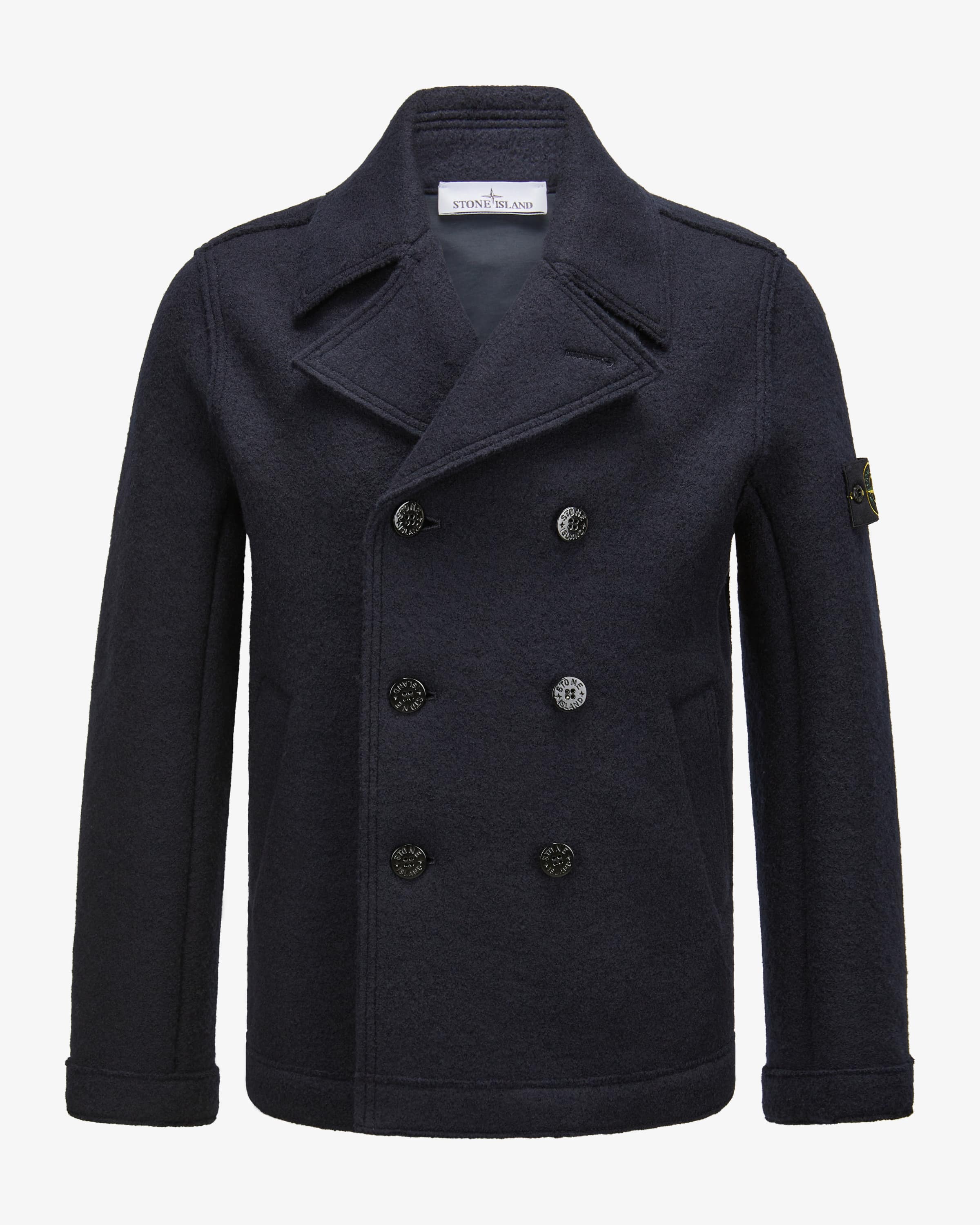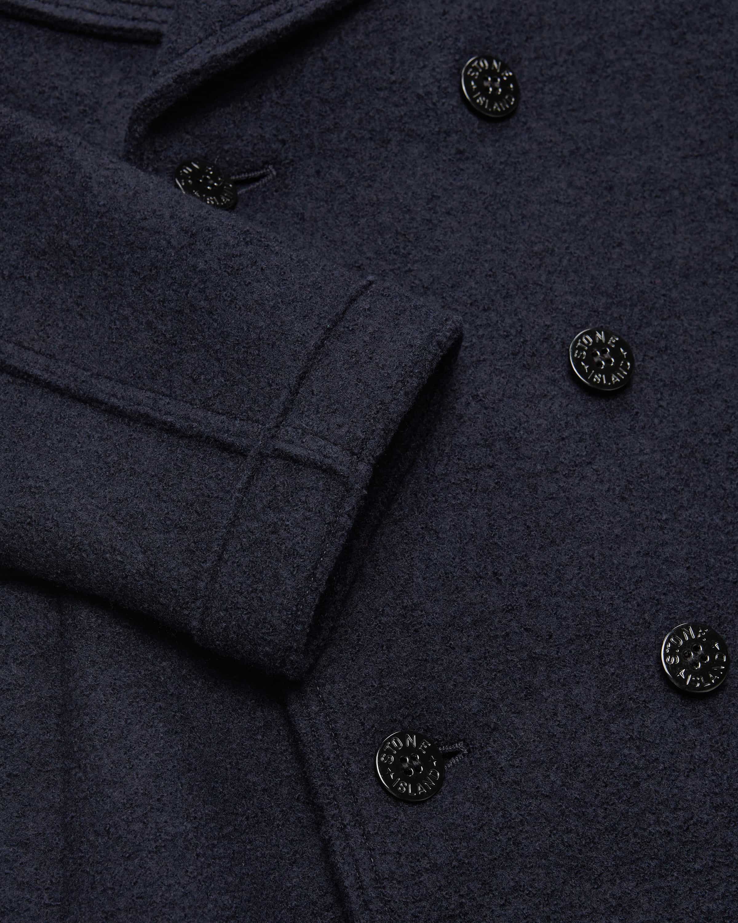 Cabanjacke für Herren von Stone Island in Navy. Das doppelreihige Modell präsentiert sich mit weiter Silhouette, welche durch die schwere Schurwoll- Qualität modisch ergänzt wird. Die charakteristische Label-Plakette sowie die Logo-Knöpfe runden den Look sportiv ab.