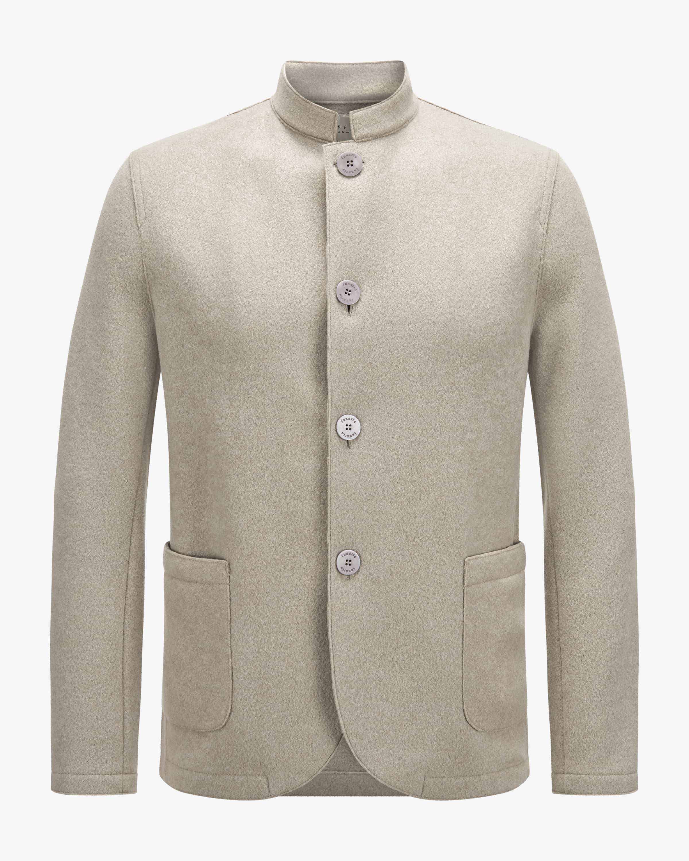 Cashmere-Jacke für Herren von Lunaria in Stein. Modisch und stilvoll zugleich präsentiert sich das Modell aus hochwertiger Cashmere-Qualität mit besonders weicher Haptik. Markante Stecktaschen sowie Logo-Knöpfe unterstreichen den maskulinen Look gekonnt.