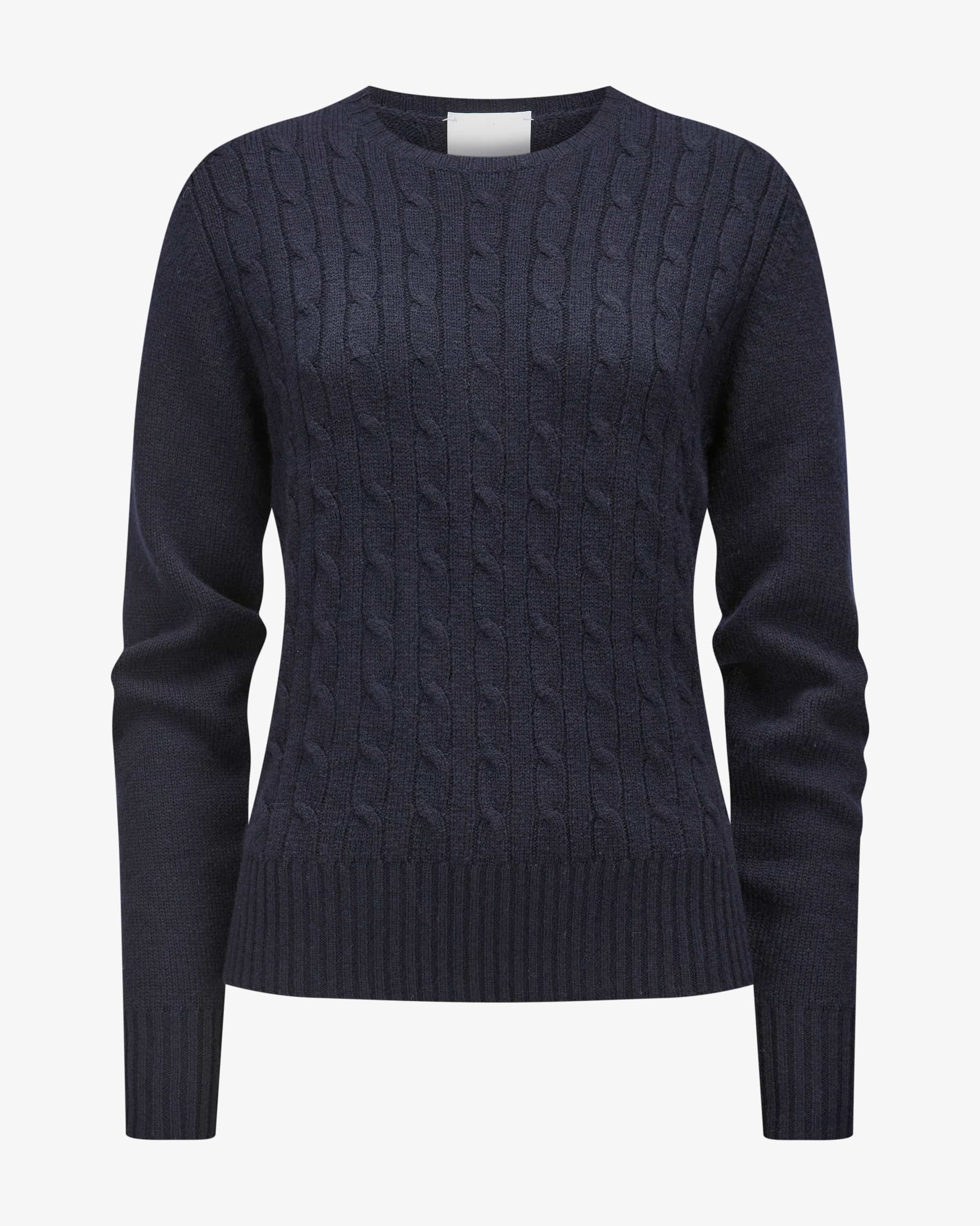 Cashmere-Pullover für Damen von Allude in Navy. Das Münchner Unternehmen Allude steht für Mode, die Selbstbewusstsein und zeitlose Individualität ausstrahlt. Gefertigt aus luxuriöser Cashmere-Wolle, besticht das Modell mit besonders weichem Griff und leichter Strick-Haptik. Das feine Zopfstrickmuster und klassische Rippstrick-Details runden den Strick-Favoriten harmonisch ab.