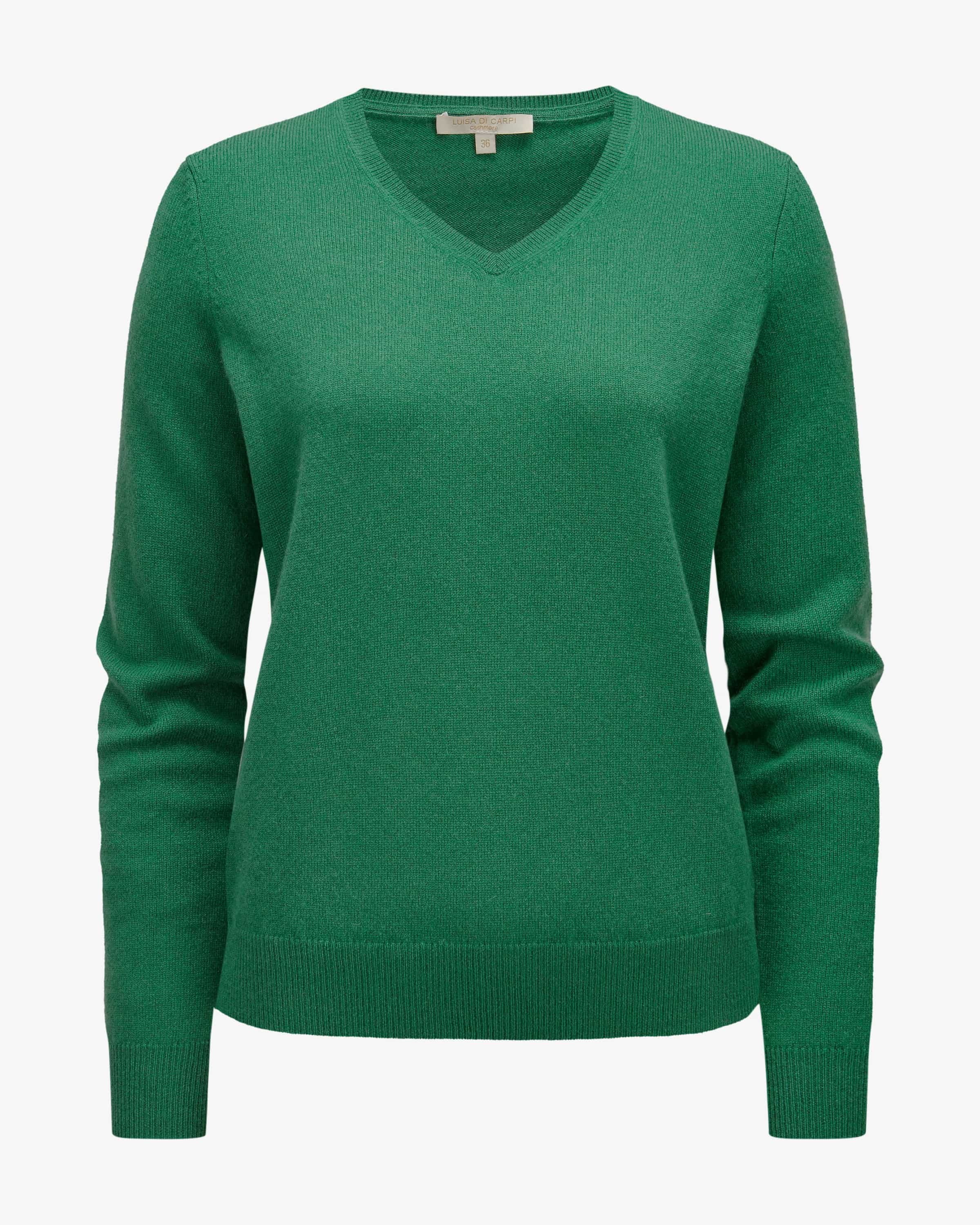 Cashmere-Pullover für Damen von Luisa Di Carpi in Grün. Dank der feinen Strick-Qualität und der Verwendung von hochwertiger Cashmere-Wolle überzeugt das Modell mit weicher Haptik, die für besonders angenehme Tragemomente sorgt. Zugleich runden klassische Details das Gesamtbild harmonisch ab.