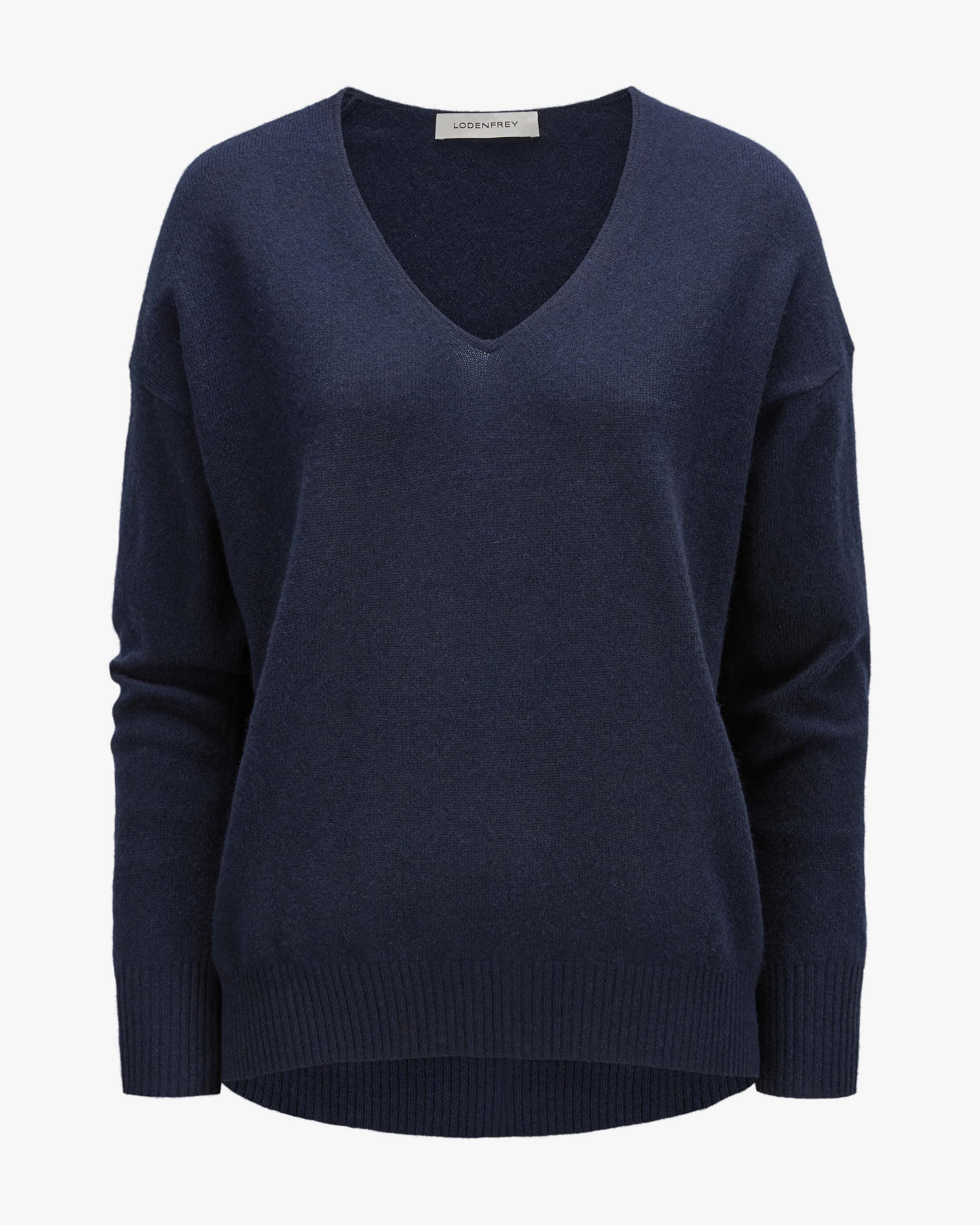 Cashmere-Pullover für Damen von LODENFREY in Navy. Dank der hochwertigen Cashmere-Qualität punktet das Modell mit einer angenehm-weichen Haptik und einem leichten Tragegefühl, während die weite Schnittführung einen legeren Strick- Favoriten kreiert.