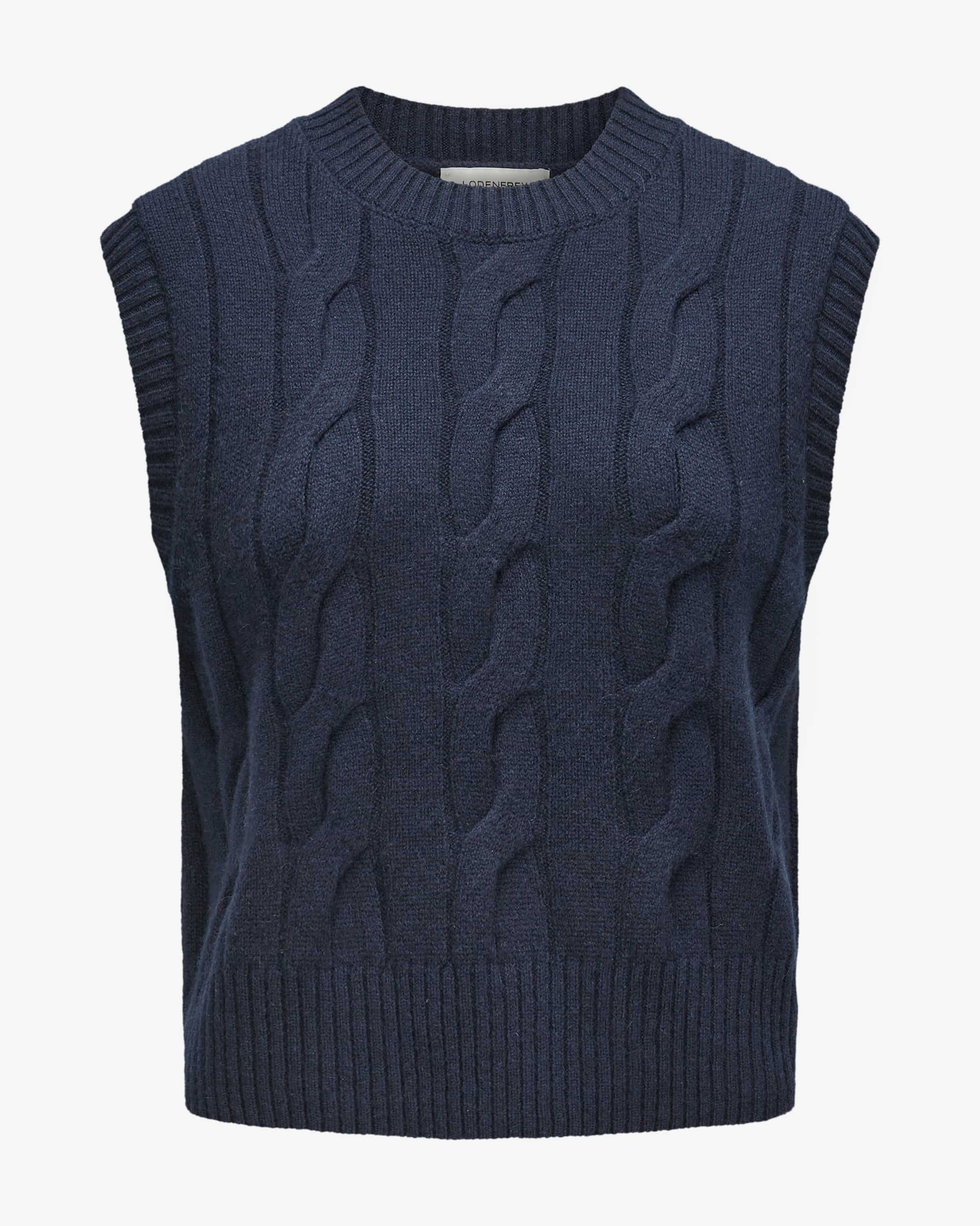 Cashmere-Pullunder für Damen von LODENFREY in Marine. Gefertigt aus hochwertiger Cashmere-Qualität besticht das Modell mit einem weichen Griff, während das moderne Zopfstrick-Muster einen vielseitigen Favoriten für Equestrian-Looks schafft.