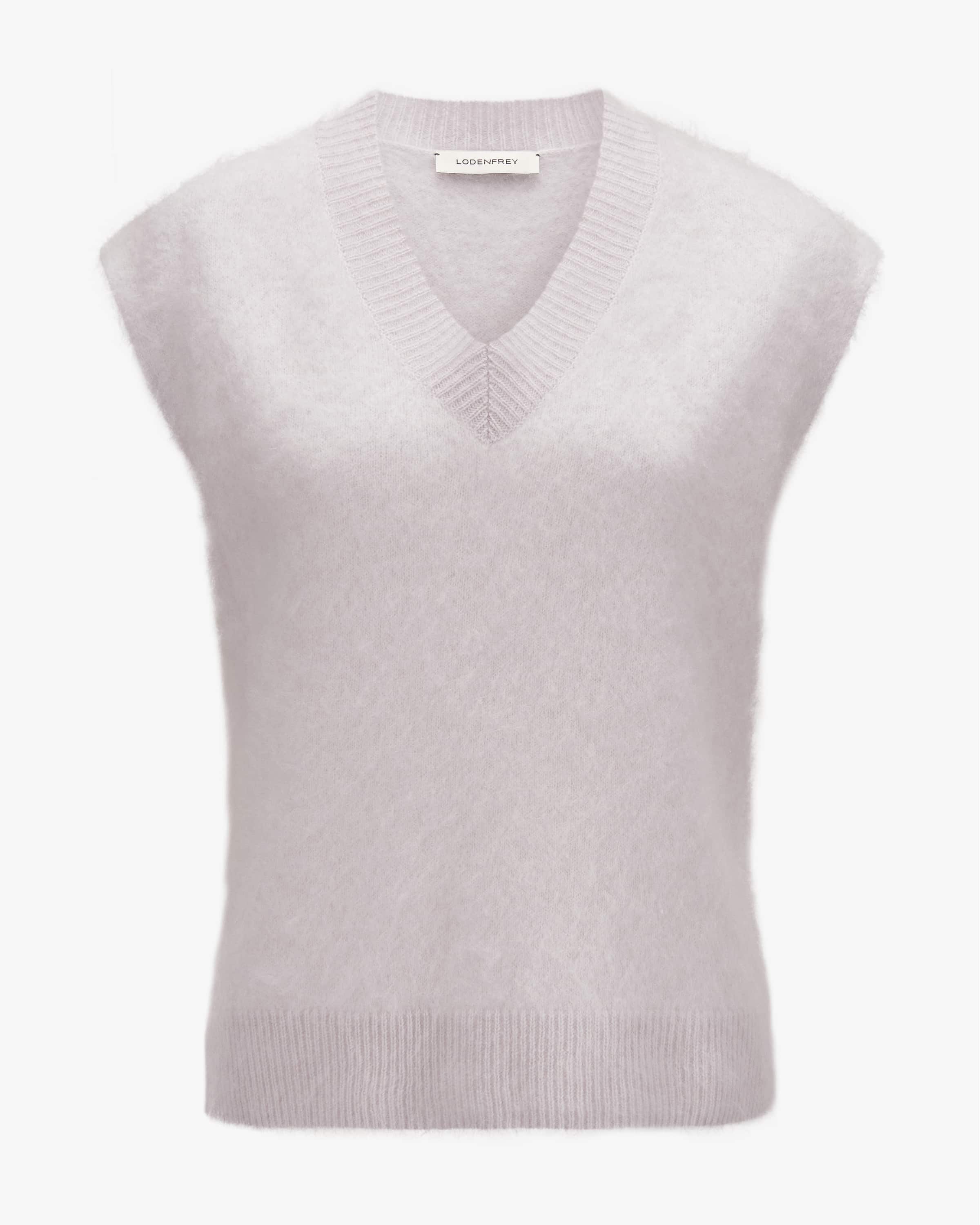 Cashmere-Pullunder für Damen von LODENFREY in Hellgrau. Das Modell besticht dank der brushed Cashmere-Qualität in modischer Aufmachung, während die Rippstrick- Details einen Casual Favoriten mit sportivem Touch schaffen.