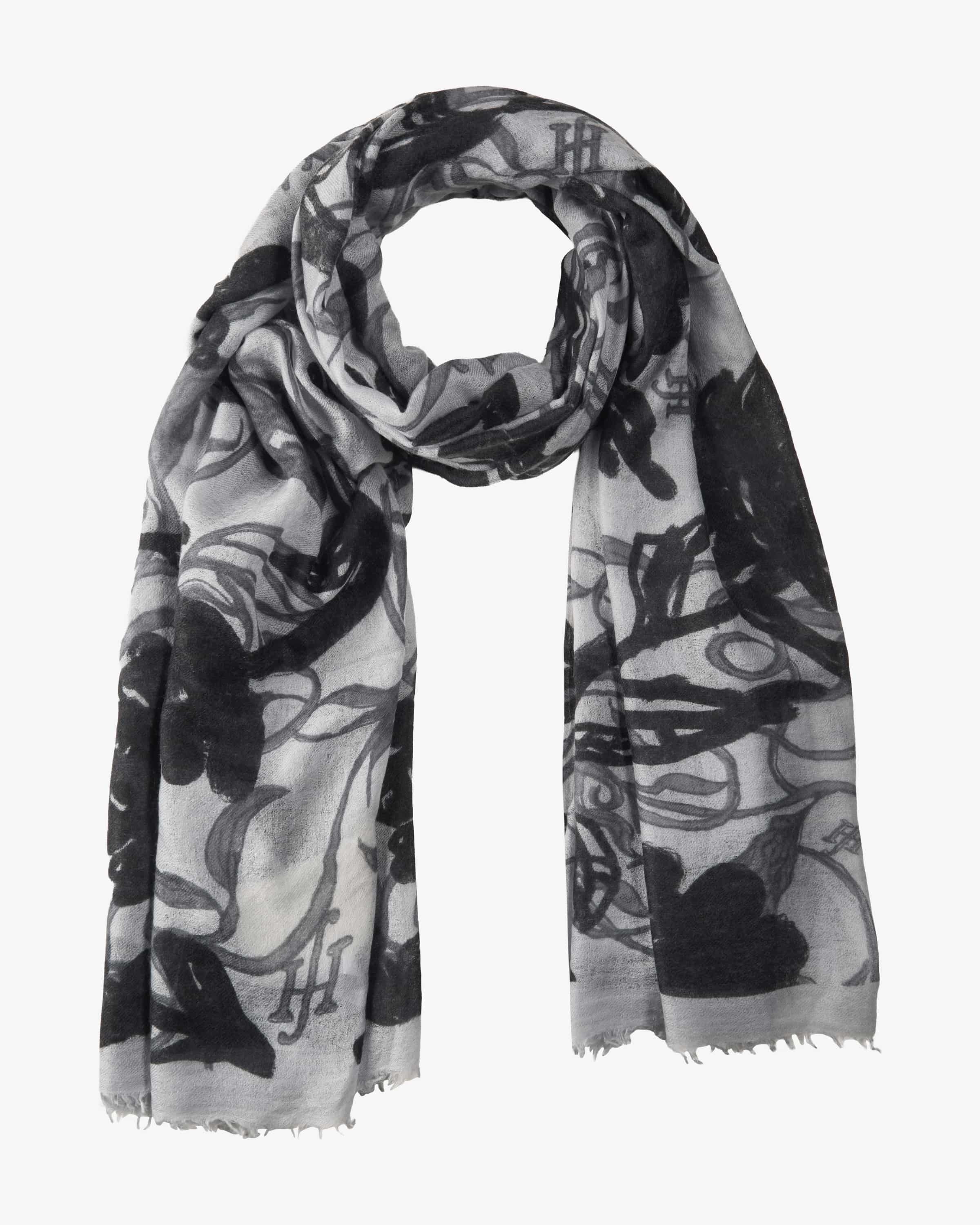 abstraktem Blumenmuster und besonders weichem Griff. Logo-Details und Fransen an
