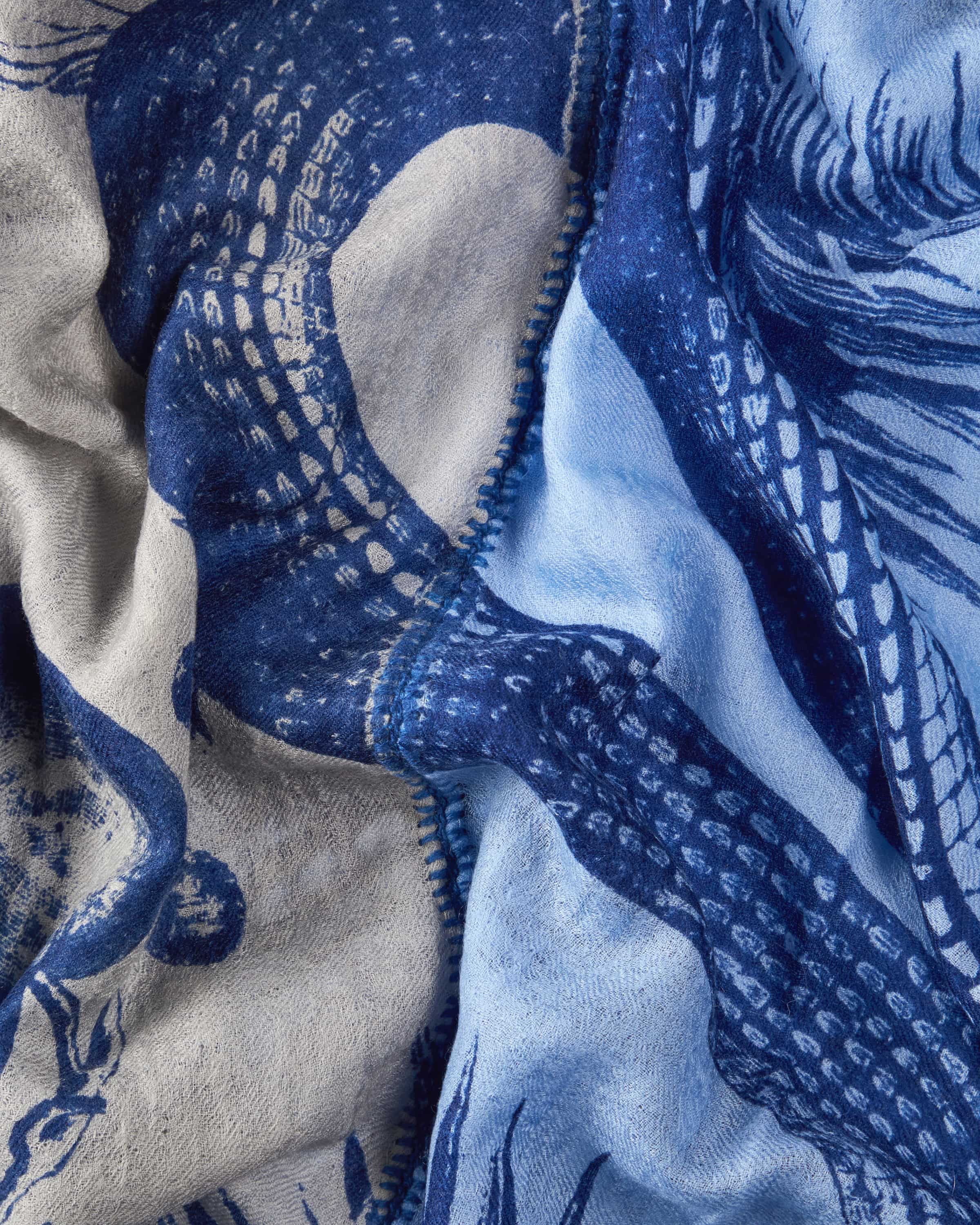 Cashmere-Schal für Damen von Friendly Hunting in Blau, Grau und Navy. Aus