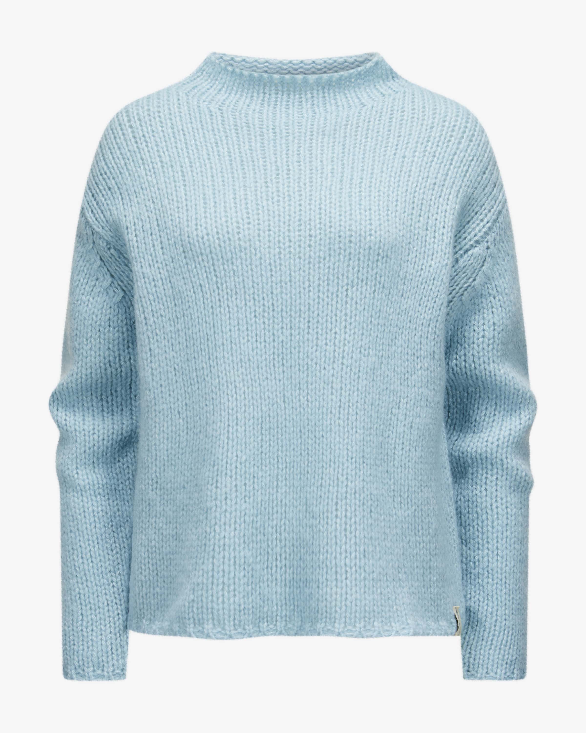 Cashmere-Seiden-Pullover für Damen von Henry Christ in Aqua. Leichter Luxus aus Hamburg – erkennbar an dezenten Farben. Auch dieses Grobstrick-Modell überzeugt sowohl haptisch als auch optisch mit seinem hochwertigen Cashmere-Seiden-Mix, während das zeitlose Design für einen klassischen Look sorgt. Die dezent glitzernden Overlocknähte an den Seiten setzen zudem modische Akzente.