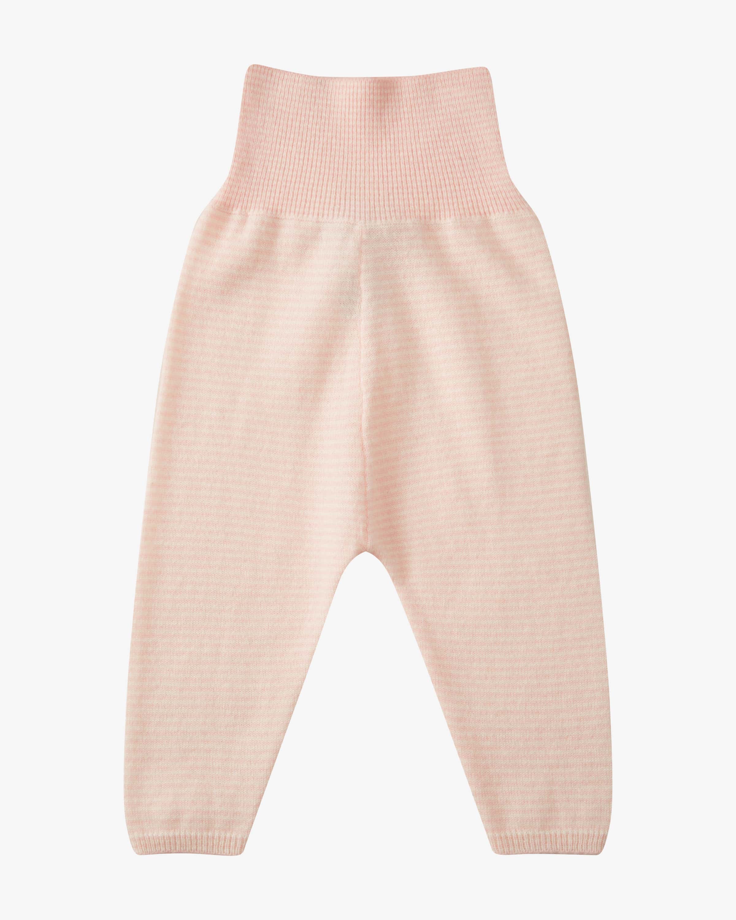 Cashmere-Strickhose Bobby für Babys von Papa Lobster in Rosé und Off-White. Stricklieblinge aus Kaschmir & Co – mit viel Liebe und Know-how in Deutschland designt. Auch dieses Modell punktet mit hochwertiger Cashmere-Qualität und besonders angenehmen Tragemomenten, während das feine Streifenmuster einen niedlichen Look kreiert.