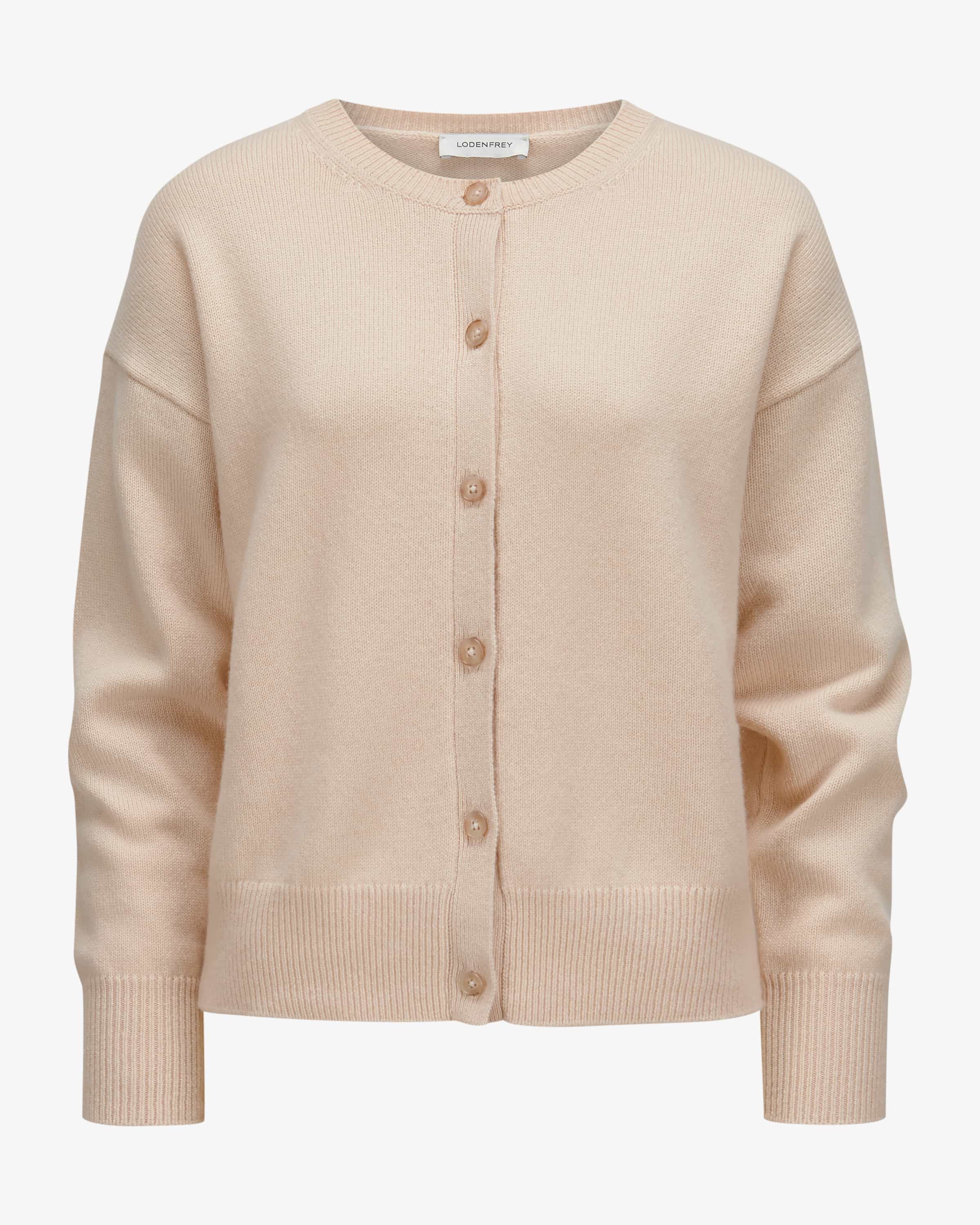 Cashmere-Strickjacke für Damen von LODENFREY in Sand. Das Casual Modell präsentiert sich in cleaner Aufmachung, während die hochwertige Cashmere- Qualität Wohlfühl-Momente versprechen. Zudem runden die Rippstrick-Bündchen das Gesamtbild harmonisch ab.