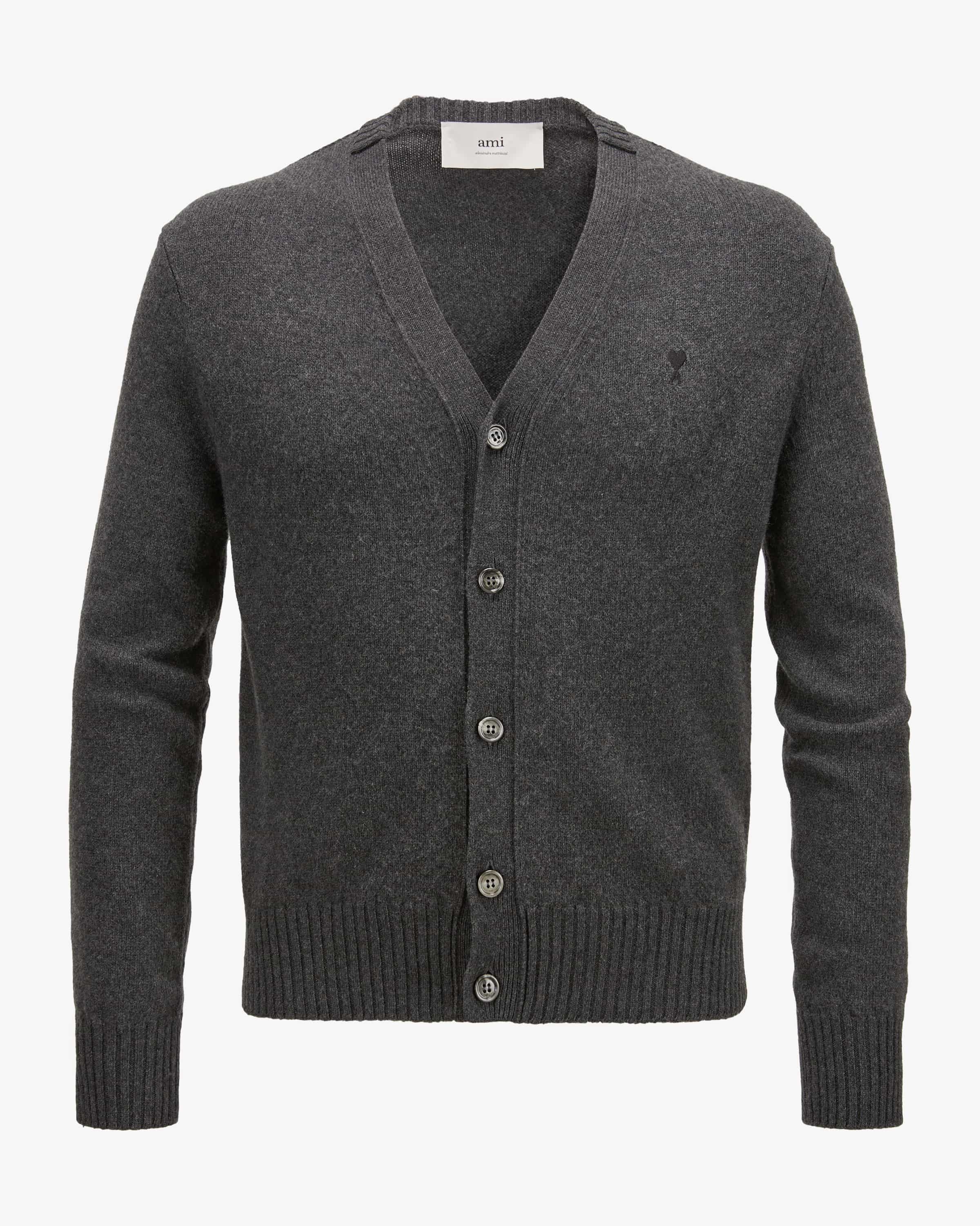 Cashmere-Strickjacke für Herren von Ami Paris in Anthrazit. Ami Paris ist benannt nach den Freunden von Alexandre Mattiussi – Mode mit persönlicher Note. Das Modell besticht dank der hochwertigen Cashmere-Qualität sowie der herzförmigen Logo-Stickerei mit haptischen wie auch optischen Highlights, während die klassische Aufmachung ein zeitloses Basic mit dem gewissen Etwas kreiert.