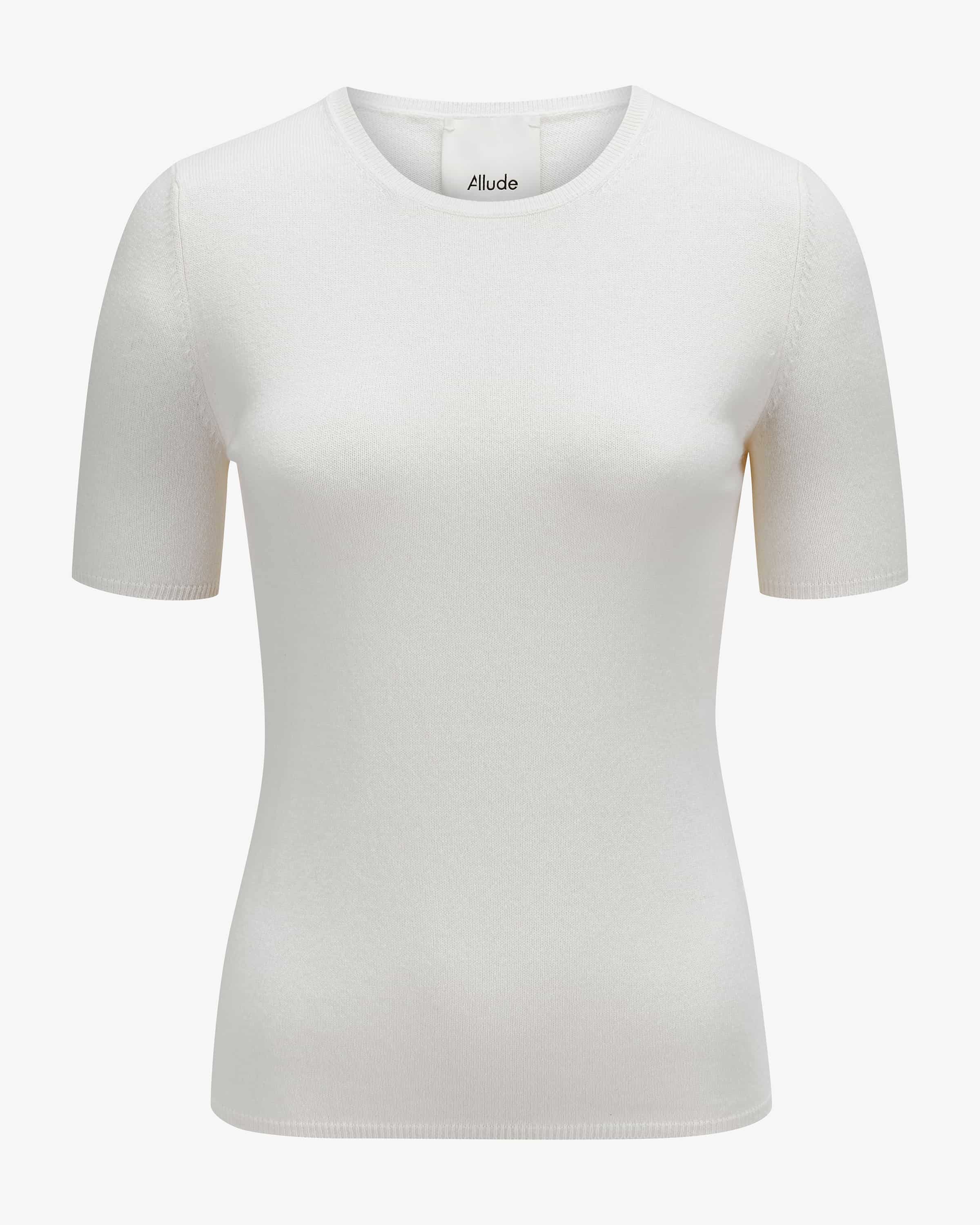 Cashmere-Strickshirt für Damen von Allude in Off-White. Das Münchner Unternehmen Allude steht für Mode, die Selbstbewusstsein und zeitlose Individualität ausstrahlt. Gefertigt aus luxuriöser Cashmere-Wolle, besticht das Modell mit besonders weichem Griff und leichter Strick-Haptik. Das cleane Design mit antaillierter Silhouette schafft dabei ein feminines Basic mit zeitlosem Charakter.