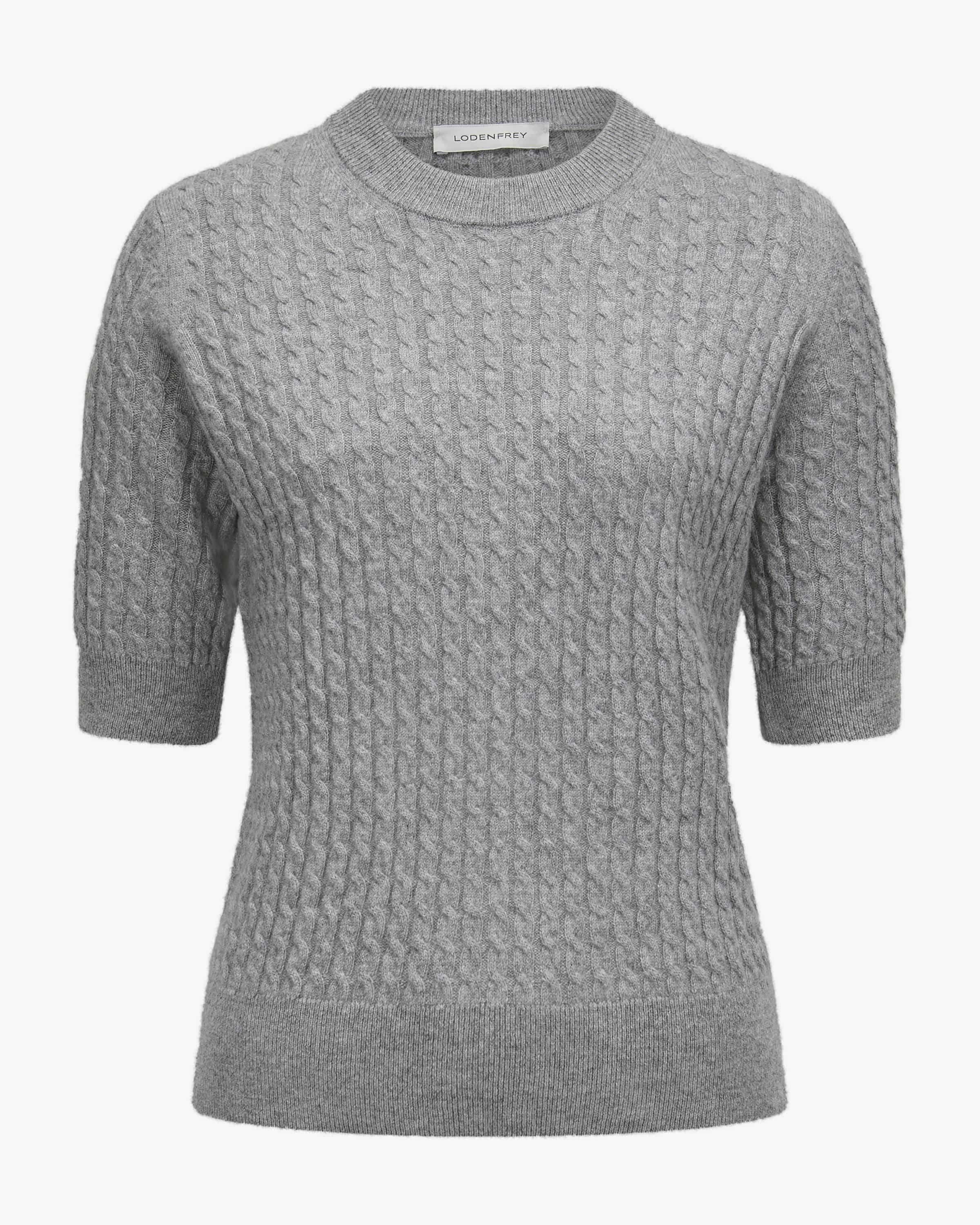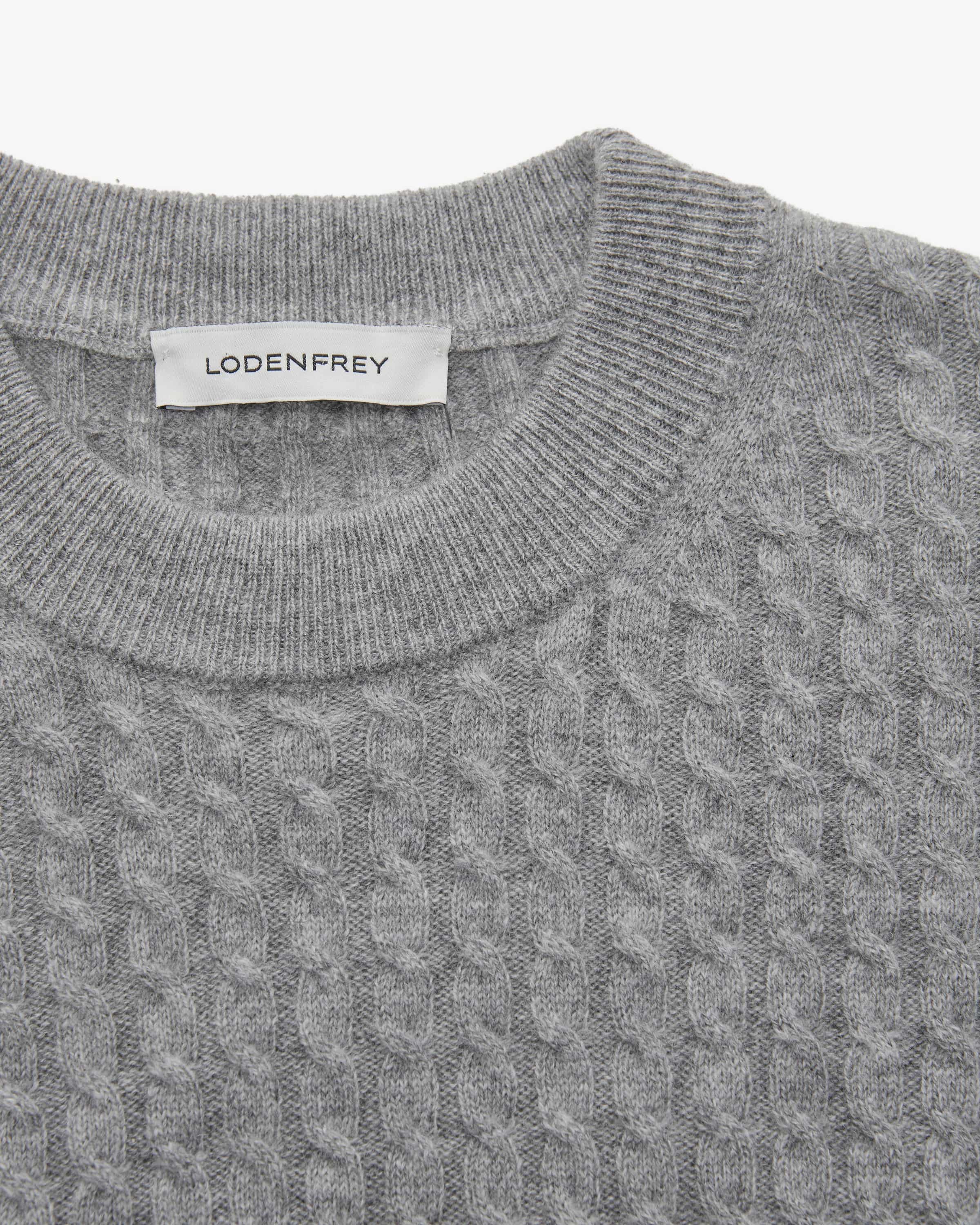 Cashmere-Strickshirt für Damen von LODENFREY in Grau. Das Modell aus feiner Cashmere-Wolle begeistert mit weicher Haptik und leichtem Tragegefühl, während das Zopfmuster einen modernen Strick-Begleiter mit Country-Flair kreiert.