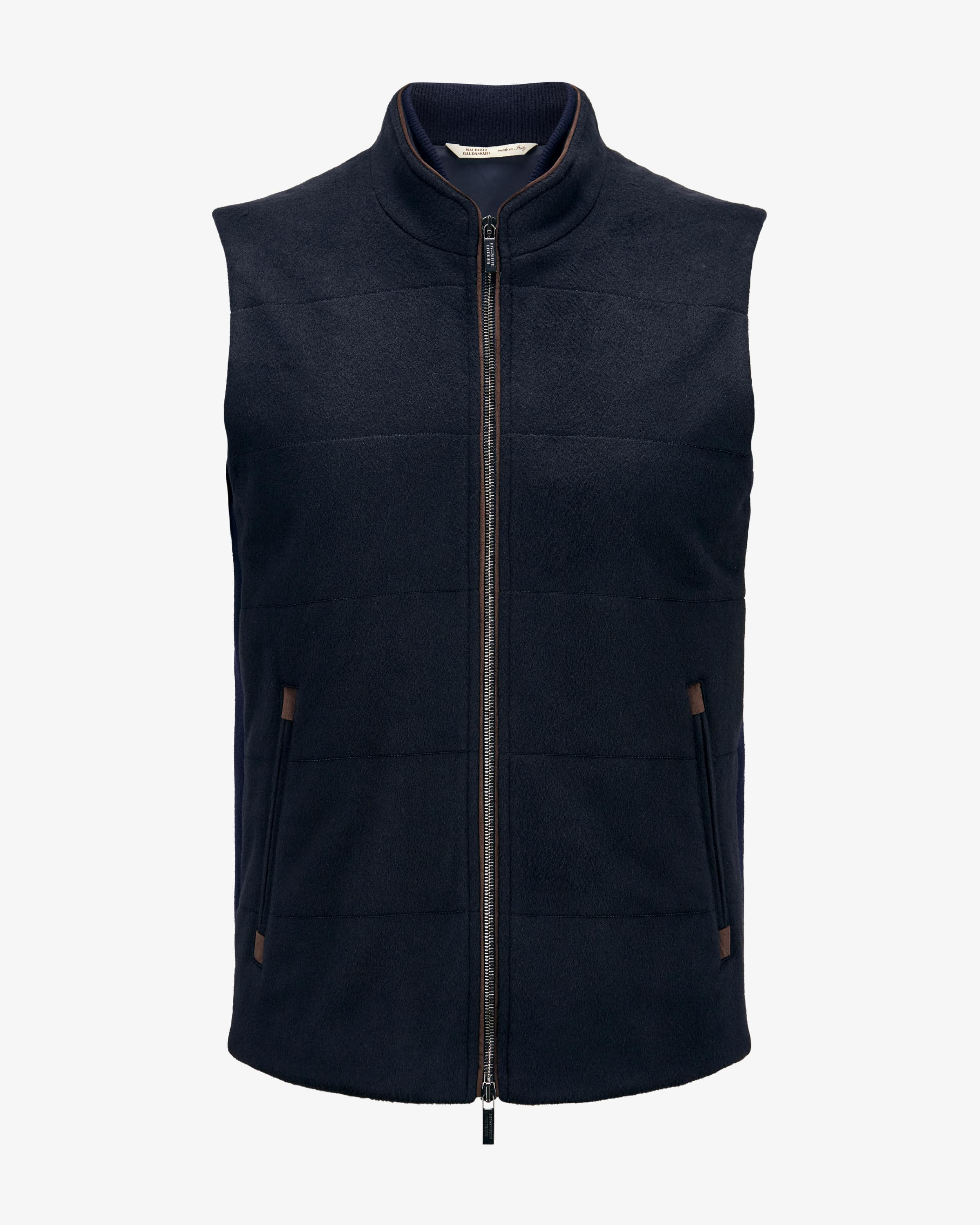 Cashmere-Weste für Herren von Maurizio Baldassari in Navy. Das dezent gesteppte Modell präsentiert sich dank hochwertiger Cashmere-Qualität in edler Aufmachung, welche die Rippstrick-Elemente leger ergänzen. Gleichzeitig sorgt die nachhaltige, besonders leichte Thermore®-Füllung für eine optimale Wärmeisolierung und begeistert zudem durch seine atmungsaktive sowie pflegeleichte Eigenschaft.