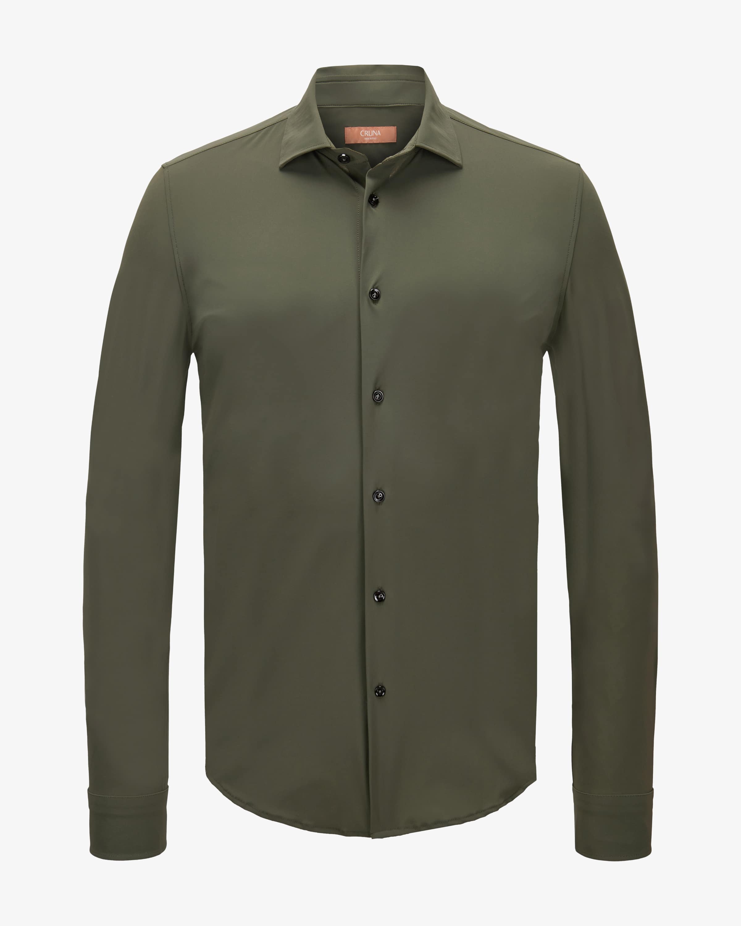 Casualhemd Manhattan für Herren von Cruna in Oliv. Zeitgemäße Männermode aus Vicenza – Cruna steht für italienische Lässigkeit und hochwertige Stoffe. Das Modell begeistert dank der elastischen Tech-Qualität mit besonders hohem Tragekomfort, während die cleane Aufmachung einen kombistarken Alltags-Favoriten kreiert.