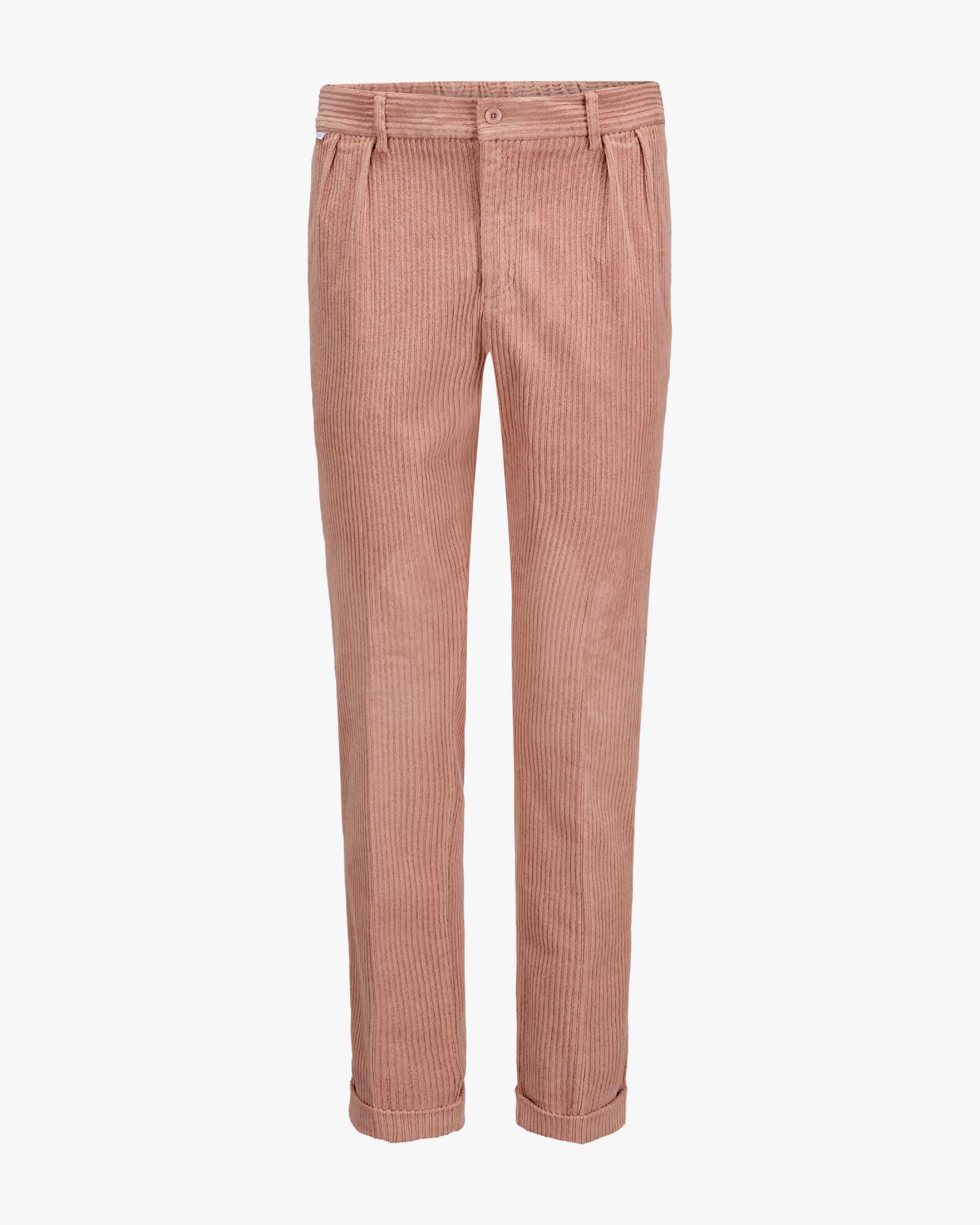 Cordhose für Herren von 04651/ A trip in a bag in Rosé. Das Modell punktet dank elastischem Baumwoll-Mix in grober Cord-Aufmachung mit weichem Griff und hohem Tragekomfort, während die umgeschlagenen Beinenden sowie dezenten Bundfalten den maskulinen Look modern unterstreichen.