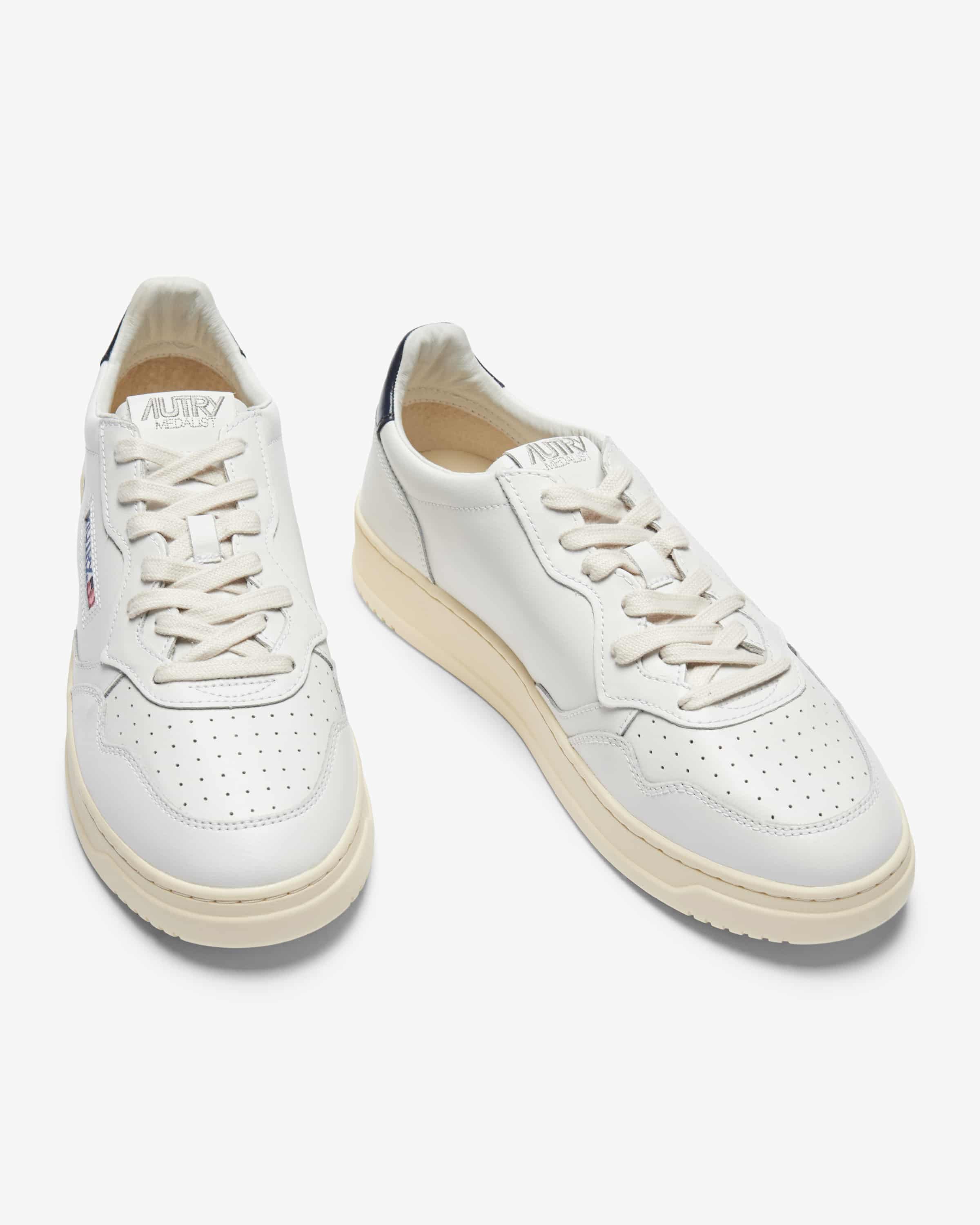 Medalist Low Sneaker für Herren von Autry in Weiß und Nachtblau. Das 1982 in Dallas gegründete Label etablierte sich zu einem der beliebtesten Sneaker-Marken der 1980er Jahre und feierte 2019 sein Comeback. Auch dieses Modell aus hochwertigem Glattleder präsentiert sich in zeitlos-sportivem Look. Die amerikanische Flaggen- Applikation, welche als das Markenzeichen des Labels gilt, vollendet das Gesamtbild harmonisch, während die Frottee-Innenseite für angenehmen Tragekomfort sorgt.