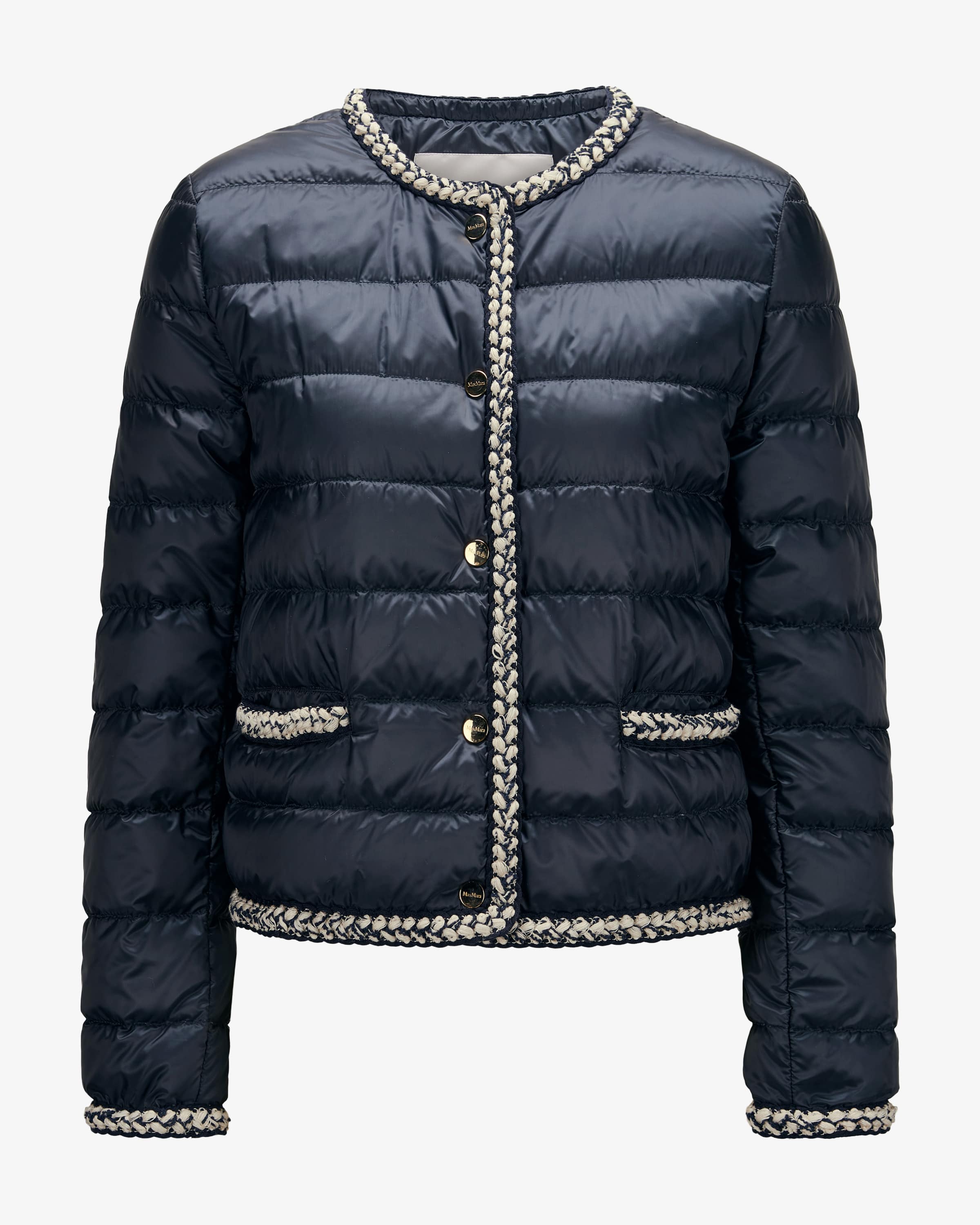 Daunenjacke Mtcchloe für Damen von Max Mara The Cube in Nachtblau. Innovative Capsule-Kollektion von Max Mara. Das Modell in moderner Passform überzeugt mit leichter Daunen-Feder-Füllung, welche für warme Tragemomente sorgt. Die geflochtene Borte und das changierende Stepp-Design komplementieren den Gesamtlook gekonnt.