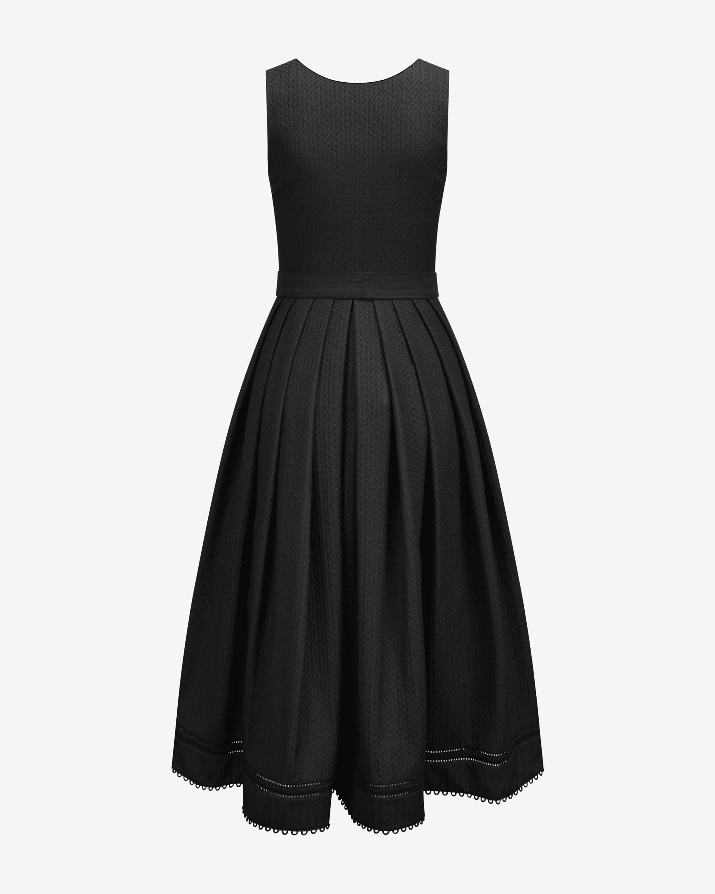 Dirndl lang mit Schürze für Damen von Sportalm in Schwarz. Für das österreichische Modelabel stehen exklusive Designs sowie höchste Qualitätsstandards im Fokus. Auch dieses Modell punktet dank der strukturierten Optik in modischer Aufmachung, während tonige Borten am Saum den traditionellen Charakter stilvoll untermalen. Zugleich vollendet die leichte Schürze mit feinem Jacquard-Muster den Trachten-Look gekonnt.