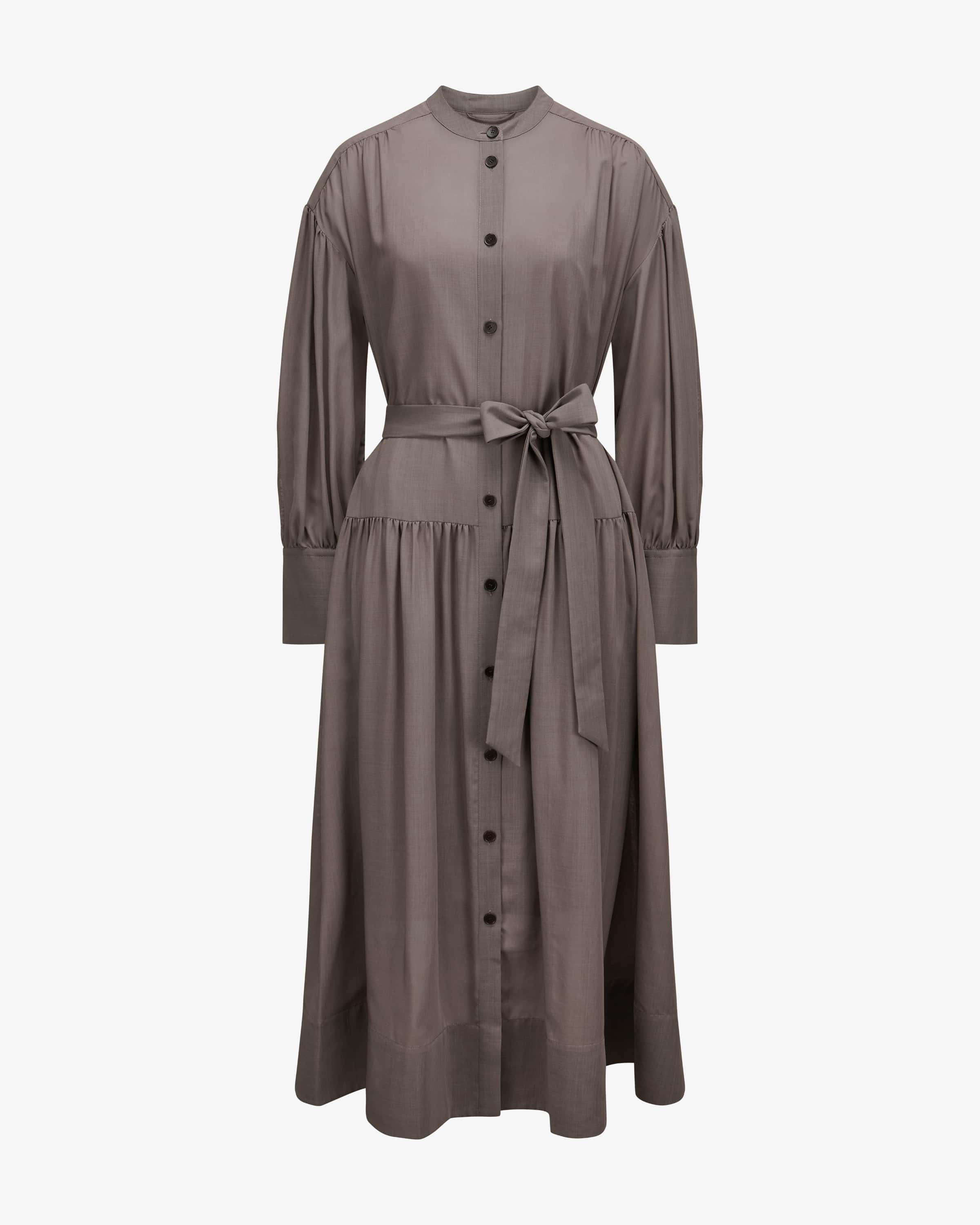 Emma Kleid für Damen von Joseph in Taupe. Das Londoner Label steht für moderne Klassiker mit architektonischer Klarheit – luxuriöse Basics in perfekter Passform. Auch dieses Modell begeistert dank dem fließenden Woll-Mix mit angenehmer Haptik, während die Falten-Details und das abnehmbare Taillenband für einen femininen Charme sorgen.