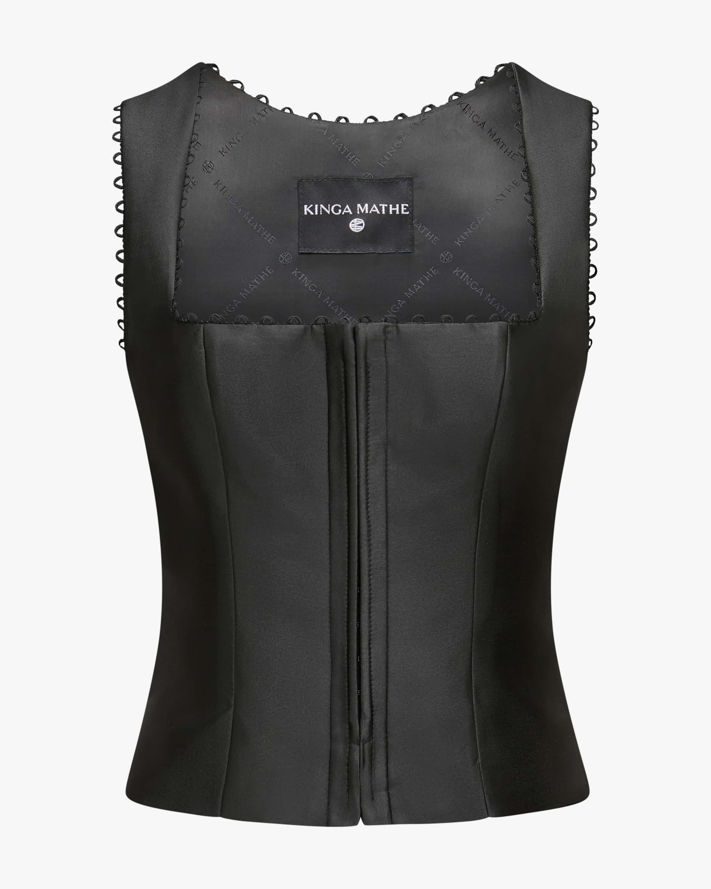 Füsun Trachten-Mieder für Damen von Kinga Mathe in Schwarz. Mit diesem changierenden Spencer-Modell erhalten Sie einen modischen und dennoch traditionellen Eyecatcher für vielseitige Trachten-Looks – egal ob kombiniert zum femininen Rock oder zur rustikalen Lederhose.