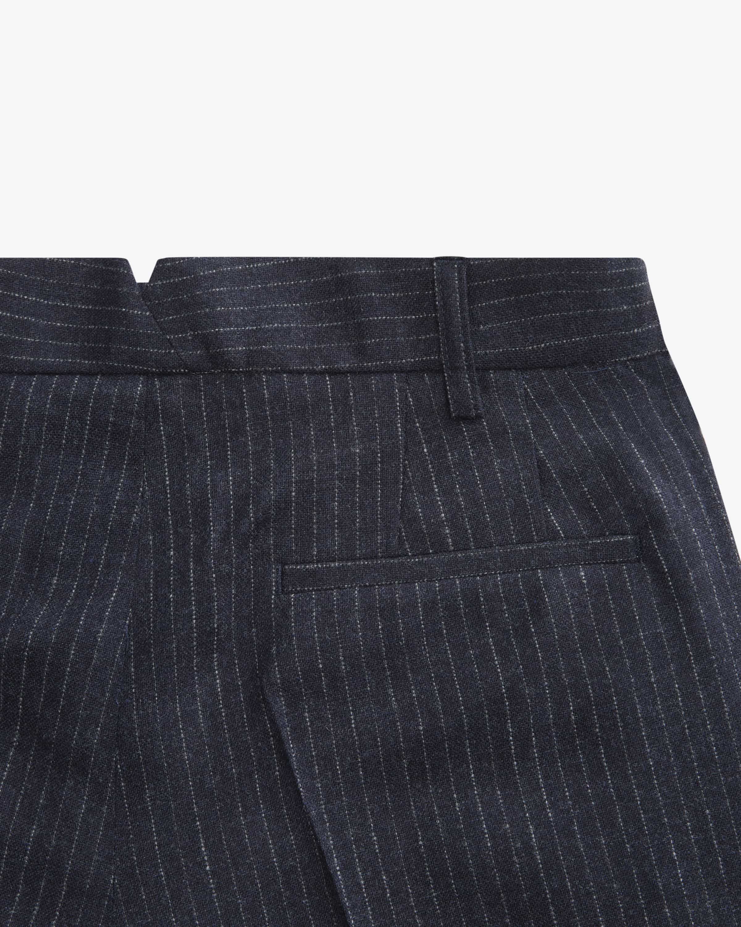Gertrude Trachtenhose für Damen von Grasegger x Lodenfrey in Dunkelblau. Das in Kooperation mit Lodenfrey designte Modell präsentiert sich in traditioneller Aufmachung und leichter Merinowolle-Qualität, die für angenehmen Tragekomfort sorgt. Die feinen Nadelstreifen und klassische Details runden den Style harmonisch ab.