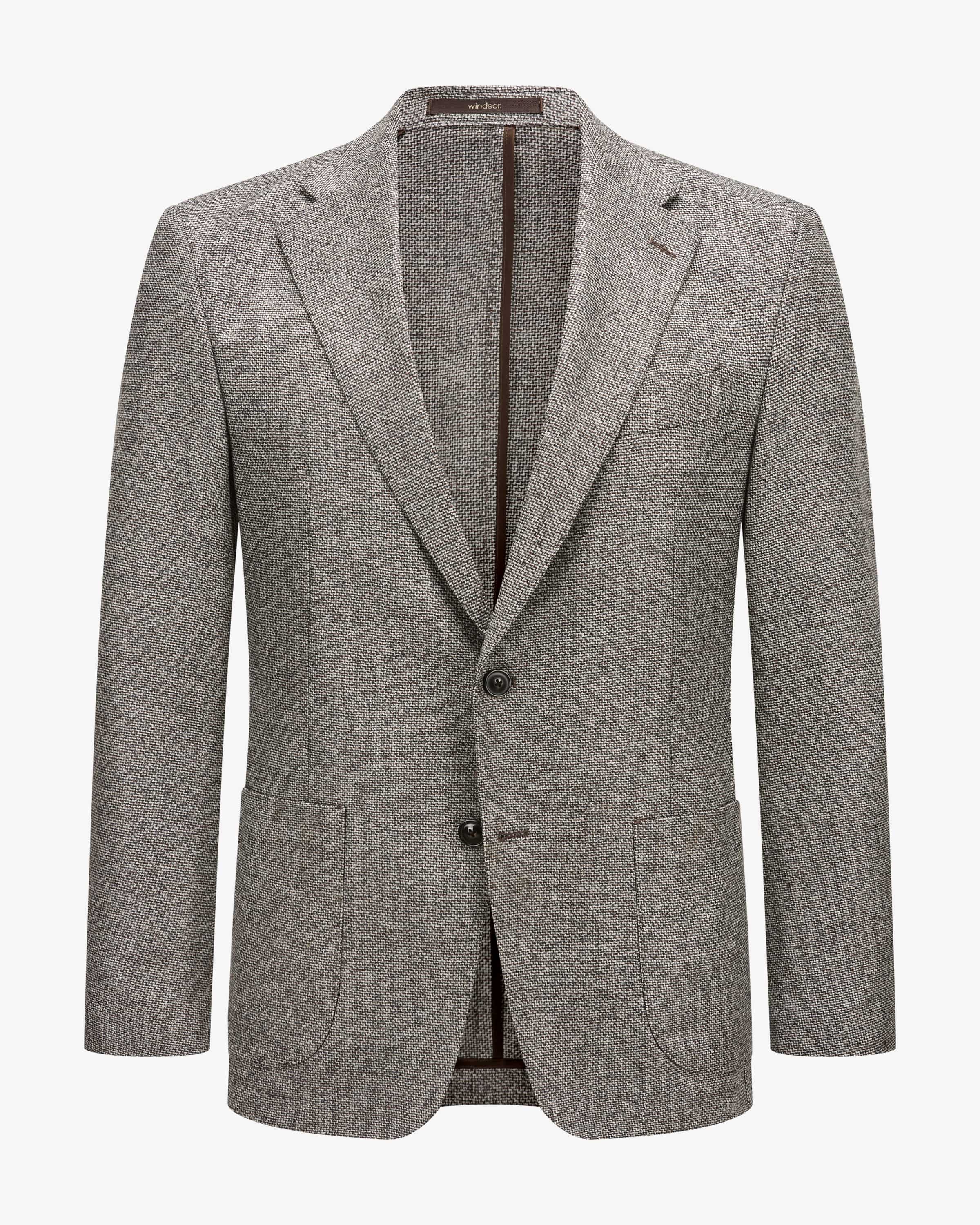 Giorno Sakko für Herren von Windsor in Braun, Weiß und Schwarz. Der ungefütterte Einreiher besticht dank der hochwertigen Schurwoll-Qualität mit einer angenehm- weichen Haptik, welche durch das feine Webmuster gekonnt in Szene gesetzt wird – Ein maskuliner Klassiker mit leichtem Tragegefühl.