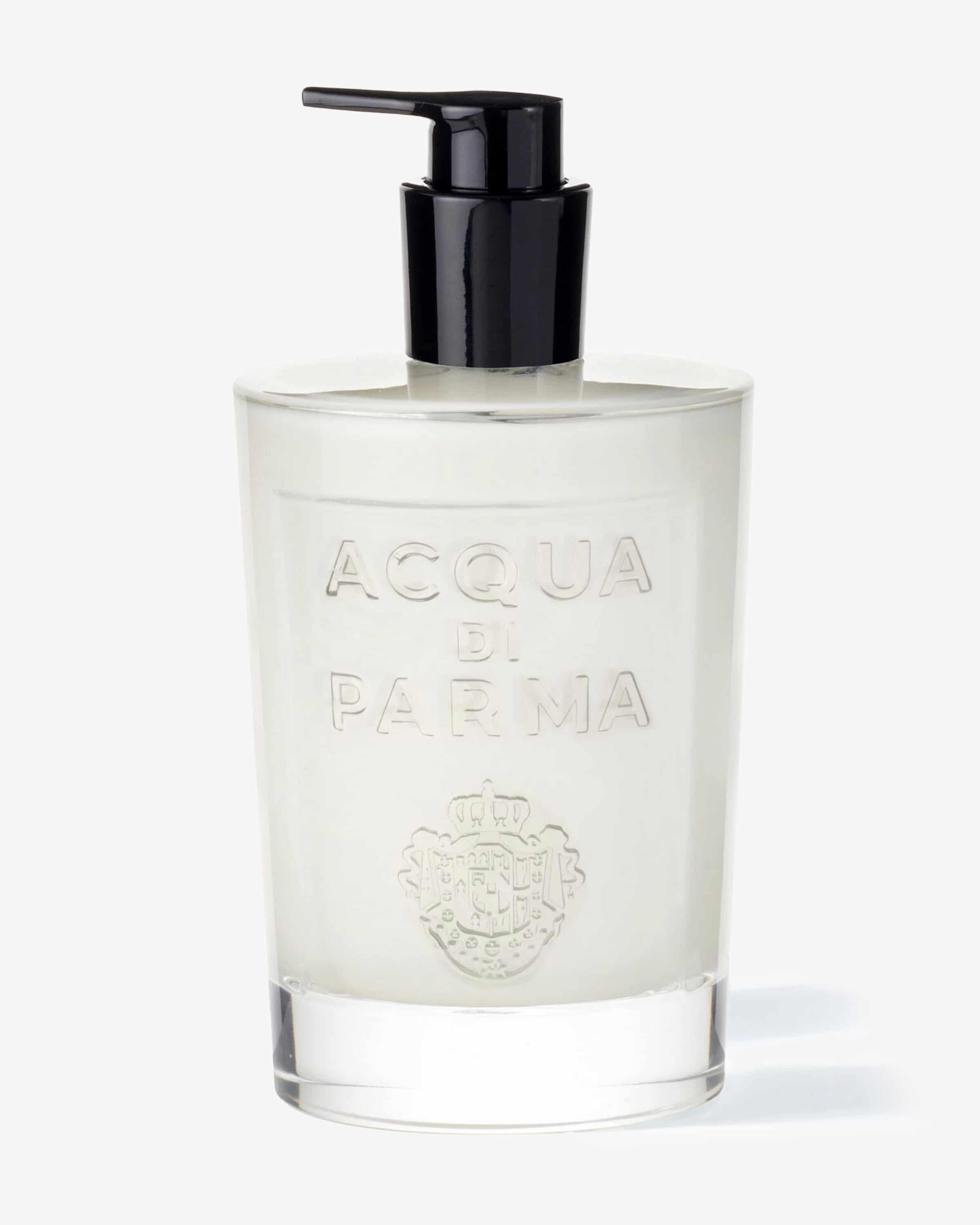 Hand Lotion Colonia 330ml von Acqua di Parma. Die italienische Maison lebt voll und ganz im Moment, um die Düfte für die Ewigkeit einzufangen. Mit den ikonischen Noten von Colonia parfümiert, präsentiert sich die Handlotion in einem kostbaren, von Art Déco inspirierten Glasflakon. Sie spendet Feuchtigkeit und hinterlässt die Hände weich, glatter und zart duftend – ganz ohne öligen Rückstand.