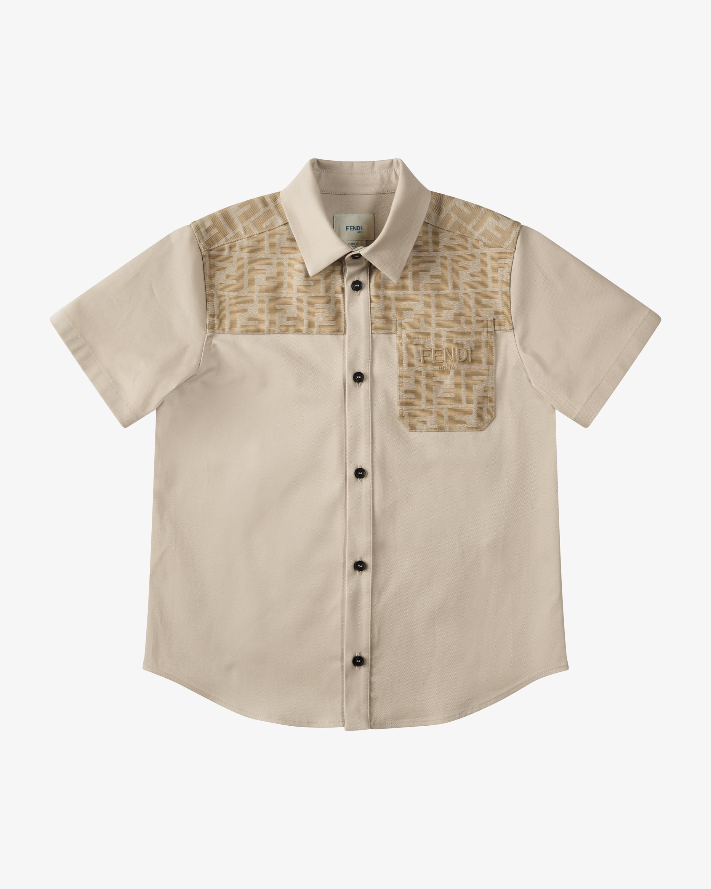 Hemd für Jungen von Fendi Kids in Beige. Luxus für die Kleinsten – italienische Designermode mit Wiedererkennungswert. Das Modell überzeugt mit hochwertiger und fester Baumwoll-Qualität, während die Details in Label geprägten Design einen treuen Begleiter in klassischem Schnitt kreieren.