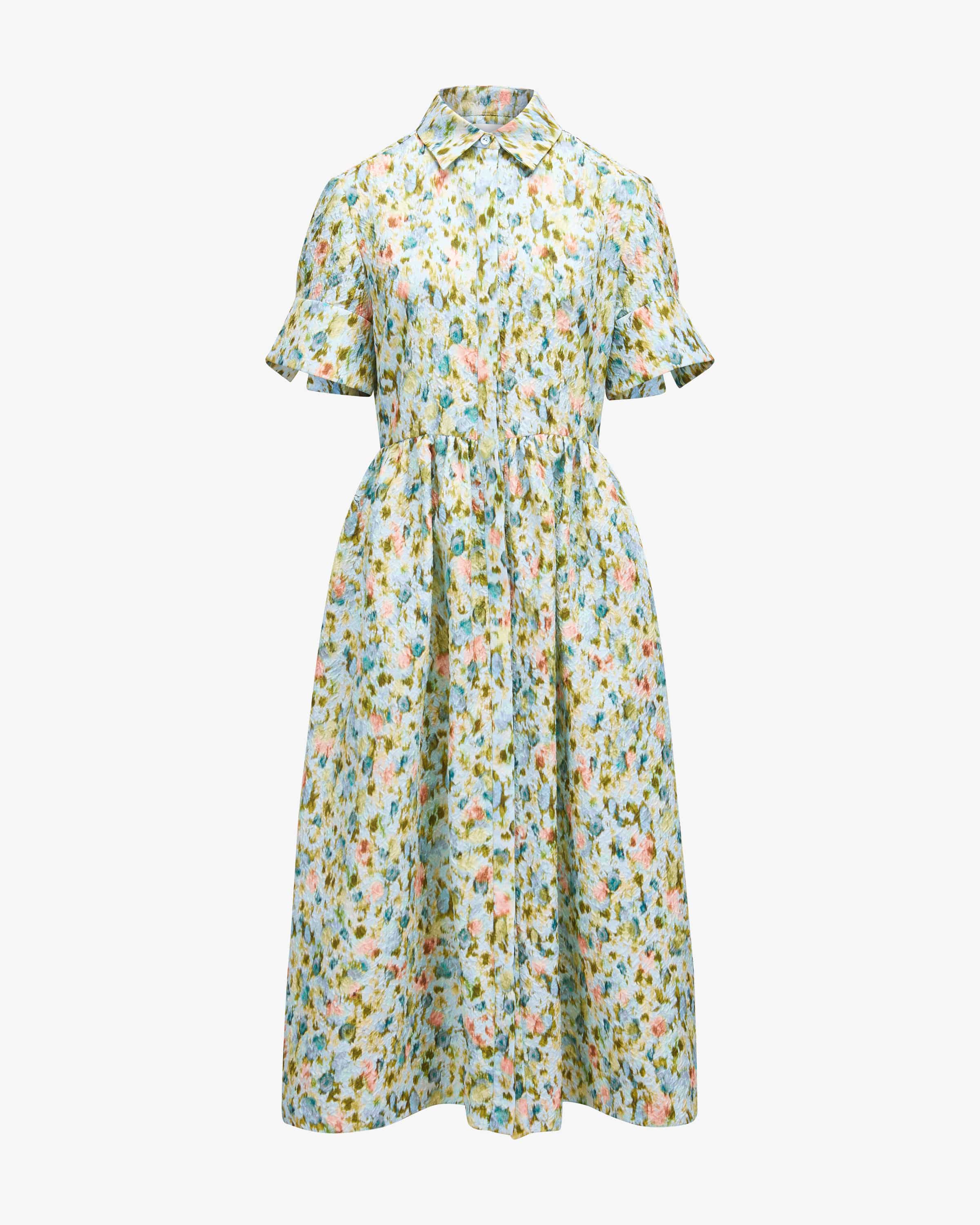 Hemdblusenkleid für Damen von Erdem in Hellblau und Bunt. Das raffinierte Modell begeistert in femininer Passform dank ausgestelltem Rock. Der romantische Allover-Wasserfarben-Print auf dem leichten Material in Crepe-Aufmachung rundet das Gesamtbild harmonisch ab und erschafft einen sommerlichen Highlight-Look.
