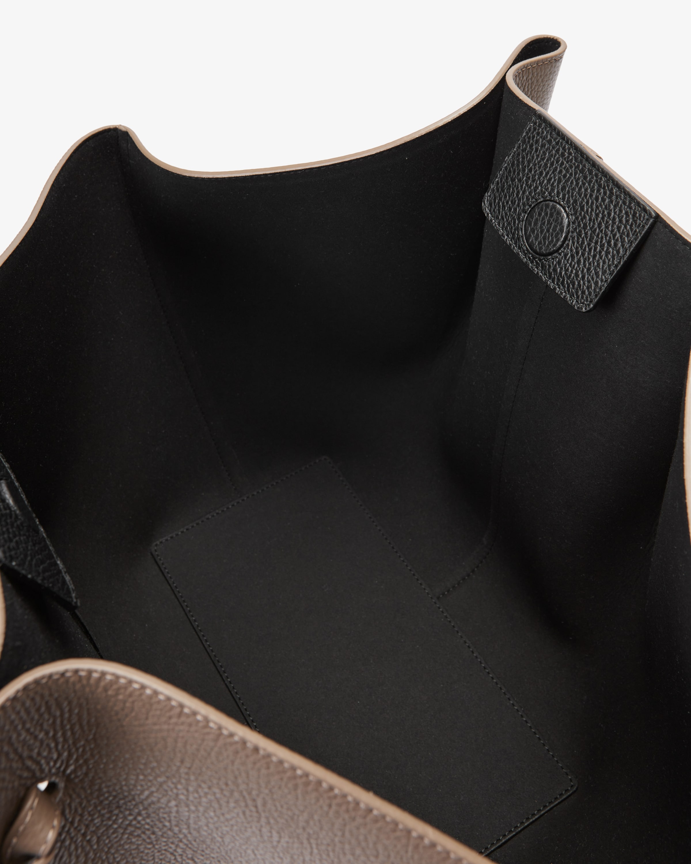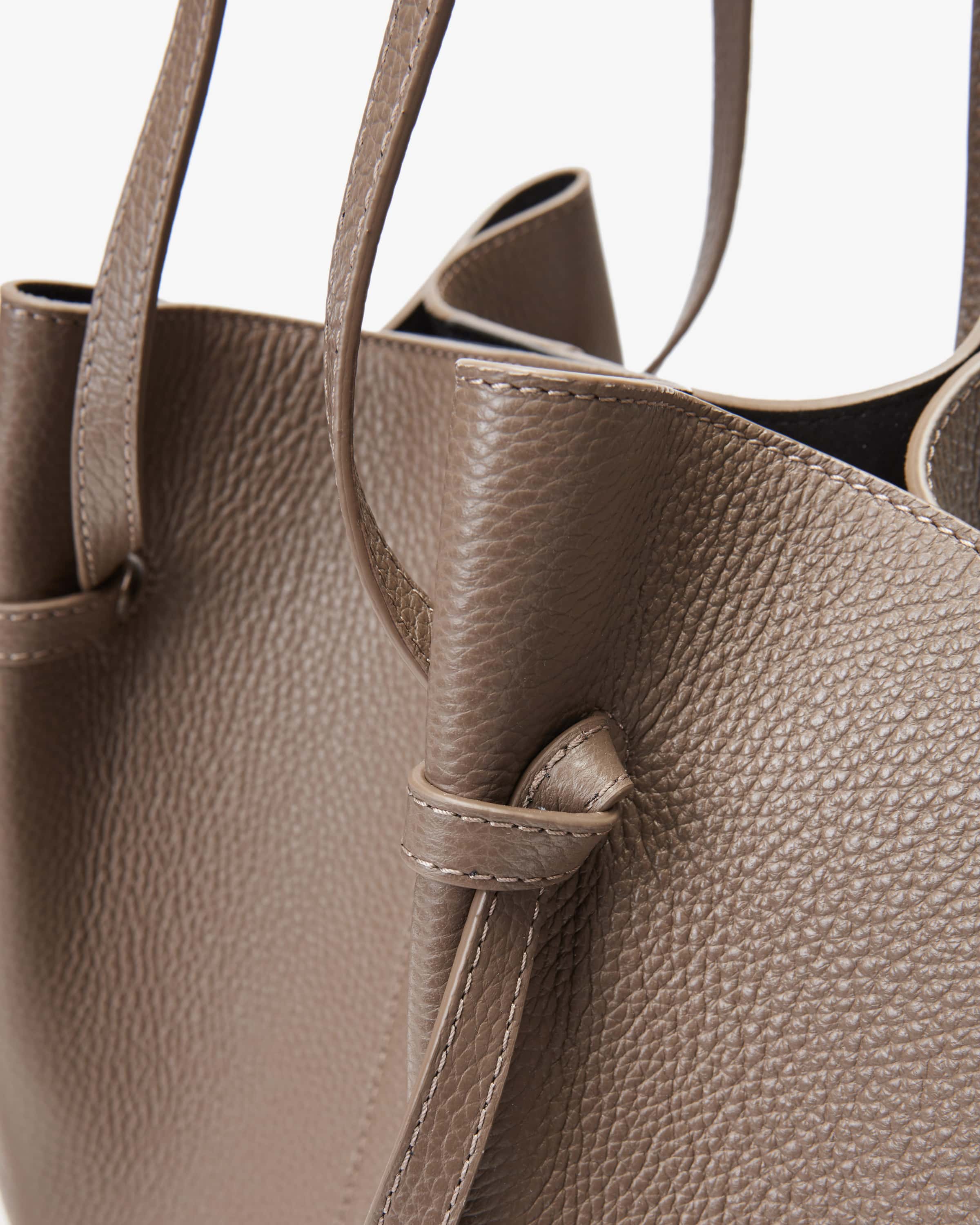 Henkeltasche Large Mochi für Damen von Yuzefi in Taupe. Yuzefi wurde gegründet, um eine Alternative zur übermäßig kommerzialisierten Modewelt zu bieten. Das Ziel der Marke ist es, ein Gefühl von Ehrlichkeit, Kunstfertigkeit und Verbundenheit zurückzubringen. Ihr perfekter Alltags-Begleiter mit dem gewissen Etwas - Das Modell präsentiert sich dank genarbter Leder-Qualität in hochwertiger Aufmachung, während die raffinierte Form mit den geknoteten Henkeln das XL-Design modisch vollendet.