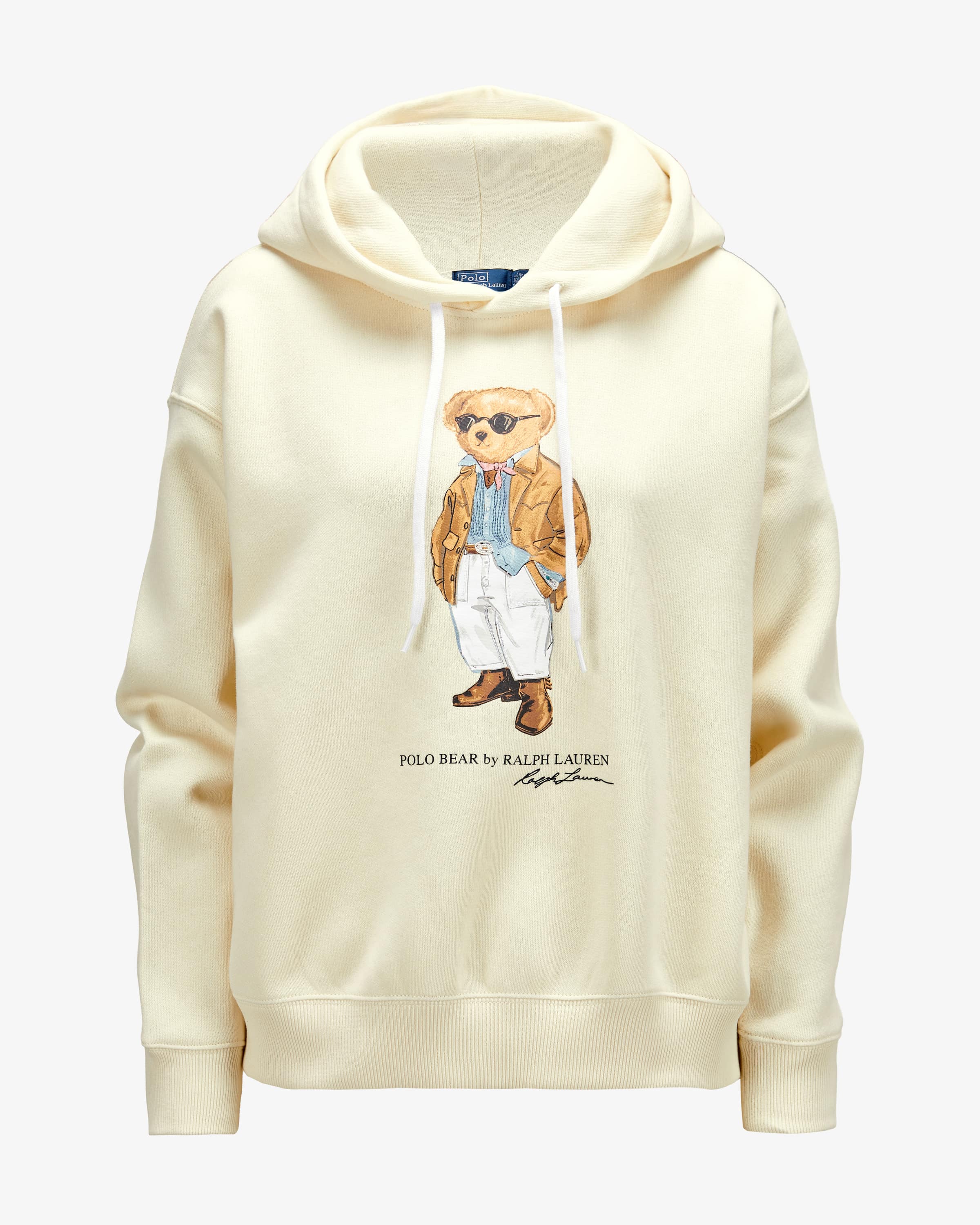 Hoodie für Damen von Polo Ralph Lauren in Ecru. Eine Ikone des amerikanischen Lifestyles – sportlich, preppy, klassisch. Das Modell präsentiert sich dank der weiten Schnittführung mit flauschiger Innenseite als komfortabler Casual- Begleiter, während der originelle Bären-Print mit raffinierten Stickerei-Details das Gesamtbild labeltypisch abrundet.
