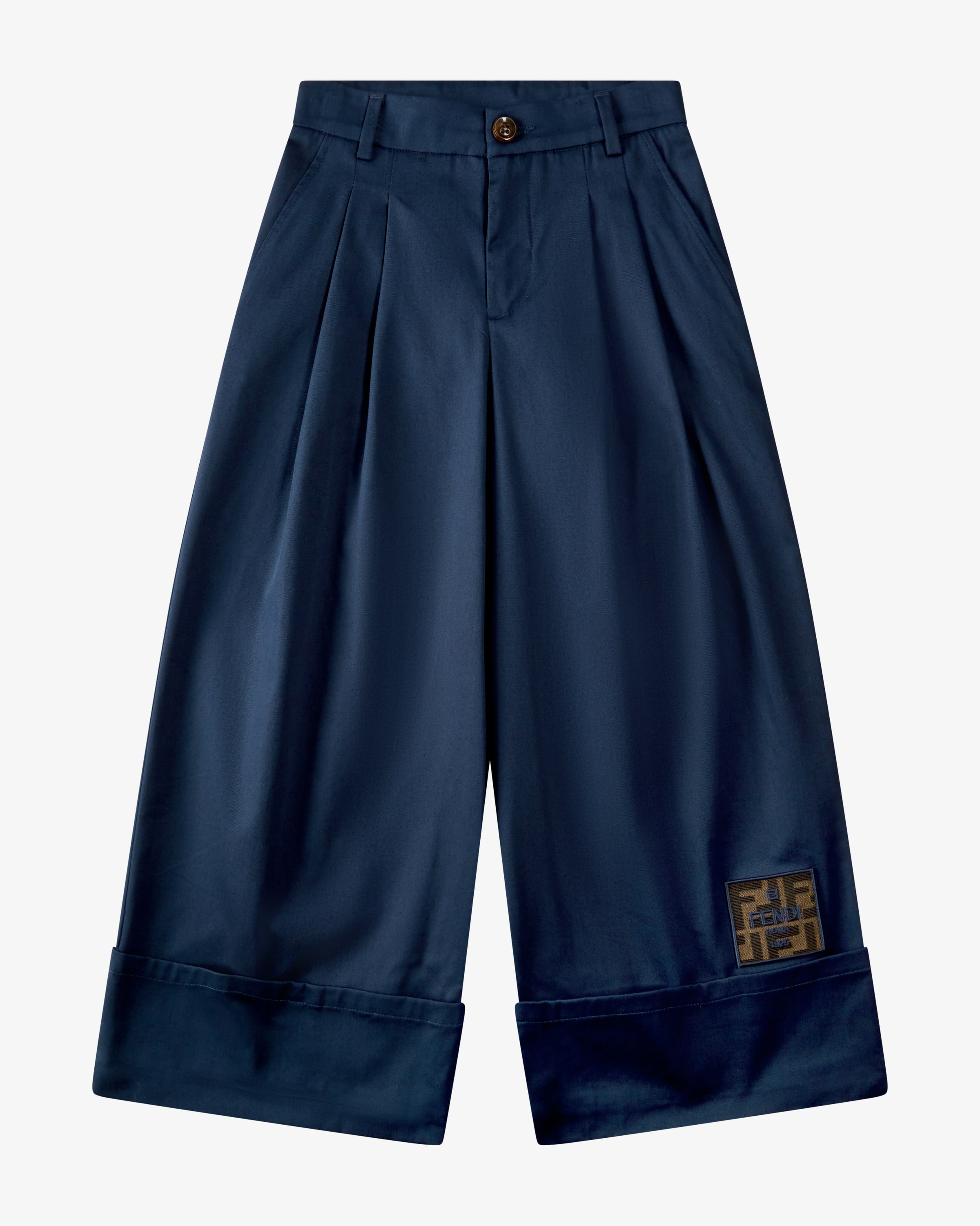 Hose für Mädchen von Fendi Kids in Navy. Das Modell besticht dank der weiten Passform sowie der robusten Gabardine-Qualität als angenehmer Alltagsbegleiter, während die Bundfalten sowie Logo-Applikation einen modischen Look für Ihre Kleine kreieren.