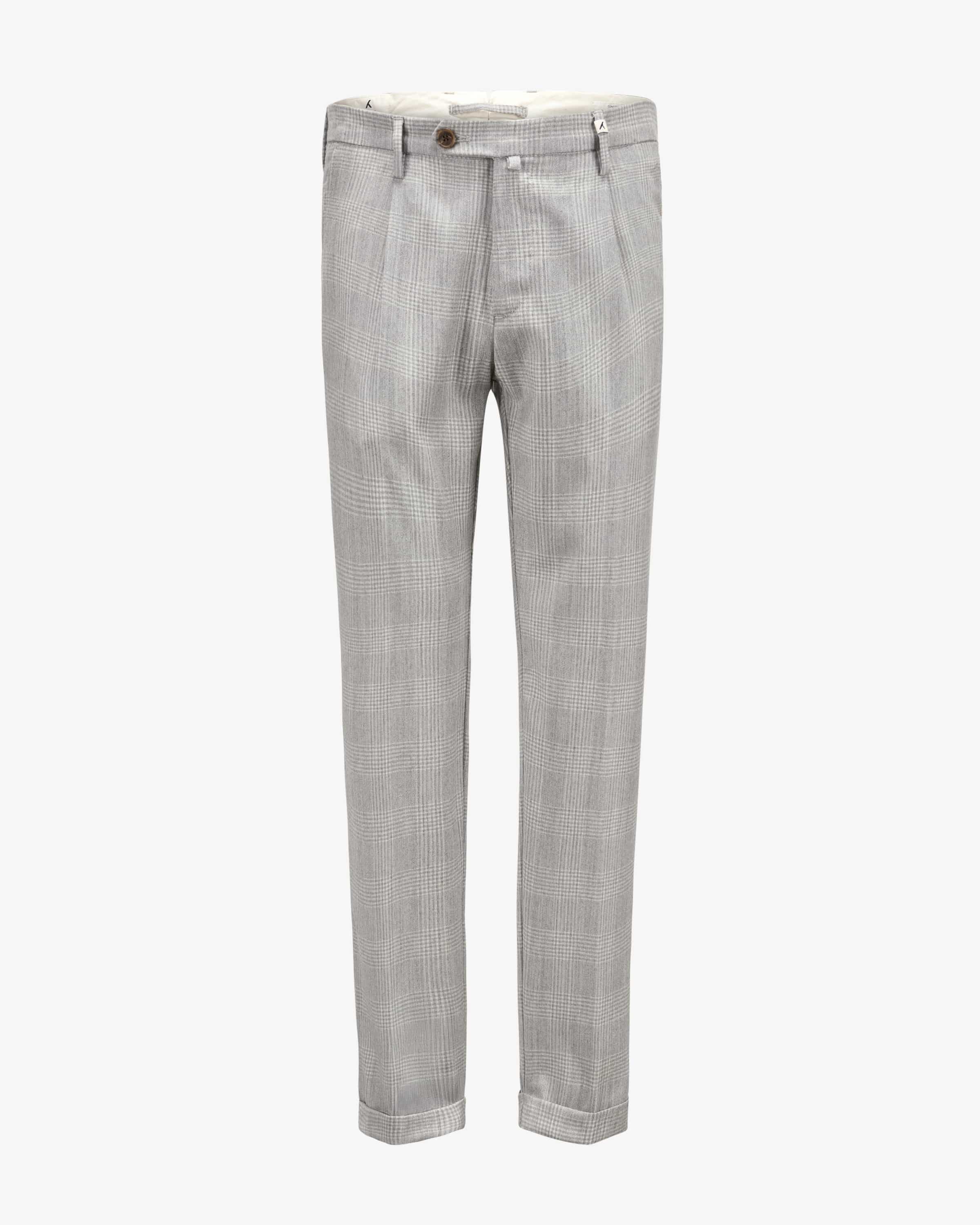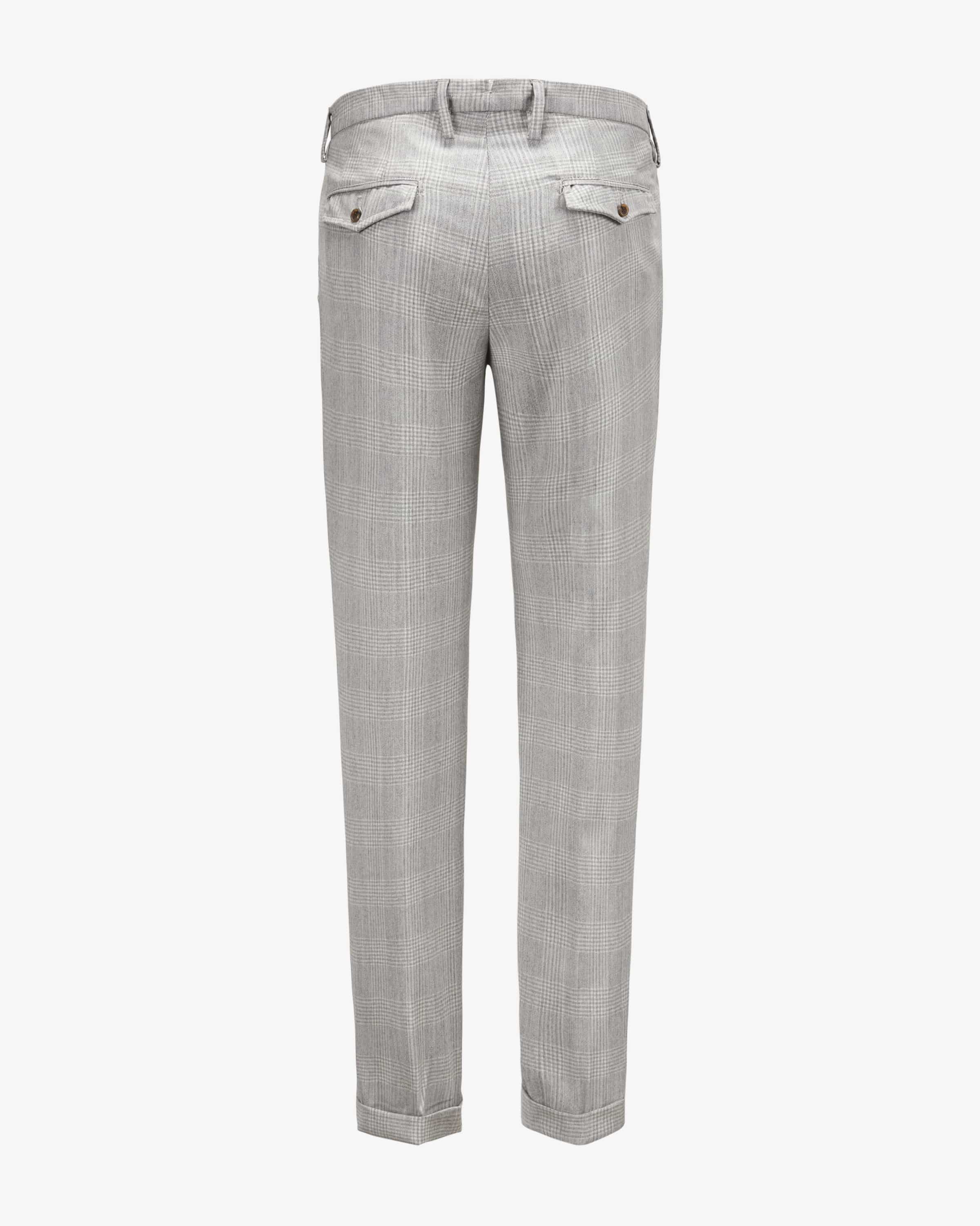 Hose Contemporary Fit für Herren von Myths in Hellgrau. Das karierte Modell zeigt sich dank verkürzter Silhouette mit umgeschlagenen Beinenden sowie Bundfalten als moderner Begleiter für maskuline Casual-Chic-Looks. Zugleich verspricht der hochwertige Schurwoll-Cashmere-Mix in Flanell-Aufmachung angenehme Tragemomente.
