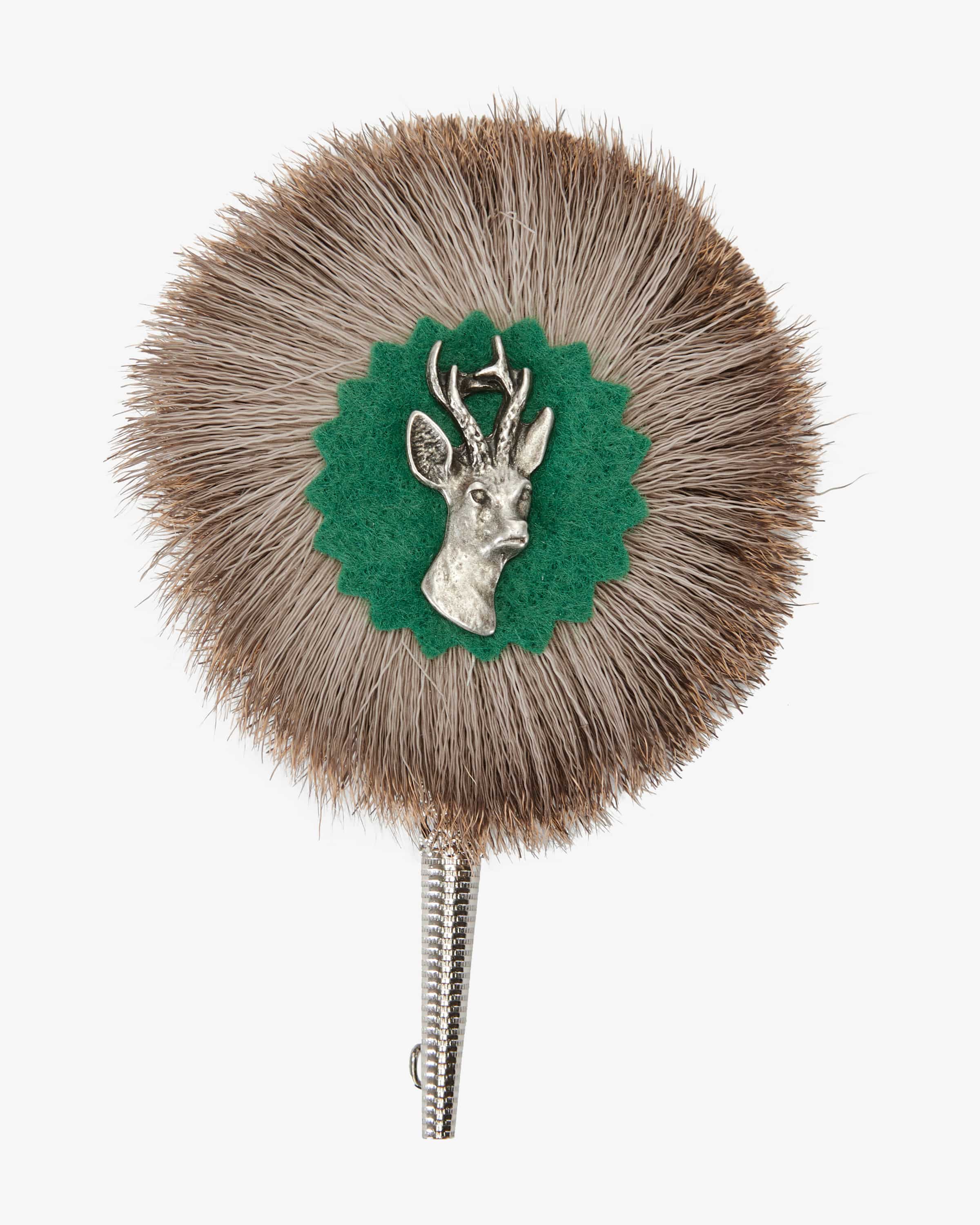 Hutradl Anstecknadel für Herren von Bayern Specials in Natur und Grün. Das edle Design mit majestätischer Rehbockkopf-Applikation verleiht Ihrem Trachtenhut eine besondere Note und vollendet Ihr traditionelles Outfit stilvoll.