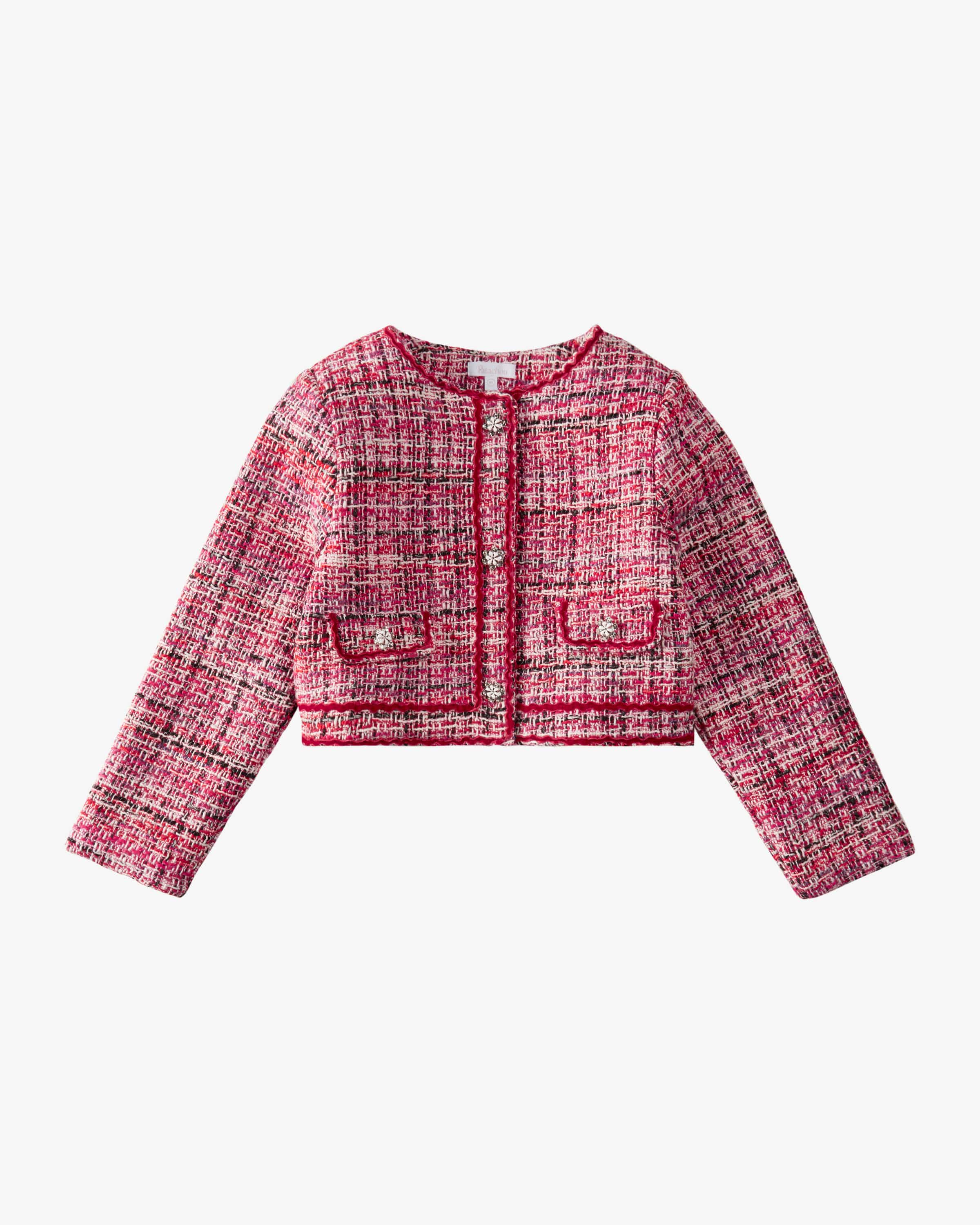 Jacke für Mädchen von Patachou in Rot, Pink und Weiß. Das Modell präsentiert