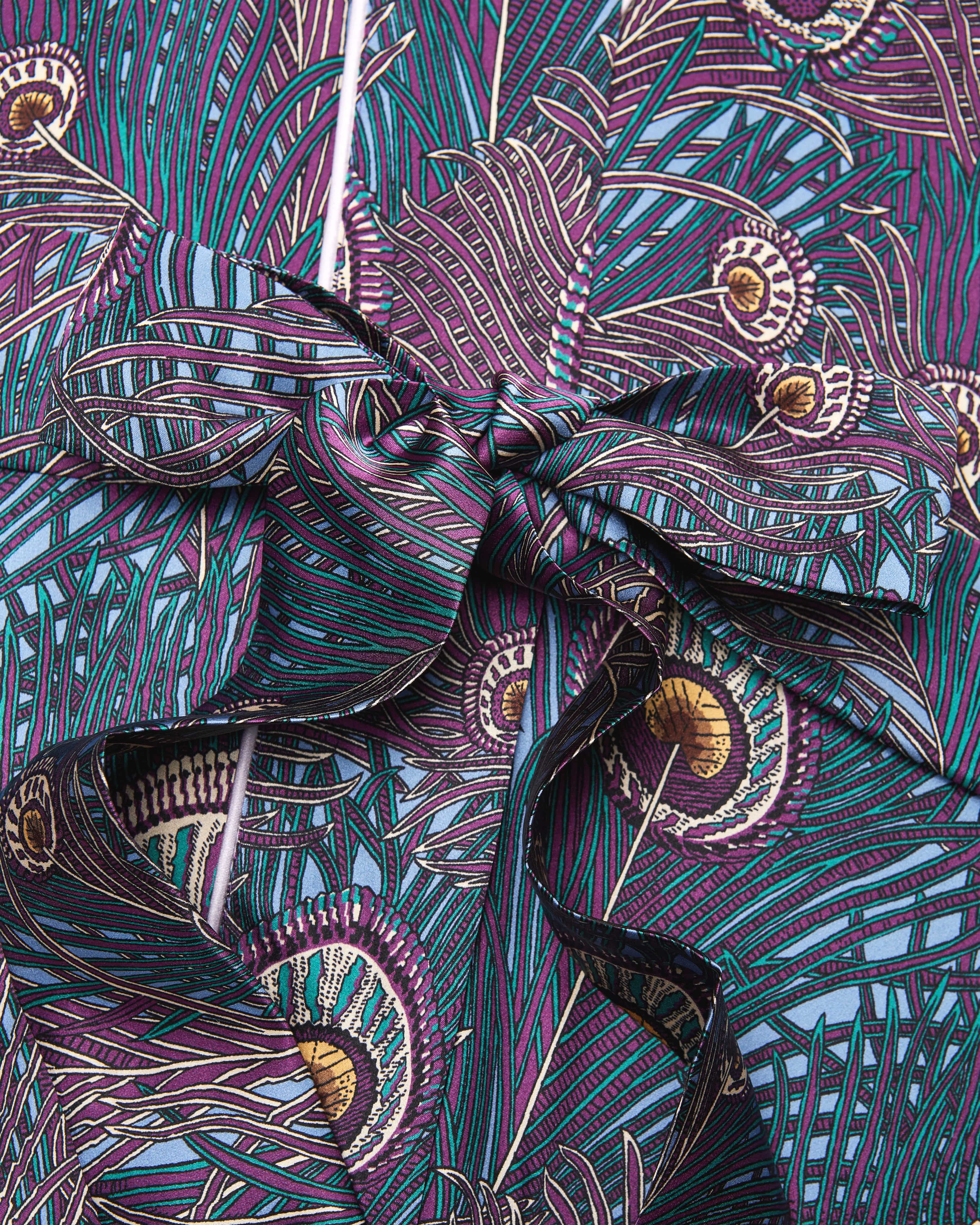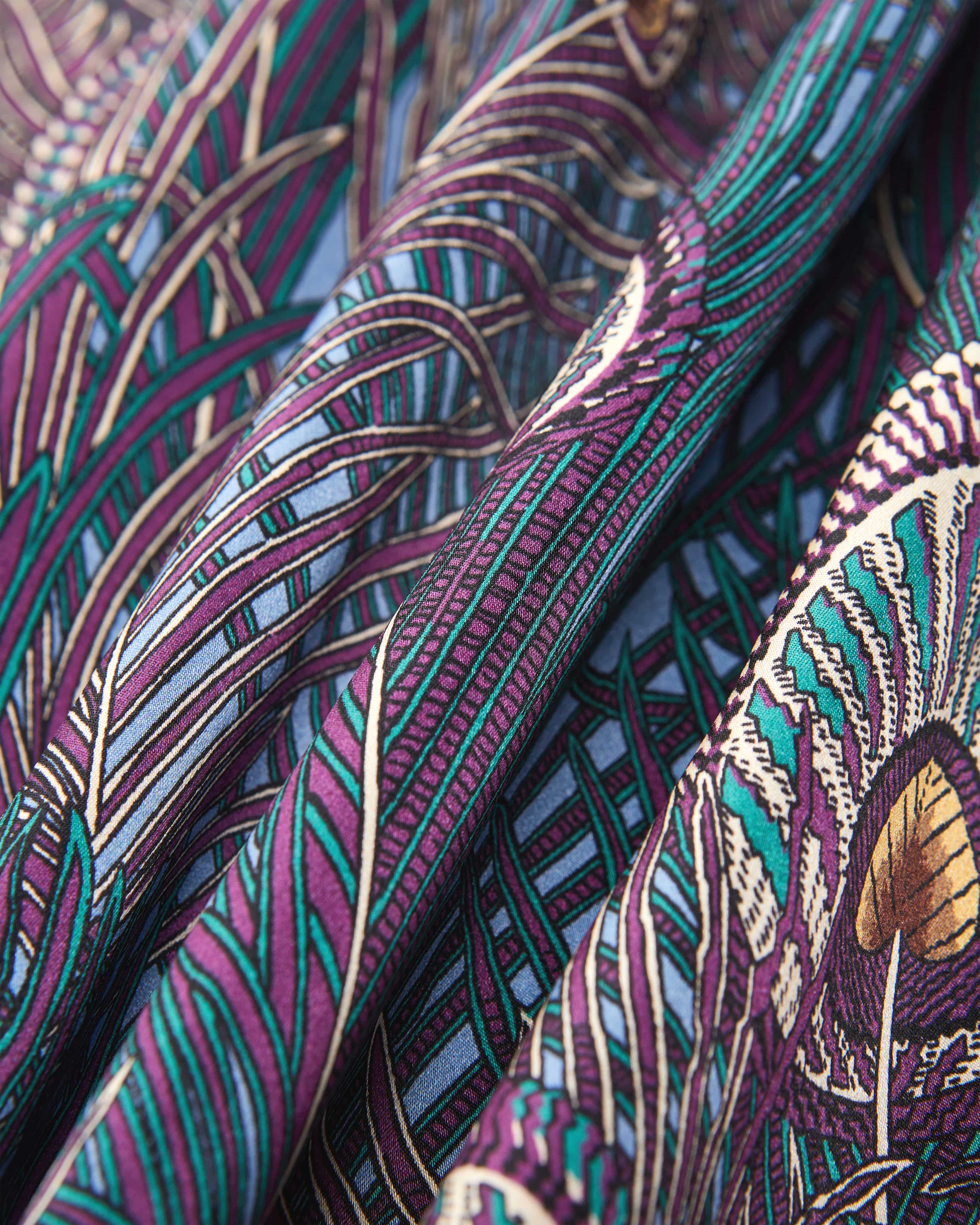 Modell mit feinem Pfauenfedern-Print überzeugt durch seine