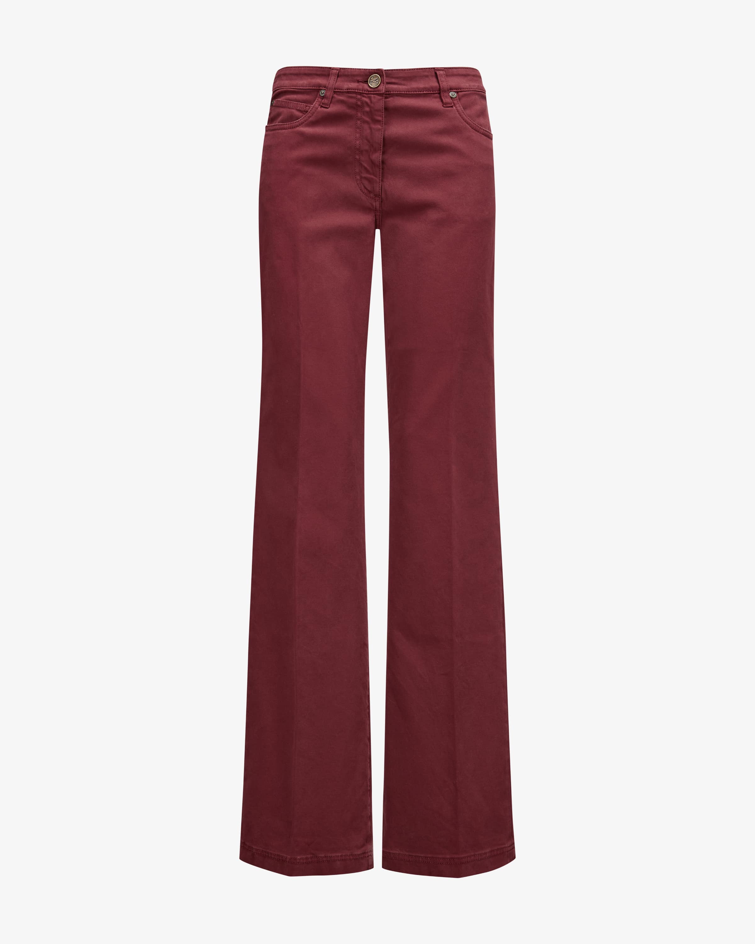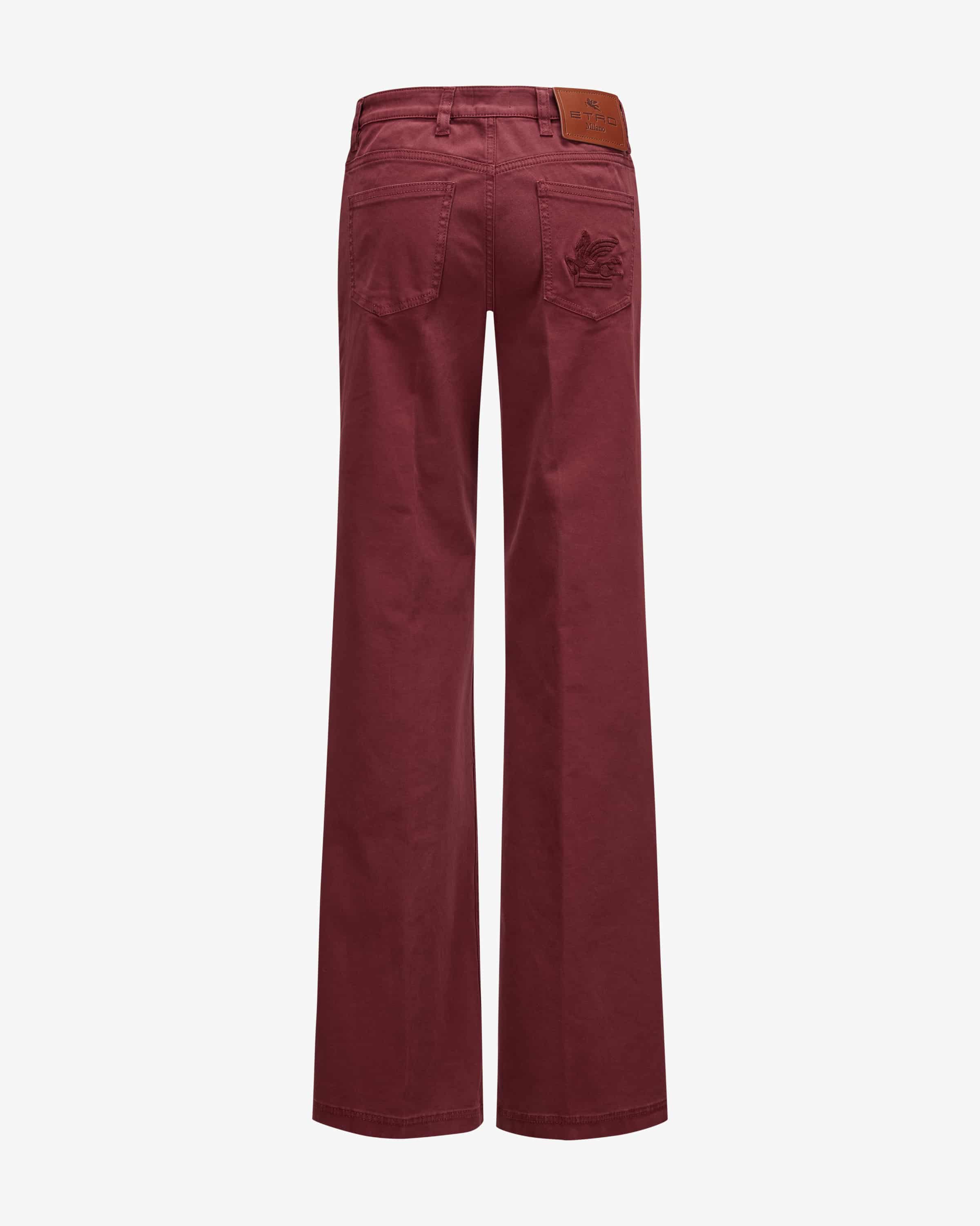 Jeans für Damen von Etro in Bordeaux. Dank des extralangen Schnitts mit weitem, leicht ausgestelltem Bein präsentiert sich das Modell als modischer Favorit, während die softe und leichte Baumwoll-Qualität für angenehme Tragemomente sorgt. Die tonale Logo-Stickerei sowie das Leder-Badge runden den Look charakteristisch ab.