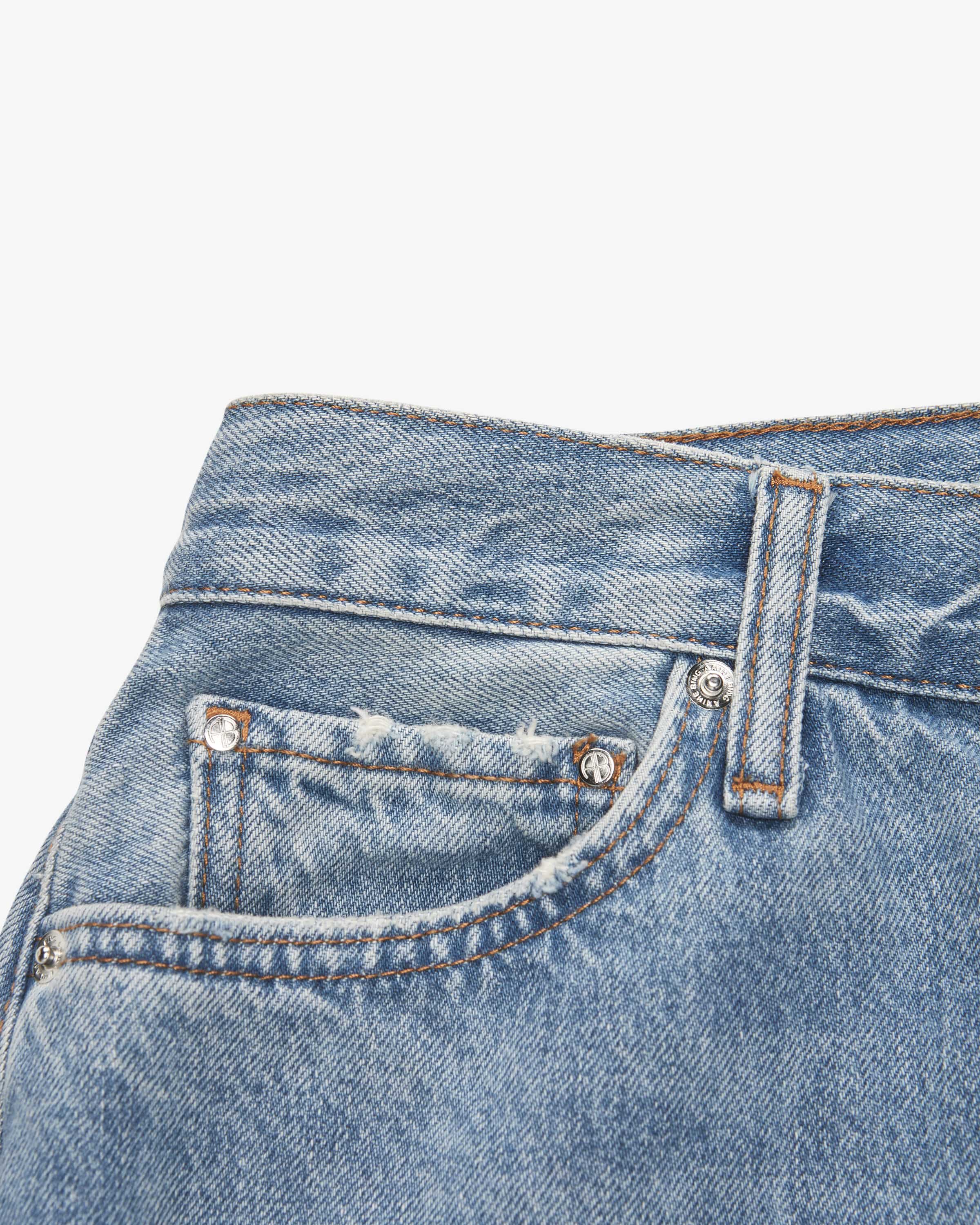 Jeans Fritz High Rise Barrel Fit für Damen von Anine Bing in Hellblau. 2012 in Los Angeles gegründet, vereint das Label skandinavischen Minimalismus mit amerikanischer Coolness. Auch dieses Modell in hochwertiger Baumwoll-Qualität überzeugt mit dezenter Waschung und Destroyed-Details, während die moderne Passform einen besonderen Denim-Begleiter kreieren.