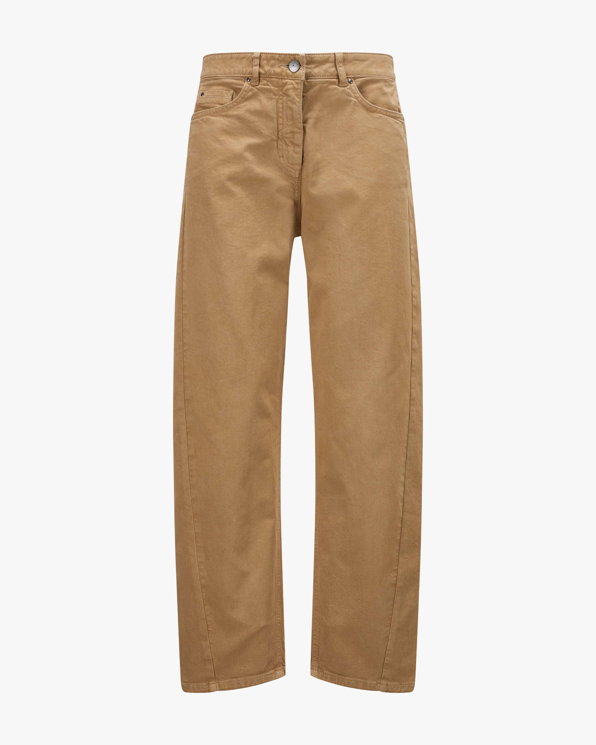 Jeans Loose Fit für Damen von Luisa Cerano in Karamell. Das deutsche Modelabel Luisa Cerano begeistert mit luxuriöser, femininer Damenmode, die durch hochwertige Materialien, lässige Schnitte, vielfältige Farben und subtile Eleganz überzeugt. Das 5-Pocket-Modell besticht dank der weiten Barrel-Leg- Silhouette in modischer Aufmachung, welche durch die robuste, leicht elastische Baumwoll-Qualität charakteristisch abgerundet wird.