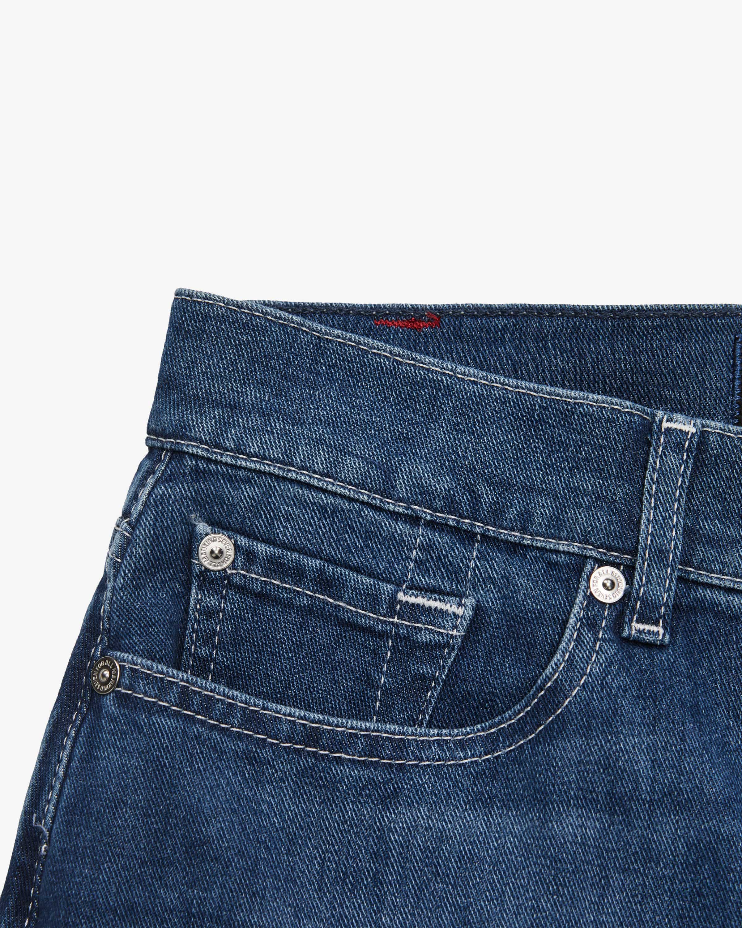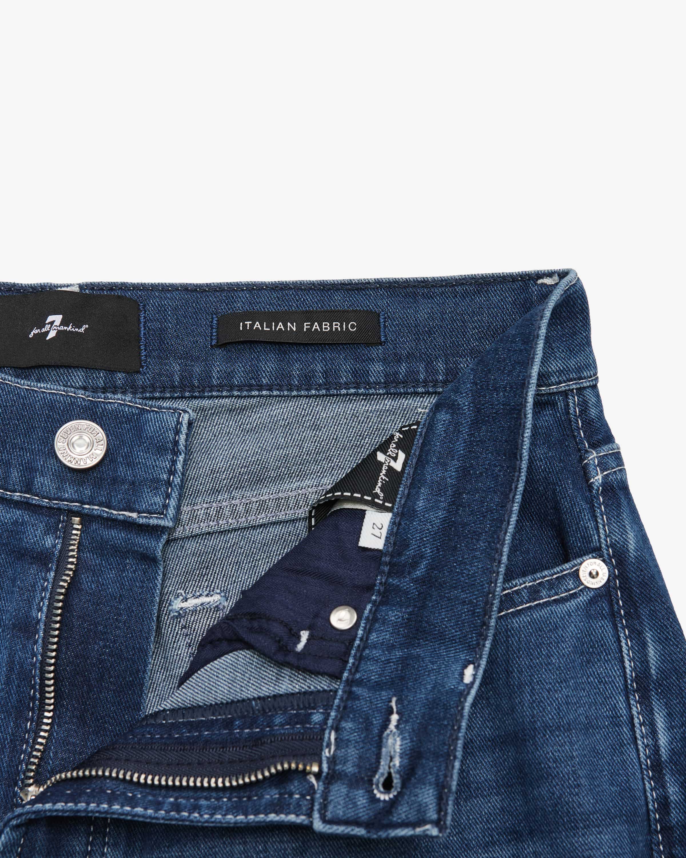 Jeans Lotta Ankle für Damen von 7 For All Mankind in Dunkelblau. Das kalifornische Label gehört zu den Denim-Pionieren im Premiumsegment – bekannt für innovative Waschungen und perfekte Fits. Auch dieses Modell besticht dank der elastischen Baumwoll-Qualität mit einem angenehmen Tragegefühl, während die weite Silhouette und der dezente Washed Look ein modisches Gesamtbild kreieren.