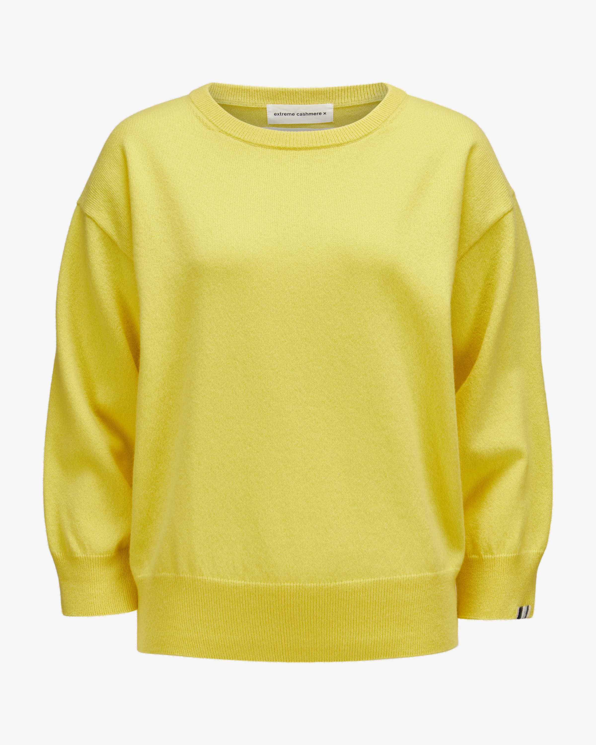 Jewel Cashmere-Pullover für Damen von Extreme Cashmere in Gelb. Das Modell präsentiert sich in zeitloser Silhouette mit ¾-Arm, während die hochwertige Cashmere-Qualität für angenehme Tragemomente sorgt und den Look harmonisch vollendet.